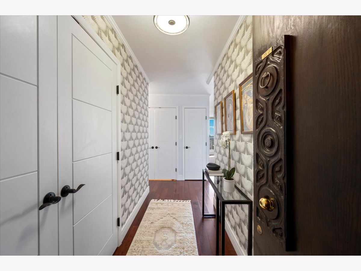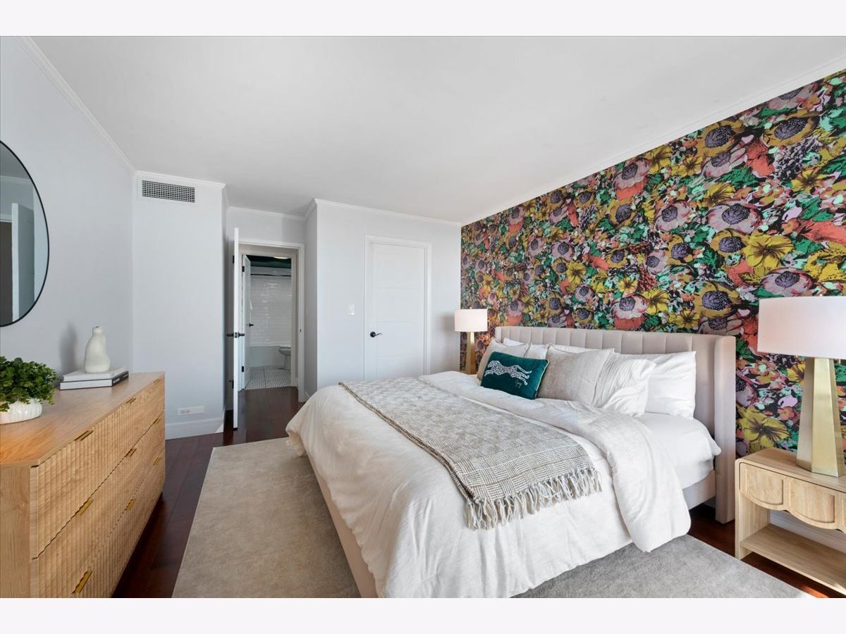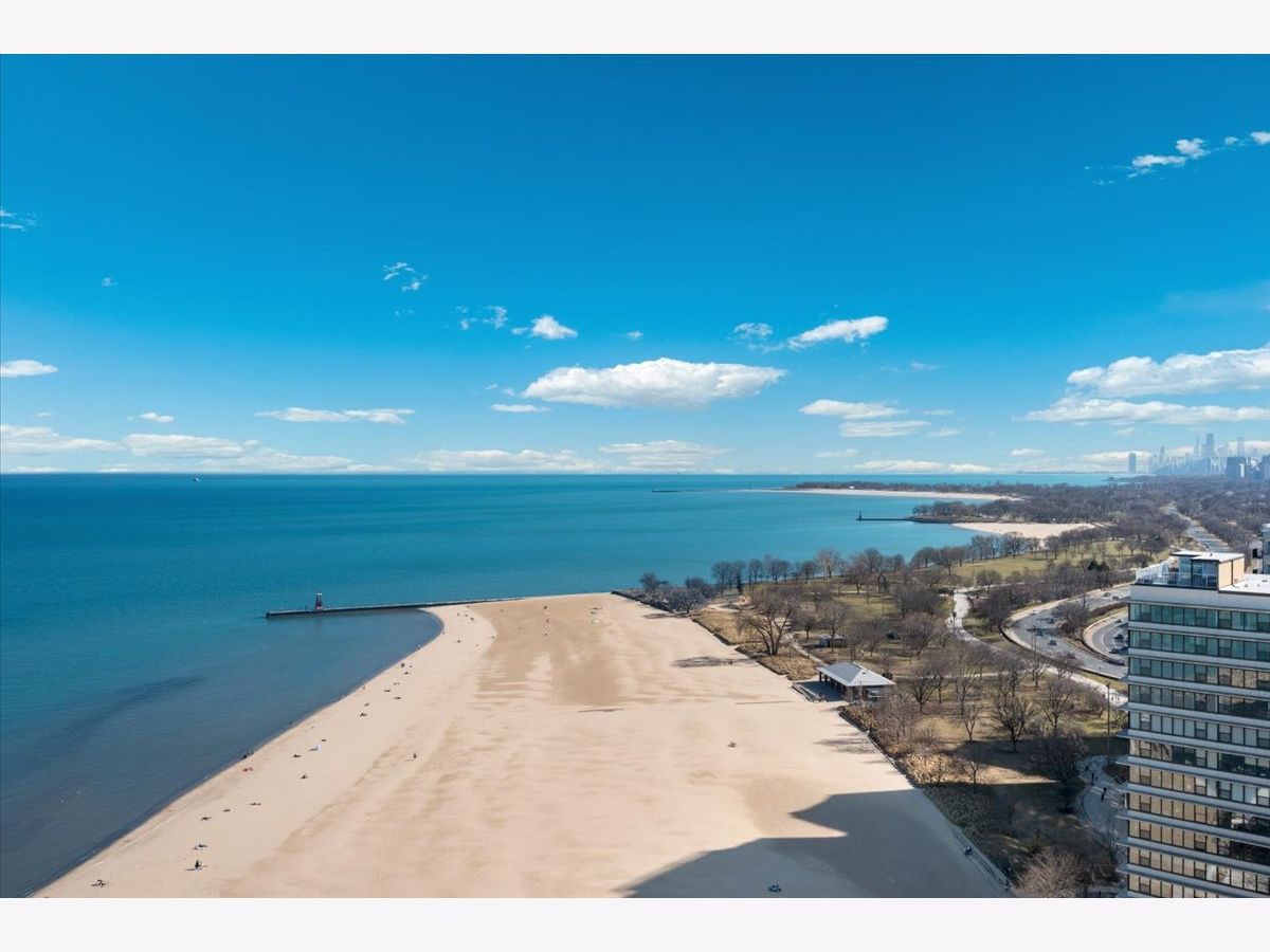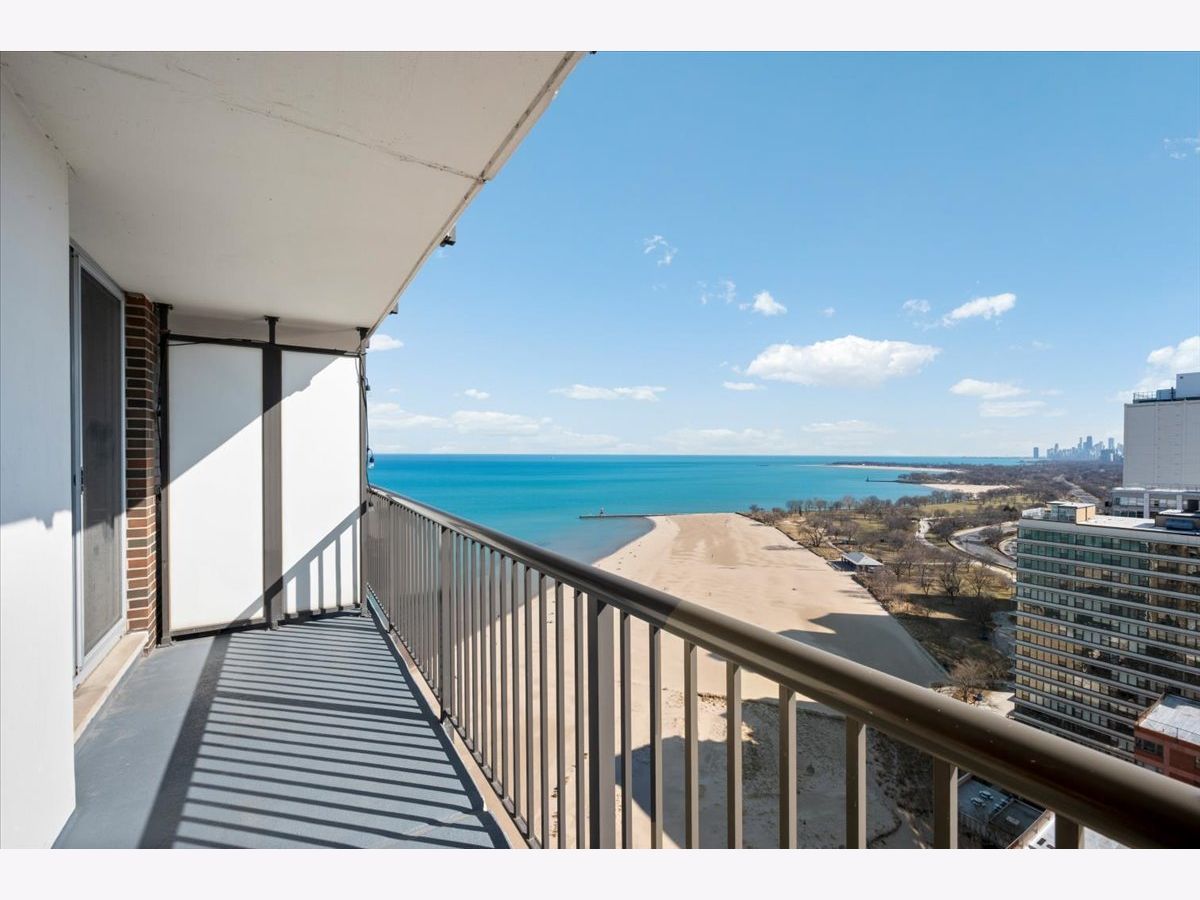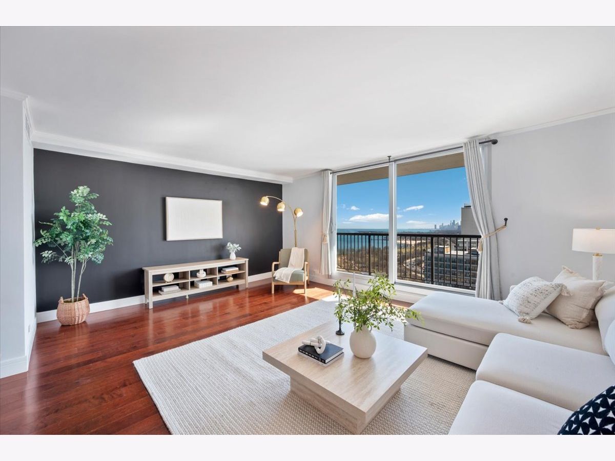 Panoramic lake and skyline views define this sought-after south-facing G tier residence on the 25th floor at 5855 N Sheridan, overlooking Hollywood Beach. A remarkable 30-foot private balcony spans the entire width of the home, delivering sweeping views of Lake Michigan, Lake Shore Drive, and the Chicago skyline - from glowing sunrises over the water to sparkling city lights at night. Inside, the home is freshly painted and thoughtfully curated with custom designer wallpaper, upgraded lighting, matte black fixtures, and a bold accent wall. Hardwood floors run throughout the living spaces.The updated kitchen features quartz countertops, elegant tile work, stainless steel appliances, and generous cabinetry. The refreshed bathroom offers heated floors, new tile shower, updated lighting, and custom storage. A spacious walk-in closet plus additional floor-to-ceiling storage (Space #98) provide exceptional storage for a one-bedroom. Solid core doors and quality finishes reflect meticulous care throughout. Full-amenity living includes 24-hour door staff, outdoor pool, fitness center, two expansive sundecks overlooking the lake, party room,receiving room, and on-site laundry. Monthly assessments of $878.25 include internet, basic cable, self-parking and use of all building amenities. One assigned garage parking space (#69) is included. Just steps to the lakefront trail, beaches, the Thorndale Red Line, Whole Foods, Loyola University, and neighborhood dining. Elevated lakefront living in one of Chicago's most desirable buildings.