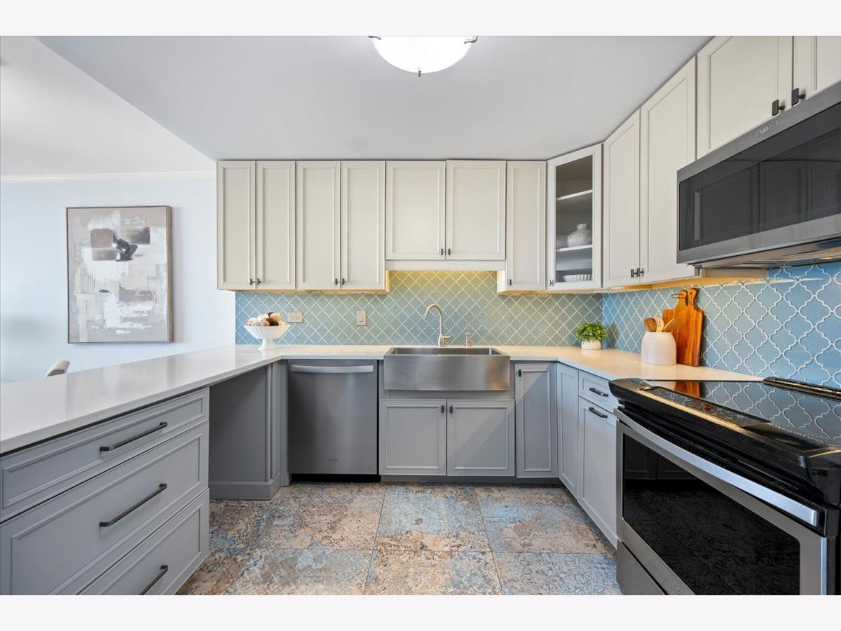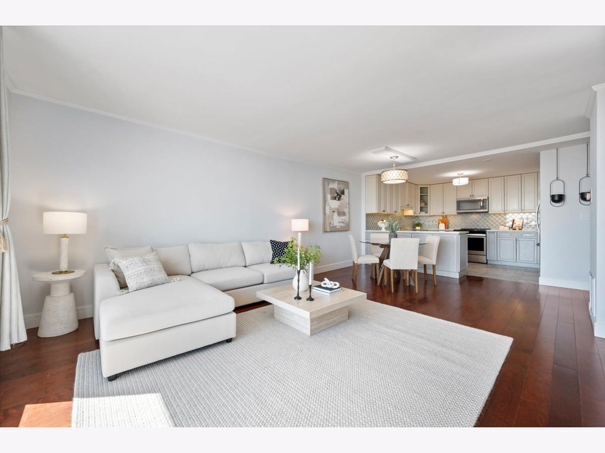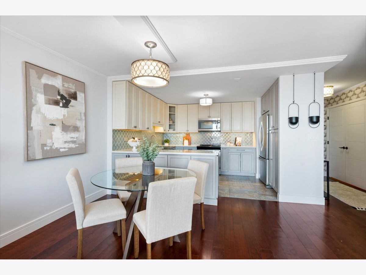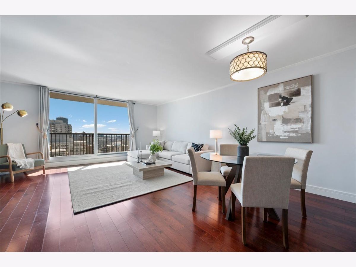 Panoramic lake and skyline views define this sought-after south-facing G tier residence on the 25th floor at 5855 N Sheridan, overlooking Hollywood Beach. A remarkable 30-foot private balcony spans the entire width of the home, delivering sweeping views of Lake Michigan, Lake Shore Drive, and the Chicago skyline - from glowing sunrises over the water to sparkling city lights at night. Inside, the home is freshly painted and thoughtfully curated with custom designer wallpaper, upgraded lighting, matte black fixtures, and a bold accent wall. Hardwood floors run throughout the living spaces.The updated kitchen features quartz countertops, elegant tile work, stainless steel appliances, and generous cabinetry. The refreshed bathroom offers heated floors, new tile shower, updated lighting, and custom storage. A spacious walk-in closet plus additional floor-to-ceiling storage (Space #98) provide exceptional storage for a one-bedroom. Solid core doors and quality finishes reflect meticulous care throughout. Full-amenity living includes 24-hour door staff, outdoor pool, fitness center, two expansive sundecks overlooking the lake, party room,receiving room, and on-site laundry. Monthly assessments of $878.25 include internet, basic cable, self-parking and use of all building amenities. One assigned garage parking space (#69) is included. Just steps to the lakefront trail, beaches, the Thorndale Red Line, Whole Foods, Loyola University, and neighborhood dining. Elevated lakefront living in one of Chicago's most desirable buildings.