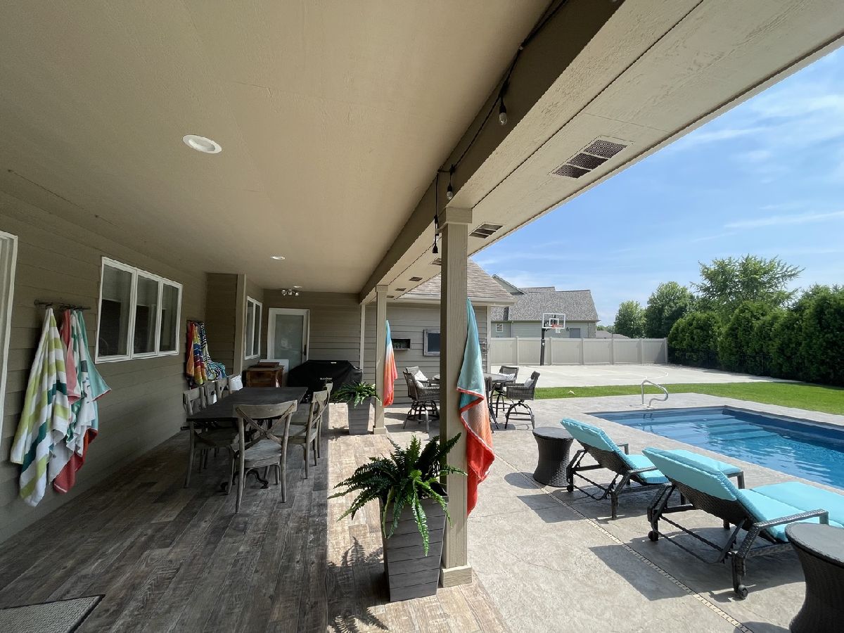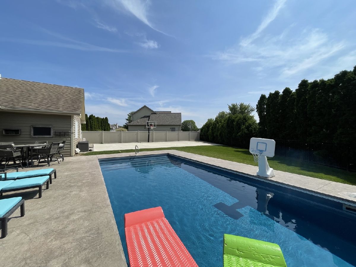 Welcome to your dream home! This spacious 2,800 square-foot ranch features three inviting bedrooms and three bathrooms, all complemented by a generous three-car garage with ample storage. Perfect for hosting any event, the exquisite kitchen is a highlight, showcasing a breakfast bar, stunning granite countertops, custom cabinetry, a wine rack, a built-in icemaker, and sleek stainless steel appliances. The open floor plan flows effortlessly into the living room, where a cozy stone fireplace awaits, making it an ideal space for gatherings. Retreat to the master suite, which boasts two walk-in closets and a beautifully updated bathroom that promises relaxation and comfort. Step outside to discover your own private oasis in the backyard, complete with a sparkling swimming pool, a basketball court, and a covered porch for entertaining or unwinding in style. With vaulted ceilings and new flooring throughout, this home exudes warmth and modern elegance. Additional features include a tankless water heater, a fenced-in backyard, and a convenient sprinkler system. Don't miss the chance to make this stunning property yours! Agent Owned