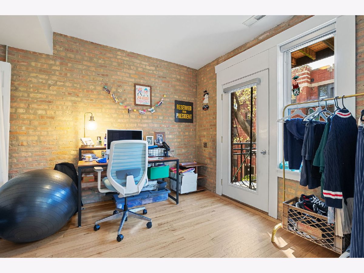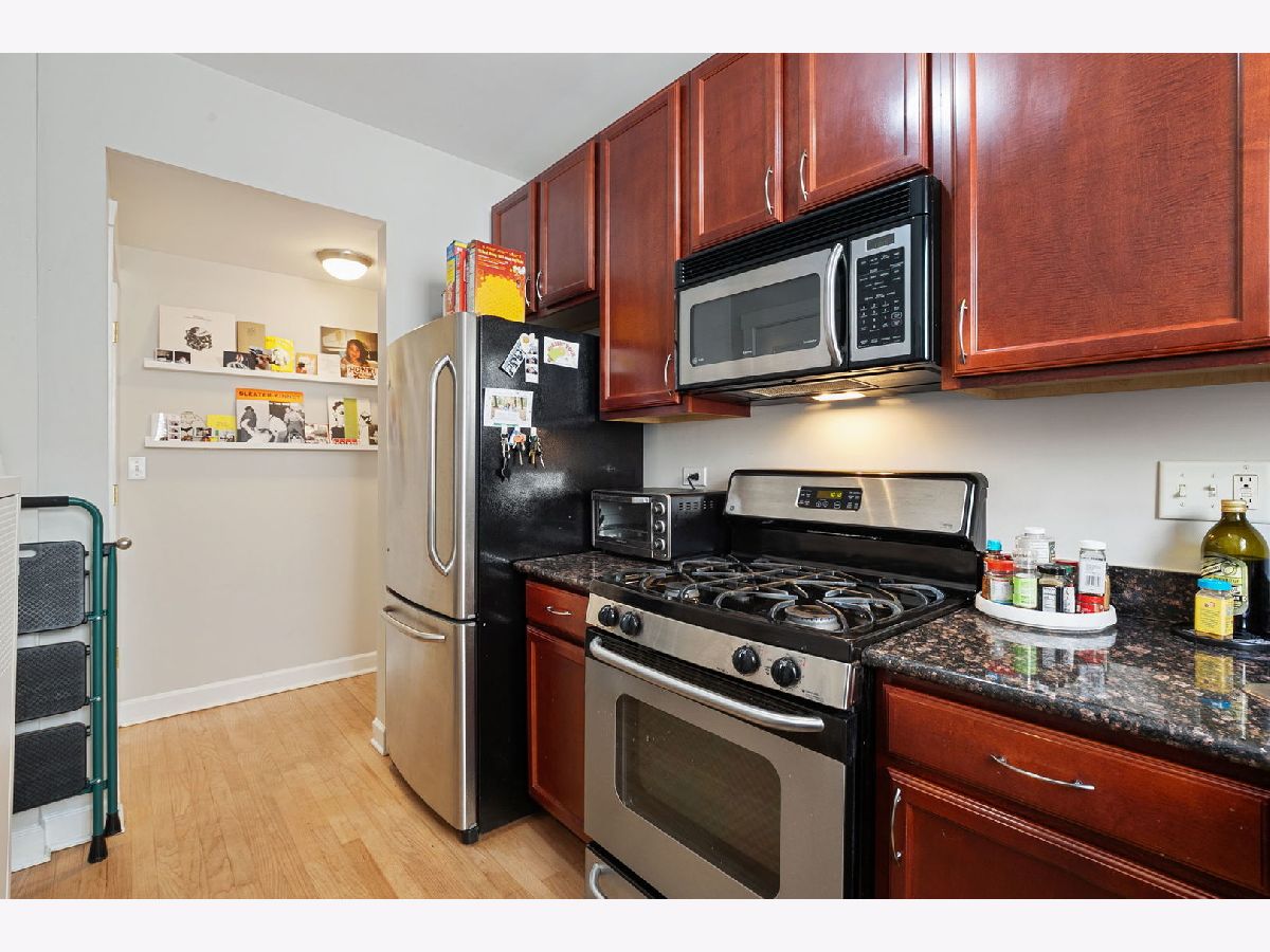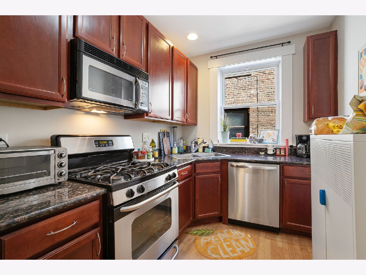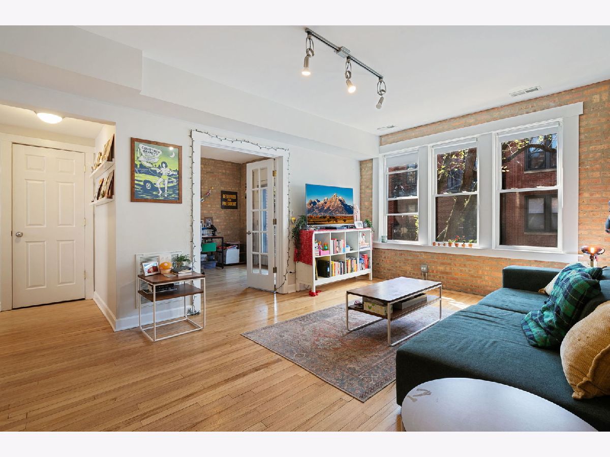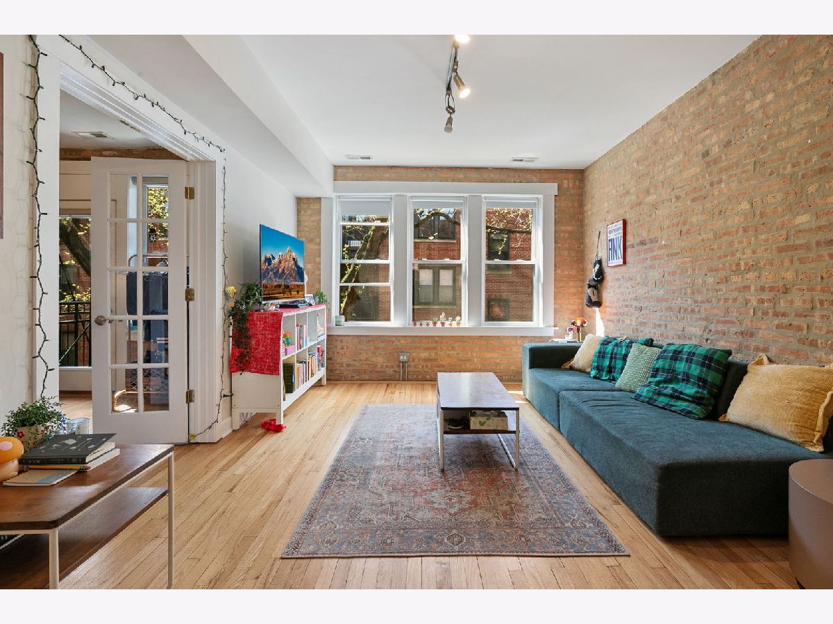Bright and sunny 2-bedroom condo in a charming courtyard building, situated on a beautiful tree-lined street in the highly desirable Edgewater/Andersonville area. This inviting unit features kitchen with cherry cabinets, granite countertops, and stainless steel appliances, flowing seamlessly into a spacious living room with exposed brick and access to a private balcony. The second bedroom offers versatile use with elegant French doors that open to the living space-perfect for a home office, guest room, or den. Additional highlights include hardwood floors throughout, in-unit laundry, central air conditioning, and extra storage. Enjoy an unbeatable location close to parks, shops, restaurants, grocery stores, and the lakefront. Convenient access to public transportation, including Metra, CTA, and Lake Shore Drive. Easy street parking available. Not to miss!