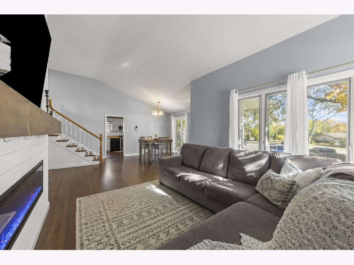 Bright and beautifully updated, this solid home with a mid-century modern vibe offers nearly 2,400 sq. ft. of total living space on a quiet semi-cul-de-sac near both Hillcrest Elementary and O'Neill Middle School. The main level features vaulted ceilings, expansive windows, and open sightlines that fill the home with natural light. In 2024, the home received a new roof, updated plumbing and electrical systems, and new hardwood flooring throughout. Custom accent walls, upgraded moldings, and fresh paint add warmth and character to every room. The living room showcases a stunning shiplap feature wall with a modern electric fireplace and custom wood mantel, creating the perfect focal point for gatherings. The kitchen features a new stove, microwave, and washer/dryer (2025) for a fresh, move-in-ready experience. The finished english lower level includes a fourth bedroom, and a full bathroom-ideal for guests, a playroom, or home office. A large unfinished sub-basement provides ample storage, workspace, and laundry. The oversized 2.5 car garage offers generous storage with double-door access to the brick patio and expansive backyard, nearly fully fenced and perfect for entertaining, gardening, or play. Close to Ebersol Park, Hillcrest School, the YMCA, and major highways-this home beautifully blends mid-century character with today's modern updates. Ask listing agent for a list of features & improvements!