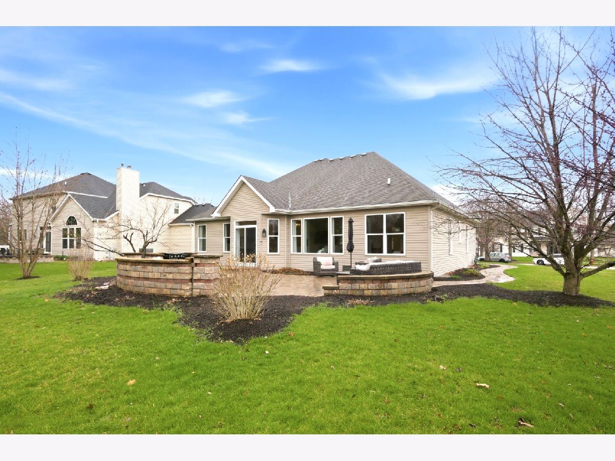 Beautiful ranch home situated on a spacious corner lot, offering a bright and inviting atmosphere throughout. The expansive great room showcases a vaulted ceiling and oversized windows that flood the space with natural light, while high ceilings and crisp white trim enhance the home's charm and airy feel. A formal dining room features impressive 9-foot ceilings, which extend throughout the main living areas, creating a seamless and open flow. The kitchen is designed for both function and comfort, featuring beautiful oak cabinetry, ample counter space, and a cozy dining area with sliding glass doors that lead to a large backyard patio-perfect for entertaining. The primary suite offers a relaxing retreat with a tray ceiling, private en-suite bath, and a spacious walk-in closet complete with built-in organizers. Two additional bedrooms provide generous closet space and are complemented by a second full bath and a conveniently located laundry room. A full basement with a dedicated workshop adds valuable flexibility and storage. Enjoy outdoor living in the beautifully landscaped, oversized backyard featuring an expansive paver patio, as well as a charming paver front courtyard that welcomes you home. Ideally located just moments from downtown Yorkville, this home truly has it all.