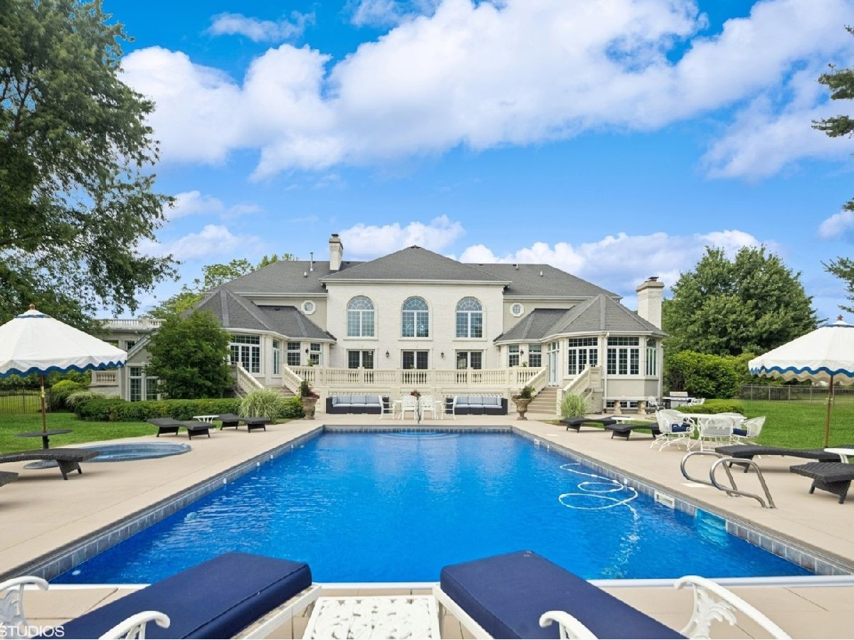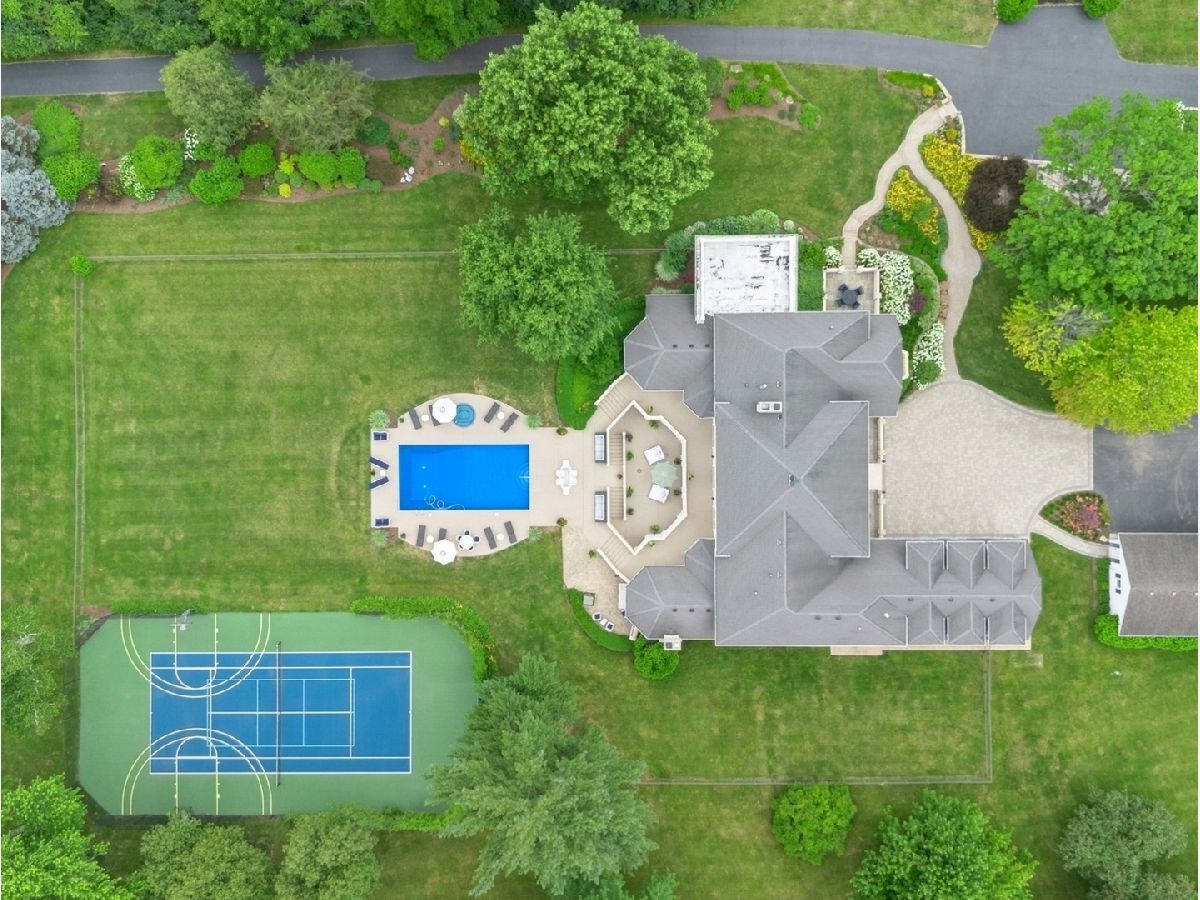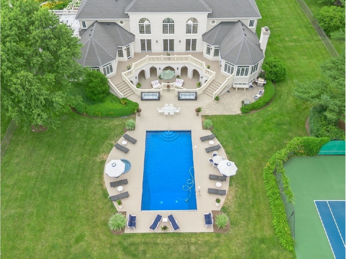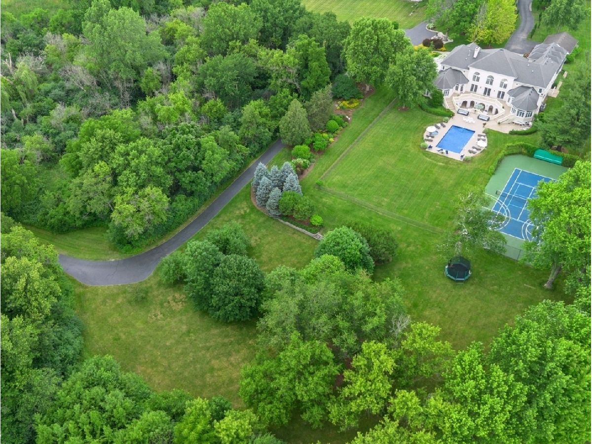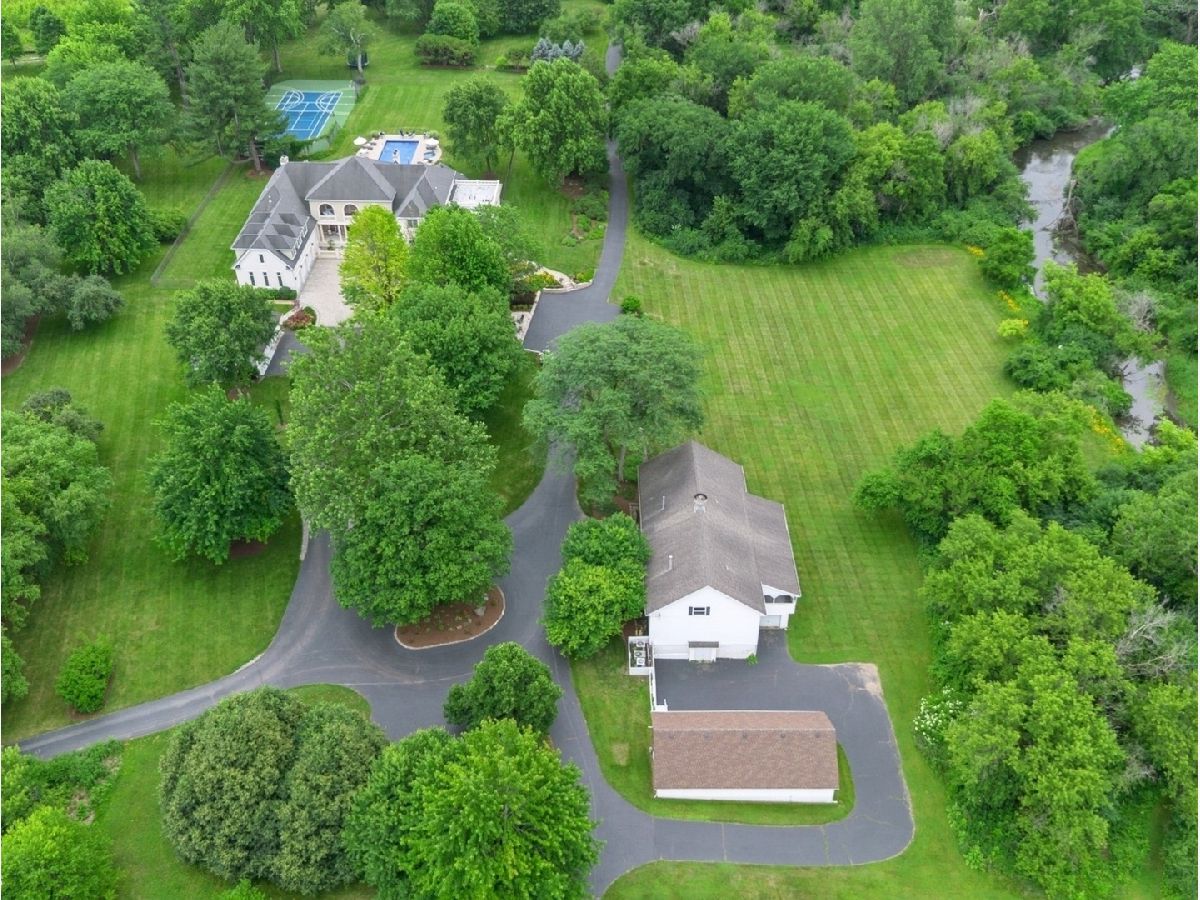 An Architectural Masterpiece in the heart of St. Charles - Step into glamour and sophistication at the illustrious Masco Estate-an exquisite residence envisioned by renowned architect, Scholz Design, and masterfully constructed in 2003, this estate is perfectly positioned just 35 miles west of Chicago, this stately sanctuary is nestled in the storybook landscape of St. Charles, Illinois. Approach via a secluded private lane, crossing a picturesque bridge over the tranquil Ferson Creek, and pass through elegant wrought iron gates into a world of splendor. Set on over 9 lush acres of manicured grounds and flourishing gardens, this distinguished Burr Road estate presents an unmatched lifestyle offering both grandeur and serenity. At the heart of the property lies the principal residence, encompassing over 12,000 square feet of refined living across three impeccably finished levels, including a full walkout lower level. This estate artfully blends old-world craftsmanship with modern luxury. Upon entry, be captivated by a 22-foot soaring great room, framed by Palladian windows, adorned with two sparkling crystal chandeliers, and anchored by a stately fireplace set in rich marble. Gorgeous travertine flooring and woods flows throughout, guiding you into the bespoke gourmet kitchen-a chef's haven boasting extensive maple cabinetry, high-end appliances, gleaming granite countertops, and a sunlit breakfast nook with panoramic views. Architectural brilliance continues in the rotunda-style turret, showcasing a cozy fireplace and terrace access-perfect for intimate gatherings or quiet reflection. The lavish first-floor primary suite is a private retreat, complete with an opulent ensuite, sitting rooms, a wet bar, private patio, and a dedicated staircase descending to a private gym. The adjacent executive office/library is a study in refinement, featuring custom millwork, fireplace, and it's own tranquil and private patio overlooking the expansive side lawn-an ideal blend of form and function. Additional amenities include dual laundry rooms on the main and lower levels for effortless convenience. Upstairs, new wool carpeting leads to four generously proportioned ensuite bedrooms, each offering privacy and elegant finishes. An expansive covered veranda on this level provides sweeping views and a perfect setting for entertaining. The walkout lower level is a destination in itself-designed for hosting and relaxation with a handcrafted Irish-imported oak bar, climate-controlled wine cellar, recreation spaces, gym, vault room, two fireplaces, and a full bath. Outdoors, this estate is equally impressive. Lounge by the resort-style pool and hot tub (with new liner and cover in 2023), entertain on the two-tiered stone terrace and loggia, or gather around the cozy fire pit. For the sports enthusiast, enjoy tennis, basketball, and pickleball courts-resurfaced in 2025 for basketball, pickleball and tennis -- all within your own private grounds. A highlight of the estate is the remarkable 2,450-square-foot Bank Barn, ideal for a home business, studio, or future guesthouse. Once a single family home & office (has it's own address), this barn has five bedrooms, three bathrooms and two kitchens. Featuring 24-foot vaulted ceilings, a dramatic balcony with sunset views, walkout lower level, and an attached garage, the barn is a separate three-car garage with epoxy flooring, AC, and a finished loft. Perfectly positioned with two private entrances, this one-of-a-kind estate offers close proximity to PGA event courses such as Medinah Country Club, St. Charles Country Club, The Hawk Country Club, Dunham Woods Riding Club, Leroy Oaks Forest Preserve, the Randall Road corridor, and the private DuPage Airport-all within the acclaimed St. Charles School District 303. This is more than a home-it's a legacy property and a rare opportunity to own one of St. Charles' most iconic estates. Call to schedule your private showing today.