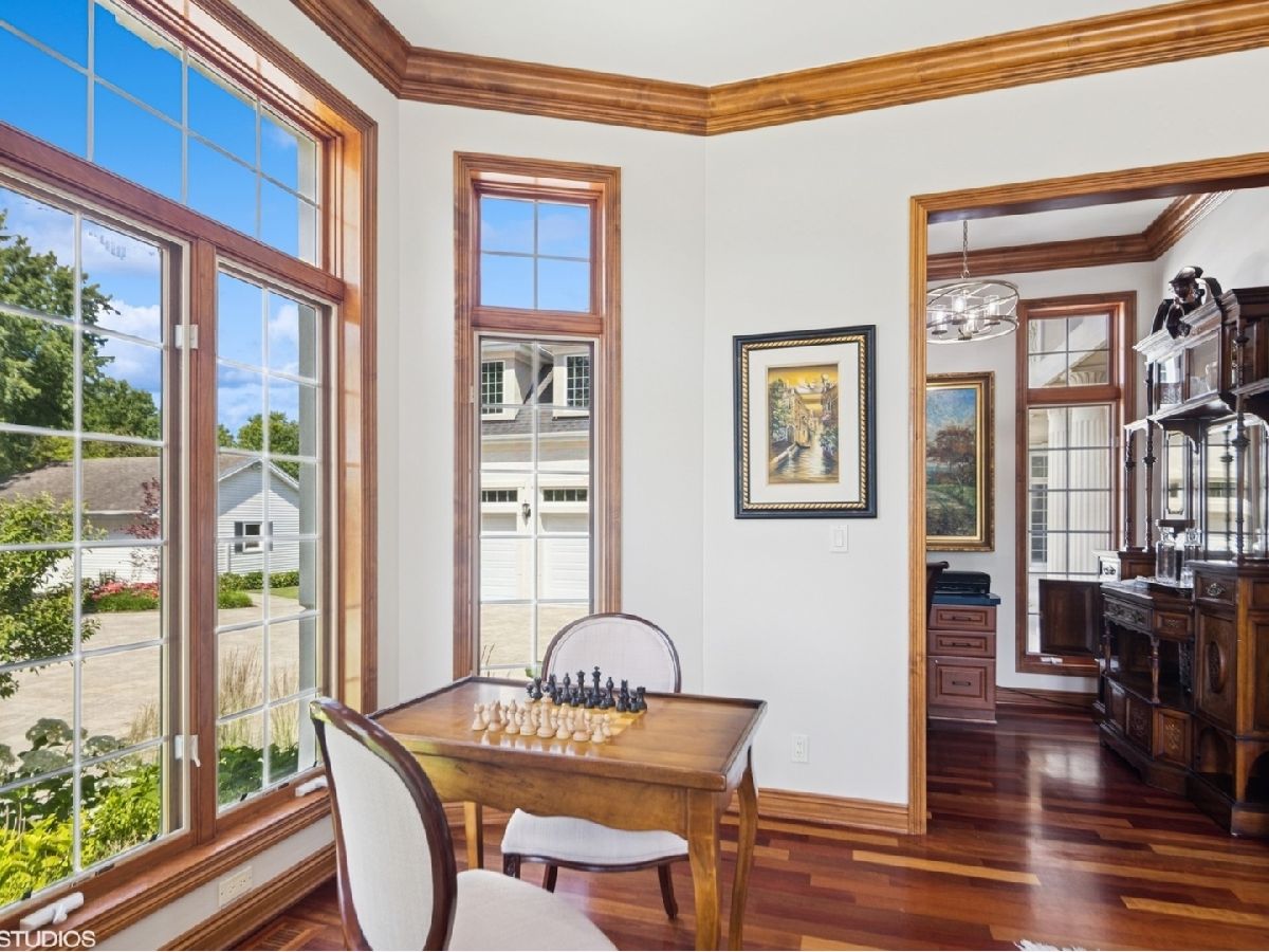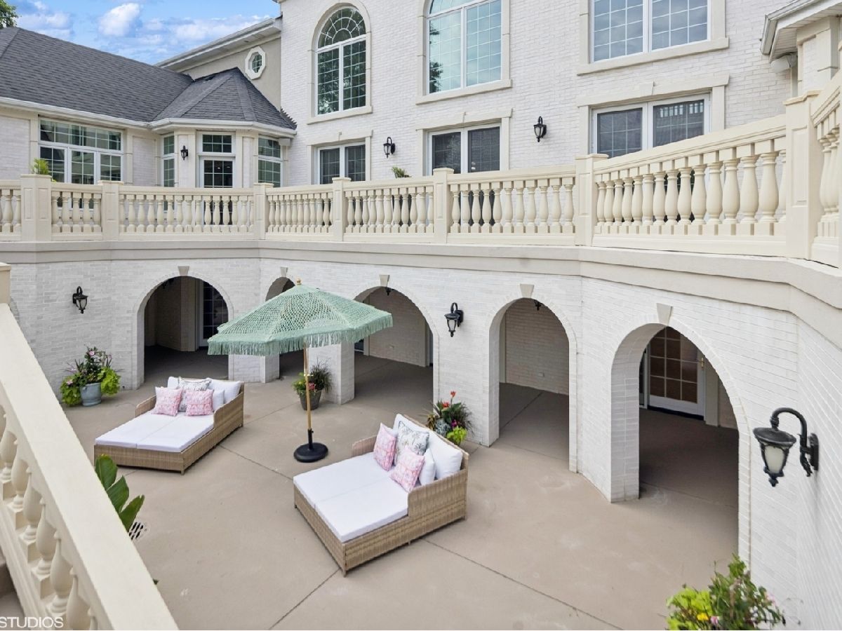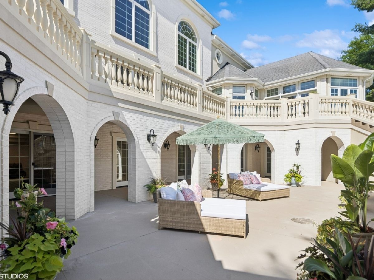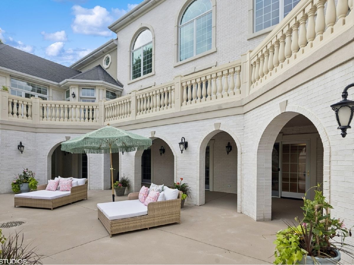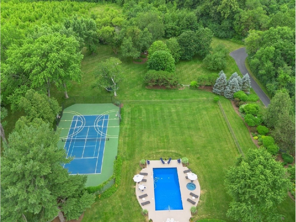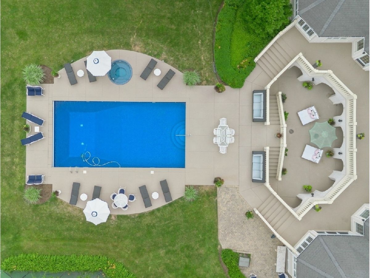 An Architectural Masterpiece in the heart of St. Charles - Step into glamour and sophistication at the illustrious Masco Estate-an exquisite residence envisioned by renowned architect, Scholz Design, and masterfully constructed in 2003, this estate is perfectly positioned just 35 miles west of Chicago, this stately sanctuary is nestled in the storybook landscape of St. Charles, Illinois. Approach via a secluded private lane, crossing a picturesque bridge over the tranquil Ferson Creek, and pass through elegant wrought iron gates into a world of splendor. Set on over 9 lush acres of manicured grounds and flourishing gardens, this distinguished Burr Road estate presents an unmatched lifestyle offering both grandeur and serenity. At the heart of the property lies the principal residence, encompassing over 12,000 square feet of refined living across three impeccably finished levels, including a full walkout lower level. This estate artfully blends old-world craftsmanship with modern luxury. Upon entry, be captivated by a 22-foot soaring great room, framed by Palladian windows, adorned with two sparkling crystal chandeliers, and anchored by a stately fireplace set in rich marble. Gorgeous travertine flooring and woods flows throughout, guiding you into the bespoke gourmet kitchen-a chef's haven boasting extensive maple cabinetry, high-end appliances, gleaming granite countertops, and a sunlit breakfast nook with panoramic views. Architectural brilliance continues in the rotunda-style turret, showcasing a cozy fireplace and terrace access-perfect for intimate gatherings or quiet reflection. The lavish first-floor primary suite is a private retreat, complete with an opulent ensuite, sitting rooms, a wet bar, private patio, and a dedicated staircase descending to a private gym. The adjacent executive office/library is a study in refinement, featuring custom millwork, fireplace, and it's own tranquil and private patio overlooking the expansive side lawn-an ideal blend of form and function. Additional amenities include dual laundry rooms on the main and lower levels for effortless convenience. Upstairs, new wool carpeting leads to four generously proportioned ensuite bedrooms, each offering privacy and elegant finishes. An expansive covered veranda on this level provides sweeping views and a perfect setting for entertaining. The walkout lower level is a destination in itself-designed for hosting and relaxation with a handcrafted Irish-imported oak bar, climate-controlled wine cellar, recreation spaces, gym, vault room, two fireplaces, and a full bath. Outdoors, this estate is equally impressive. Lounge by the resort-style pool and hot tub (with new liner and cover in 2023), entertain on the two-tiered stone terrace and loggia, or gather around the cozy fire pit. For the sports enthusiast, enjoy tennis, basketball, and pickleball courts-resurfaced in 2025 for basketball, pickleball and tennis -- all within your own private grounds. A highlight of the estate is the remarkable 2,450-square-foot Bank Barn, ideal for a home business, studio, or future guesthouse. Once a single family home & office (has it's own address), this barn has five bedrooms, three bathrooms and two kitchens. Featuring 24-foot vaulted ceilings, a dramatic balcony with sunset views, walkout lower level, and an attached garage, the barn is a separate three-car garage with epoxy flooring, AC, and a finished loft. Perfectly positioned with two private entrances, this one-of-a-kind estate offers close proximity to PGA event courses such as Medinah Country Club, St. Charles Country Club, The Hawk Country Club, Dunham Woods Riding Club, Leroy Oaks Forest Preserve, the Randall Road corridor, and the private DuPage Airport-all within the acclaimed St. Charles School District 303. This is more than a home-it's a legacy property and a rare opportunity to own one of St. Charles' most iconic estates. Call to schedule your private showing today.