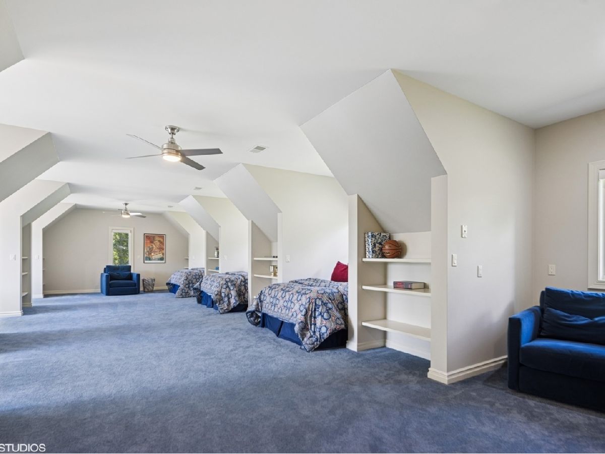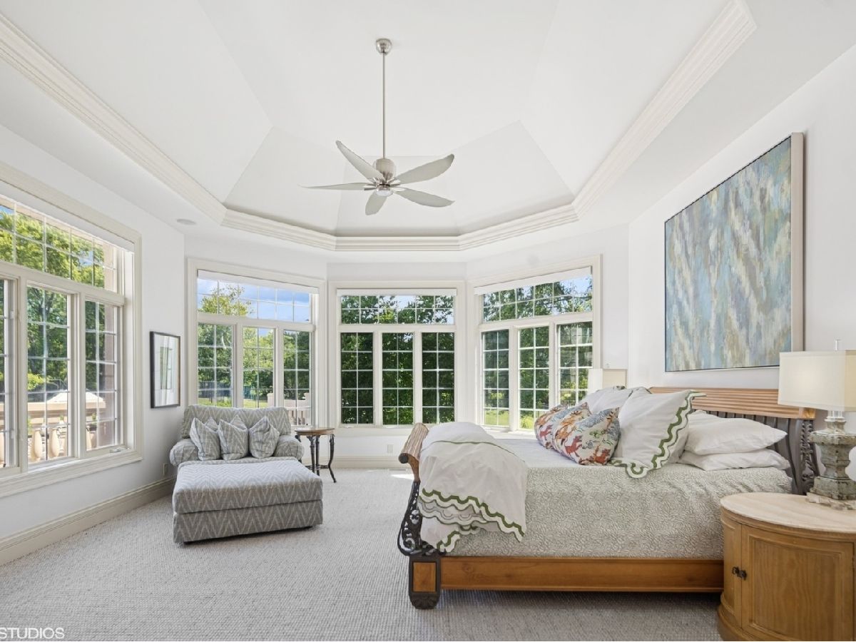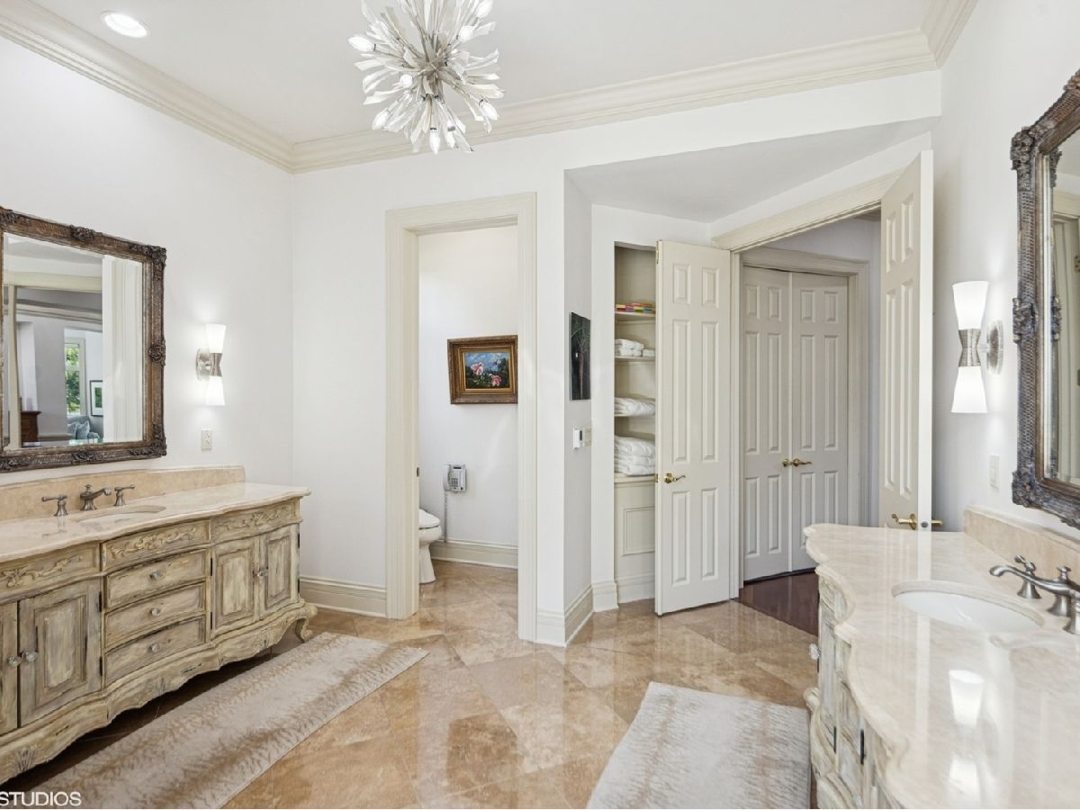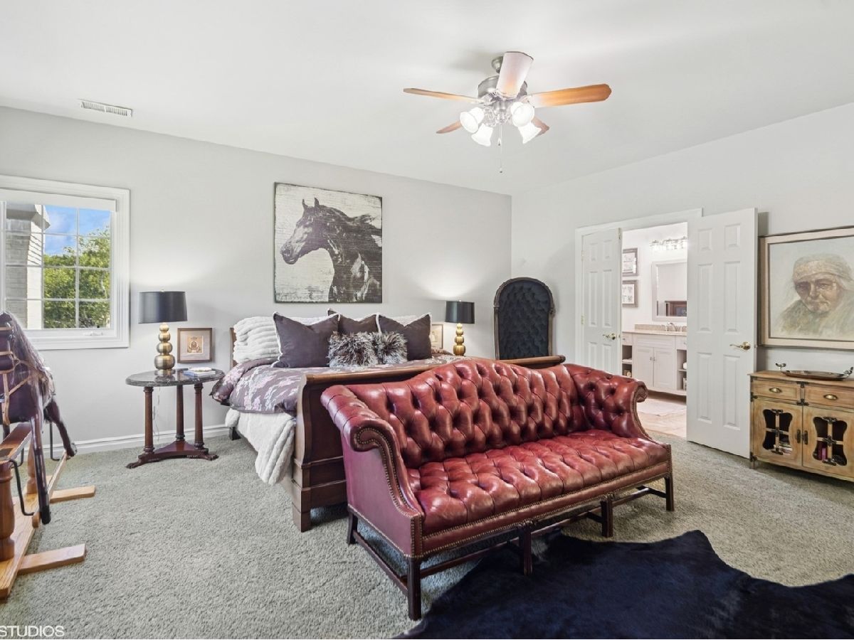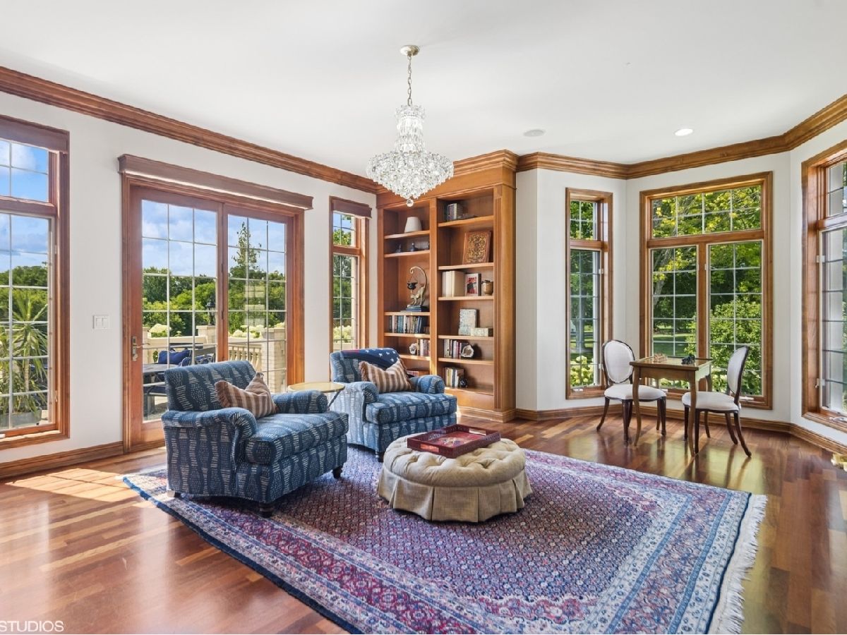 An Architectural Masterpiece in the heart of St. Charles - Step into glamour and sophistication at the illustrious Masco Estate-an exquisite residence envisioned by renowned architect, Scholz Design, and masterfully constructed in 2003, this estate is perfectly positioned just 35 miles west of Chicago, this stately sanctuary is nestled in the storybook landscape of St. Charles, Illinois. Approach via a secluded private lane, crossing a picturesque bridge over the tranquil Ferson Creek, and pass through elegant wrought iron gates into a world of splendor. Set on over 9 lush acres of manicured grounds and flourishing gardens, this distinguished Burr Road estate presents an unmatched lifestyle offering both grandeur and serenity. At the heart of the property lies the principal residence, encompassing over 12,000 square feet of refined living across three impeccably finished levels, including a full walkout lower level. This estate artfully blends old-world craftsmanship with modern luxury. Upon entry, be captivated by a 22-foot soaring great room, framed by Palladian windows, adorned with two sparkling crystal chandeliers, and anchored by a stately fireplace set in rich marble. Gorgeous travertine flooring and woods flows throughout, guiding you into the bespoke gourmet kitchen-a chef's haven boasting extensive maple cabinetry, high-end appliances, gleaming granite countertops, and a sunlit breakfast nook with panoramic views. Architectural brilliance continues in the rotunda-style turret, showcasing a cozy fireplace and terrace access-perfect for intimate gatherings or quiet reflection. The lavish first-floor primary suite is a private retreat, complete with an opulent ensuite, sitting rooms, a wet bar, private patio, and a dedicated staircase descending to a private gym. The adjacent executive office/library is a study in refinement, featuring custom millwork, fireplace, and it's own tranquil and private patio overlooking the expansive side lawn-an ideal blend of form and function. Additional amenities include dual laundry rooms on the main and lower levels for effortless convenience. Upstairs, new wool carpeting leads to four generously proportioned ensuite bedrooms, each offering privacy and elegant finishes. An expansive covered veranda on this level provides sweeping views and a perfect setting for entertaining. The walkout lower level is a destination in itself-designed for hosting and relaxation with a handcrafted Irish-imported oak bar, climate-controlled wine cellar, recreation spaces, gym, vault room, two fireplaces, and a full bath. Outdoors, this estate is equally impressive. Lounge by the resort-style pool and hot tub (with new liner and cover in 2023), entertain on the two-tiered stone terrace and loggia, or gather around the cozy fire pit. For the sports enthusiast, enjoy tennis, basketball, and pickleball courts-resurfaced in 2025 for basketball, pickleball and tennis -- all within your own private grounds. A highlight of the estate is the remarkable 2,450-square-foot Bank Barn, ideal for a home business, studio, or future guesthouse. Once a single family home & office (has it's own address), this barn has five bedrooms, three bathrooms and two kitchens. Featuring 24-foot vaulted ceilings, a dramatic balcony with sunset views, walkout lower level, and an attached garage, the barn is a separate three-car garage with epoxy flooring, AC, and a finished loft. Perfectly positioned with two private entrances, this one-of-a-kind estate offers close proximity to PGA event courses such as Medinah Country Club, St. Charles Country Club, The Hawk Country Club, Dunham Woods Riding Club, Leroy Oaks Forest Preserve, the Randall Road corridor, and the private DuPage Airport-all within the acclaimed St. Charles School District 303. This is more than a home-it's a legacy property and a rare opportunity to own one of St. Charles' most iconic estates. Call to schedule your private showing today.