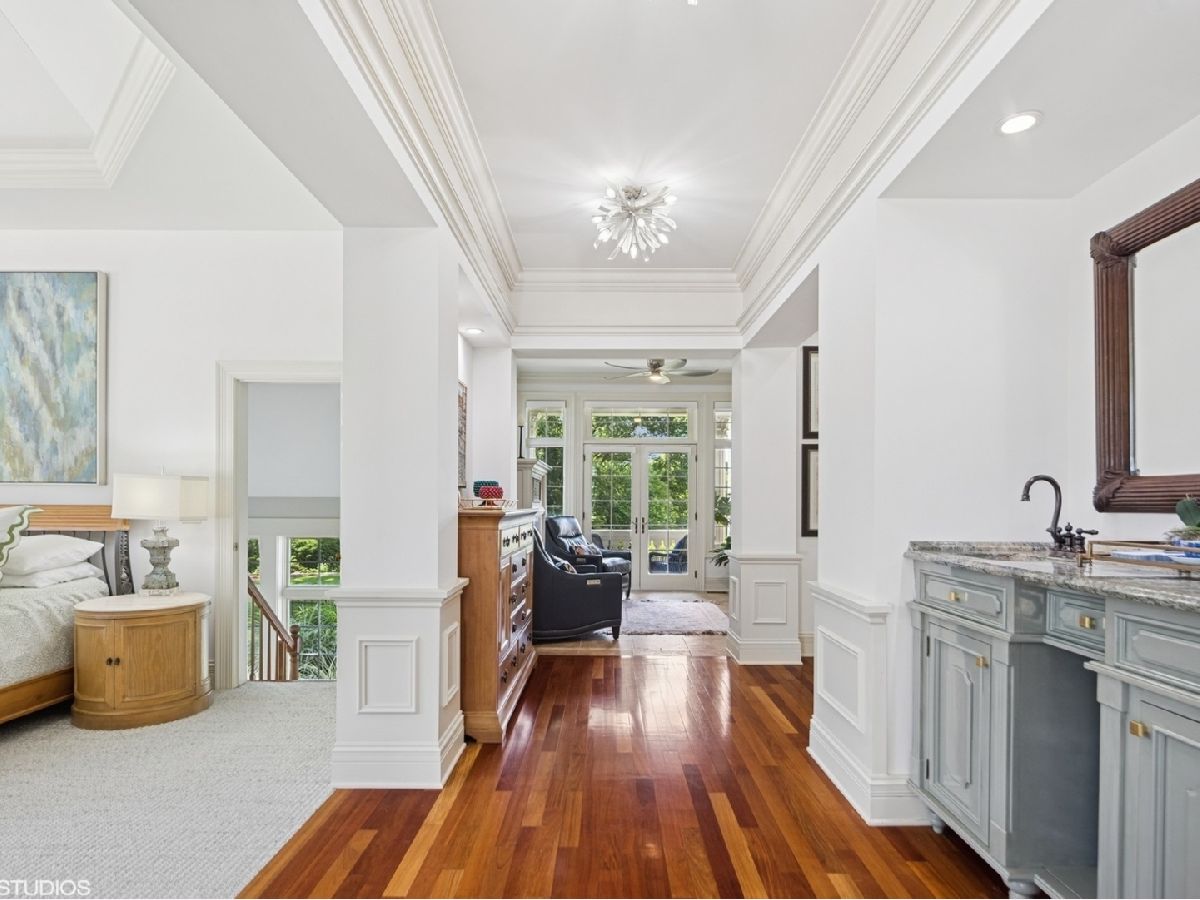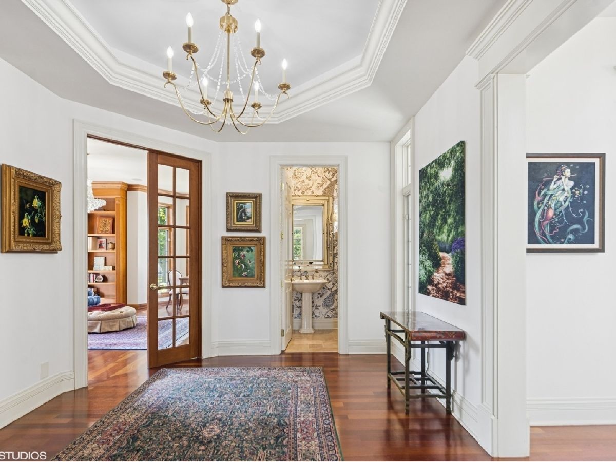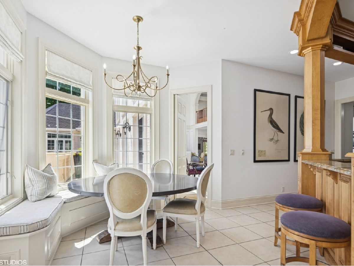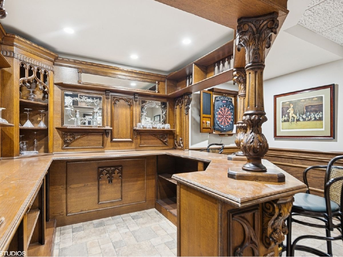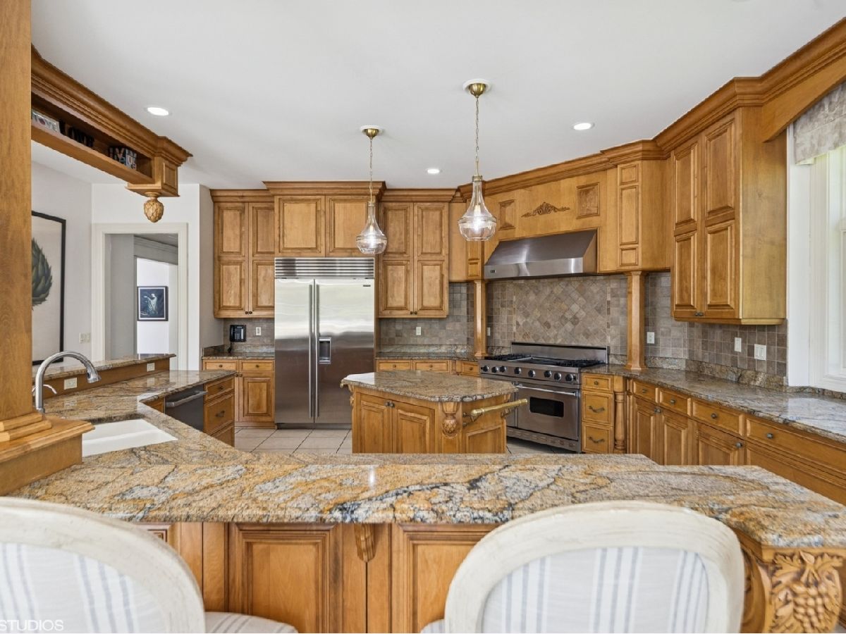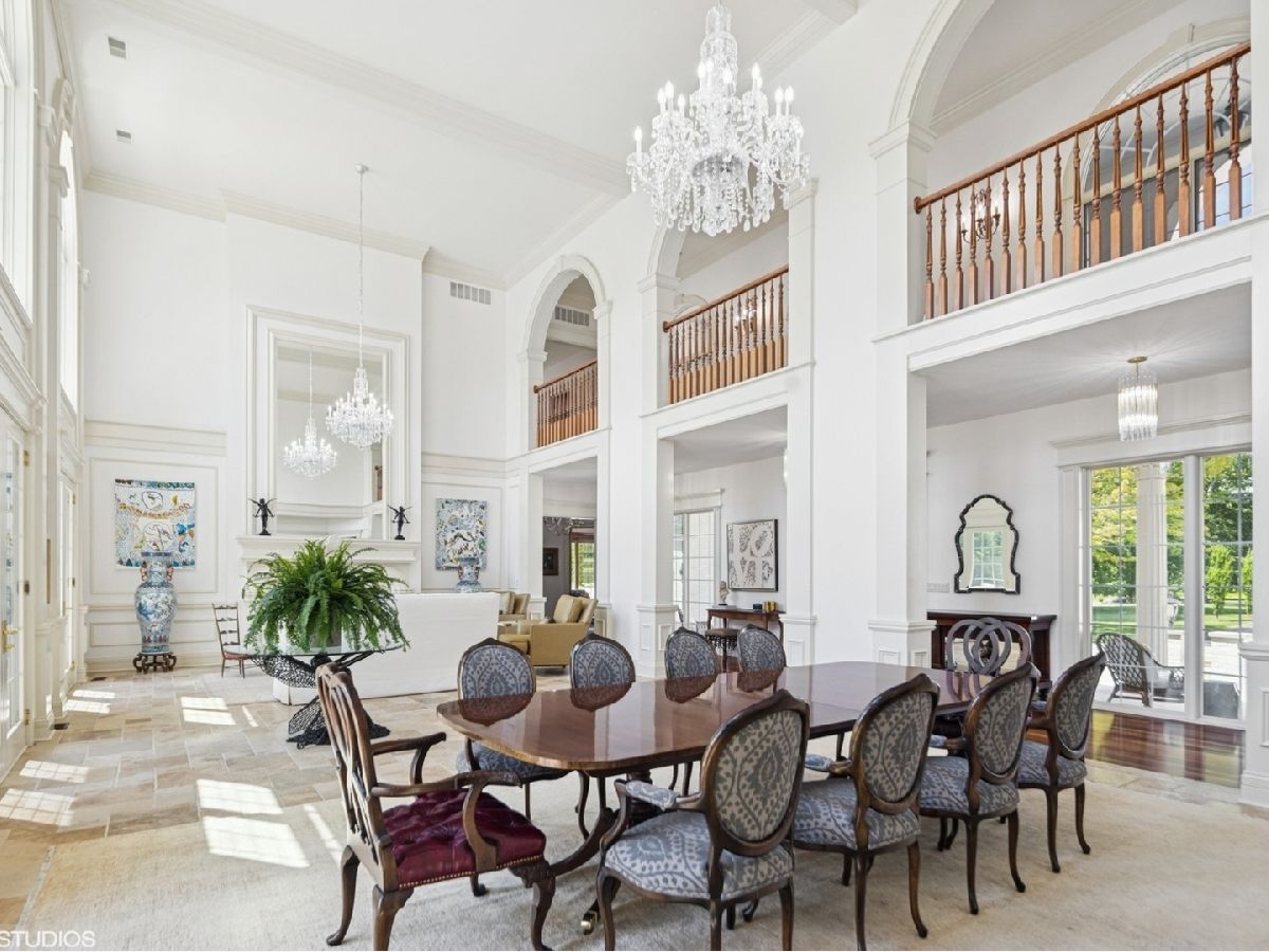 An Architectural Masterpiece in the heart of St. Charles - Step into glamour and sophistication at the illustrious Masco Estate-an exquisite residence envisioned by renowned architect, Scholz Design, and masterfully constructed in 2003, this estate is perfectly positioned just 35 miles west of Chicago, this stately sanctuary is nestled in the storybook landscape of St. Charles, Illinois. Approach via a secluded private lane, crossing a picturesque bridge over the tranquil Ferson Creek, and pass through elegant wrought iron gates into a world of splendor. Set on over 9 lush acres of manicured grounds and flourishing gardens, this distinguished Burr Road estate presents an unmatched lifestyle offering both grandeur and serenity. At the heart of the property lies the principal residence, encompassing over 12,000 square feet of refined living across three impeccably finished levels, including a full walkout lower level. This estate artfully blends old-world craftsmanship with modern luxury. Upon entry, be captivated by a 22-foot soaring great room, framed by Palladian windows, adorned with two sparkling crystal chandeliers, and anchored by a stately fireplace set in rich marble. Gorgeous travertine flooring and woods flows throughout, guiding you into the bespoke gourmet kitchen-a chef's haven boasting extensive maple cabinetry, high-end appliances, gleaming granite countertops, and a sunlit breakfast nook with panoramic views. Architectural brilliance continues in the rotunda-style turret, showcasing a cozy fireplace and terrace access-perfect for intimate gatherings or quiet reflection. The lavish first-floor primary suite is a private retreat, complete with an opulent ensuite, sitting rooms, a wet bar, private patio, and a dedicated staircase descending to a private gym. The adjacent executive office/library is a study in refinement, featuring custom millwork, fireplace, and it's own tranquil and private patio overlooking the expansive side lawn-an ideal blend of form and function. Additional amenities include dual laundry rooms on the main and lower levels for effortless convenience. Upstairs, new wool carpeting leads to four generously proportioned ensuite bedrooms, each offering privacy and elegant finishes. An expansive covered veranda on this level provides sweeping views and a perfect setting for entertaining. The walkout lower level is a destination in itself-designed for hosting and relaxation with a handcrafted Irish-imported oak bar, climate-controlled wine cellar, recreation spaces, gym, vault room, two fireplaces, and a full bath. Outdoors, this estate is equally impressive. Lounge by the resort-style pool and hot tub (with new liner and cover in 2023), entertain on the two-tiered stone terrace and loggia, or gather around the cozy fire pit. For the sports enthusiast, enjoy tennis, basketball, and pickleball courts-resurfaced in 2025 for basketball, pickleball and tennis -- all within your own private grounds. A highlight of the estate is the remarkable 2,450-square-foot Bank Barn, ideal for a home business, studio, or future guesthouse. Once a single family home & office (has it's own address), this barn has five bedrooms, three bathrooms and two kitchens. Featuring 24-foot vaulted ceilings, a dramatic balcony with sunset views, walkout lower level, and an attached garage, the barn is a separate three-car garage with epoxy flooring, AC, and a finished loft. Perfectly positioned with two private entrances, this one-of-a-kind estate offers close proximity to PGA event courses such as Medinah Country Club, St. Charles Country Club, The Hawk Country Club, Dunham Woods Riding Club, Leroy Oaks Forest Preserve, the Randall Road corridor, and the private DuPage Airport-all within the acclaimed St. Charles School District 303. This is more than a home-it's a legacy property and a rare opportunity to own one of St. Charles' most iconic estates. Call to schedule your private showing today.
