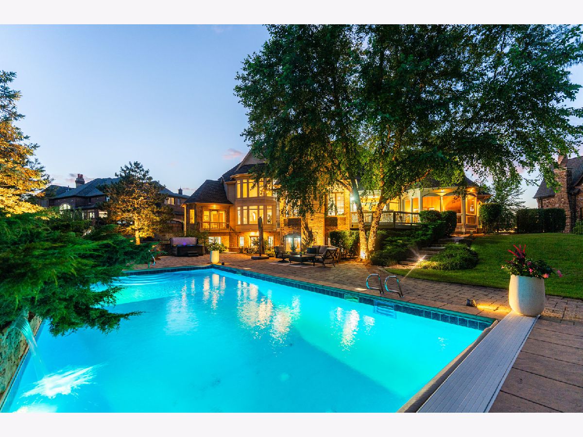 Welcome to 5N155 Prairie Rose Drive, a private lakefront inspired estate in the prestigious Prairie Lakes community offering resort style living w/ a pool, sweeping water views, and an exceptional walk out entertainment level. Designed for both elegant entertaining and everyday comfort, this home blends timeless architecture, expansive living spaces, and peaceful waterfront surroundings. Situated on a beautifully landscaped 0.93 acre lot w/ over 11,500 square feet of finished living space, the property offers rare privacy while capturing scenic lake views throughout the home and outdoor living areas. Inside, craftsmanship and modern updates come together through soaring ceilings, detailed millwork, and updated flooring completed in 2023. The kitchen is designed for both functionality and gathering, featuring high end appliances, custom cabinetry, elegant finishes, and a spacious eating area that opens directly to the screened porch and expansive deck. This thoughtful layout creates effortless indoor outdoor living overlooking the pool and landscaped backyard. A well placed 1st floor bar connects the great room and formal dining room, creating a natural flow for entertaining. A private 1st floor bdrm w/ a full bathrm and balcony overlooking the pool offers an ideal guest or in law suite. The main level also includes 2 powder rms, 2 mudrooms w/ direct garage access, and a spacious 1st floor laundry rmdesigned for everyday convenience. One of the home's most distinctive features is the dramatic 2 story executive office, where expansive windows and intricate custom millwork create an inspiring work from home environment rarely found in residential properties. Upstairs, the primary suite offers a peaceful retreat w/ a private balcony capturing beautiful lake views. The suite includes a wet bar w/ wine refrigerator, a custom walk in closet, and a spa inspired primary bathrm featuring a striking mosaic tile shower and refined finishes. A private 2nd floor laundry rm adds additional convenience. Each additional bdrm features a walk in closet and its own en suite bathrm, providing comfort and privacy for family and guests. The fully finished walk out lower level transforms the home into a private entertainment destination, featuring heated floors, a full bar, private theater, full bathrm, and expansive gathering spaces ideal for hosting large events or relaxed evenings w/ family and friends. Direct garage access from the lower level adds another level of functionality rarely found in homes of this scale. Outside, the resort style pool and surrounding outdoor living spaces create an inviting setting for entertaining, relaxing, and enjoying peaceful lake views. Mature landscaping and the expansive lot provide privacy while showcasing the natural beauty of Prairie Lakes. Located within highly rated St. Charles Community Unit School District 303, this home offers convenient access to scenic parks, walking trails, golf courses, and the vibrant dining, shopping, and riverfront atmosphere of St. Charles. Significant updates include 3 newer HVAC systems (2023), 2 water heaters (2019), fresh interior paint & a newer pool filter (2025). This extraordinary Prairie Lakes estate delivers a rare combination of luxury, privacy, lake views & resort-style living in one of St. Charles' most sought-after communities, making it one of the most desirable St. Charles luxury homes for sale w/ pool & lake views.