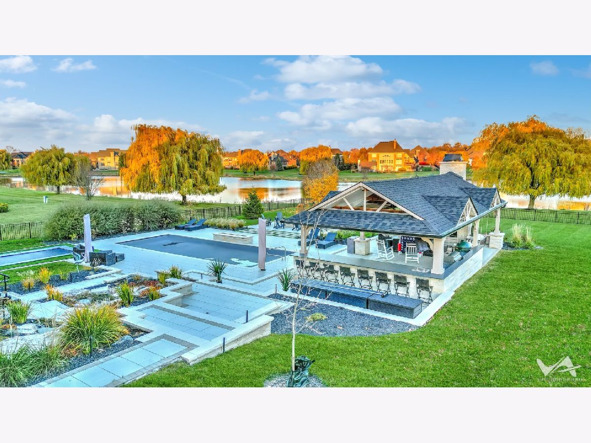 Resort Living in Prairie Lakes! Experience luxury resort living every day in this stunning custom-built home in Prairie Lakes! The showstopping backyard oasis invites relaxation and entertainment with a striking deep-blue sapphire color inground pool featuring a waterfall, bubblers, sun deck, deck jets, and automatic cover. Enjoy multiple fire pits, a fully equipped outdoor kitchen, a pond less pond with cascading waterfall, and a stone fireplace-all overlooking the peaceful lake. A $25,000 outdoor multi-zoned sound system, easily controlled by your cell phone, ensures the perfect atmosphere. The maintenance-free deck located near the kitchen, includes a motorized awning with built-in lighting, creating the perfect spot for outdoor dining and sunset views. The fully fenced yard offers privacy, lush landscaping, and even an inground trampoline for year-round fun. A convenient poolside bathroom makes entertaining effortless. Inside, sophistication meets comfort with a two-story foyer, 12-foot ceilings, and custom millwork throughout. The great room impresses with beamed ceilings, floor-to-ceiling windows, and a custom fireplace framing incredible lake views. The chef's kitchen boasts quartz countertops, an oversized island with prep sink, a statement range hood, and a Closet Factory walk-in pantry designed for impeccable organization. A sunroom surrounded by windows floods the space with natural light and serene views. Upstairs, the primary suite is a luxurious retreat featuring dual walk-in closets and a spa-inspired bath with herringbone tile floors, soaking tub, dual vanities, and a large multi-head shower. The second level also offers three additional bedrooms, an organized laundry suite, a large playroom with a built-in playhouse and adjacent storage room, and a very large temperature-controlled storage room - perfect for off-season wardrobe storage, keepsakes, or household organization. The finished basement expands your living space with a family room, wet bar, game area, fitness room, infrared sauna, and a craft/guest room-the perfect blend of recreation and relaxation. The heated 4.5-car garage features custom cabinetry and epoxy flooring. With breathtaking views, thoughtful design, and every amenity imaginable, this residence truly defines resort-style living at its finest.