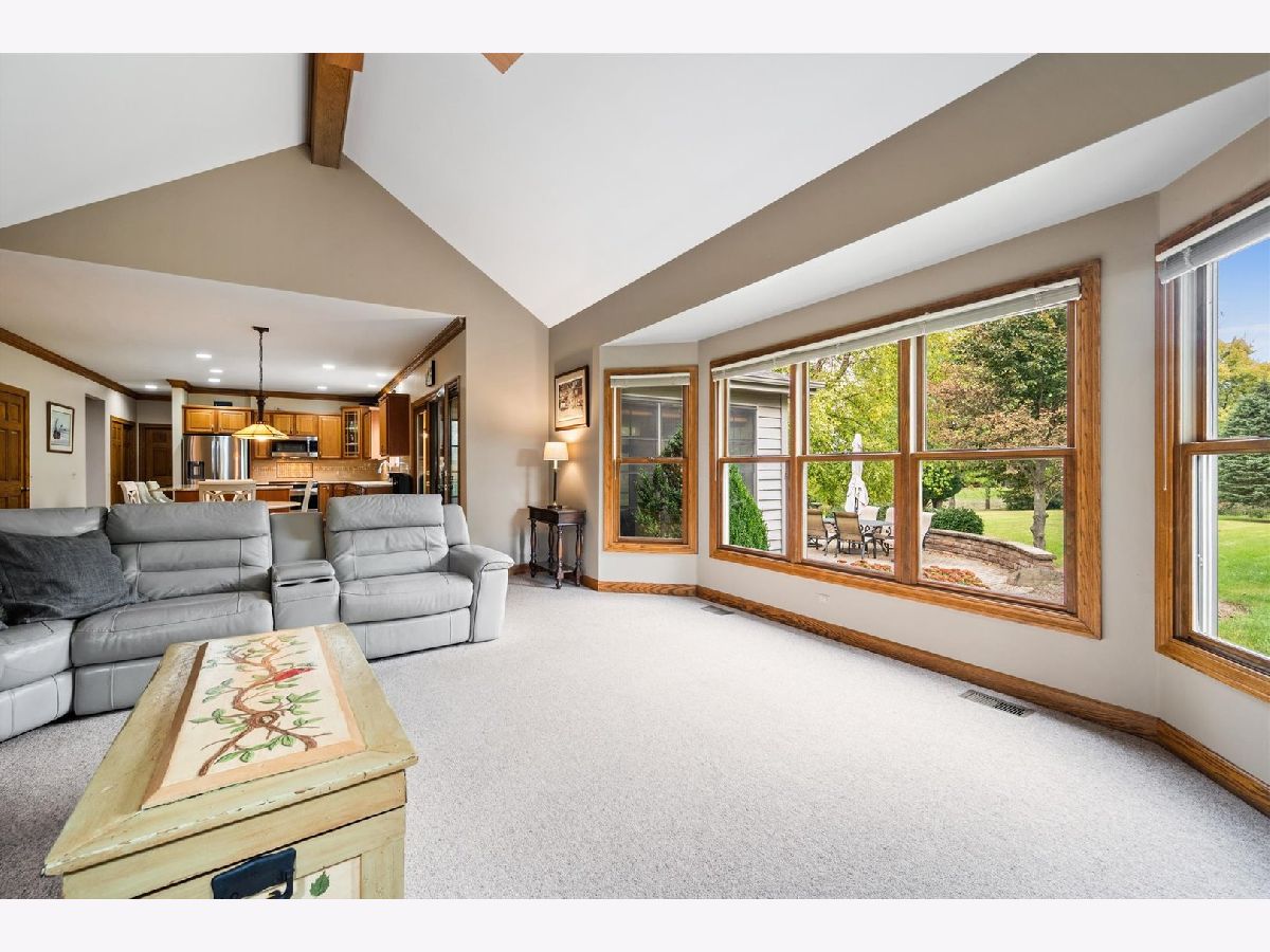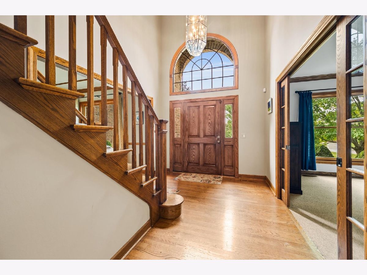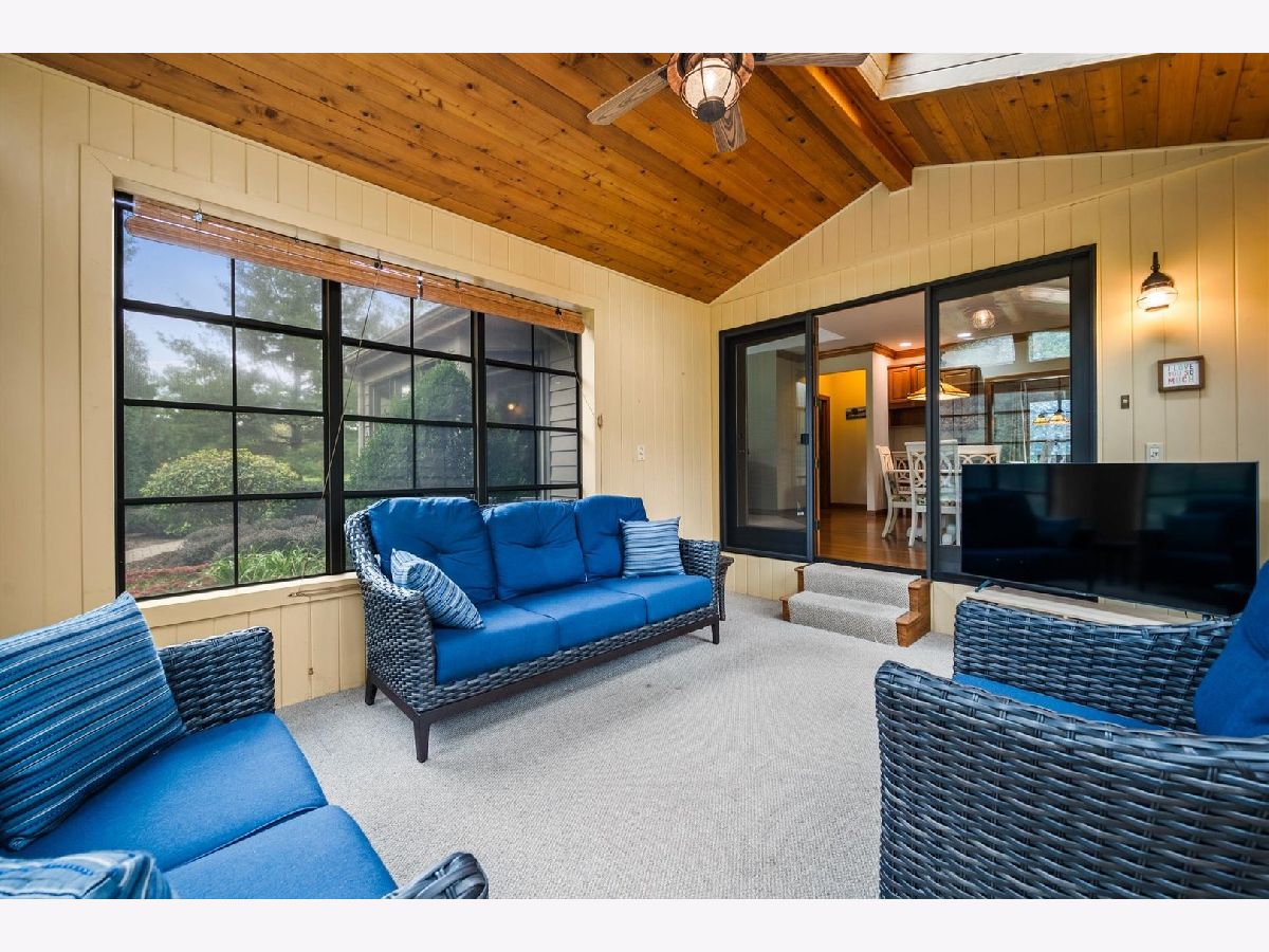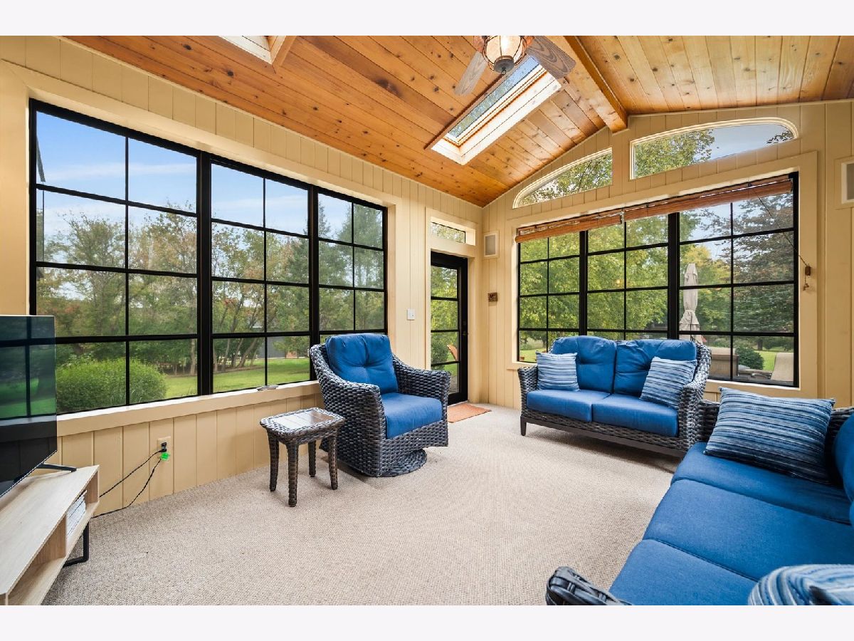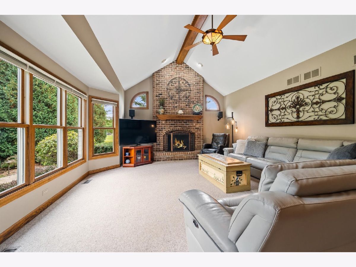 Stately brick-front home on a private lot with a deep backyard and gorgeous paver patio in an exclusive private enclave of Deer Run! Step inside the 2-story foyer with oak hardwood floors and crown molding that flow through to the kitchen. The spacious living room features pocket French doors and crown molding, while the formal dining room offers a chair rail, crown molding, custom recessed ceiling, and a wood-cased opening to the kitchen. The chef's kitchen impresses with 42" hickory cabinetry w/crown trim, granite countertops, stainless steel appliances, breakfast bar/island, pantry closet, planning desk, recessed lighting, and a bright eating area with slider to the patio. The family room has a vaulted beamed ceiling, floor-to-ceiling brick fireplace, and a big bay window overlooking the yard. A main-floor den or 5th bedroom with French doors and adjacent powder room makes a perfect guest suite. The large laundry/mudroom includes a sink, storage closets, and access to the garage and side yard. The highlight of the main floor is the 3-season sunroom with vaulted tongue-and-groove ceiling, walls of adjustable windows, skylights, panoramic views, and patio access. Upstairs, the primary suite boasts a tray ceiling, sitting area, two walk-in closets (one is 28x8!), and a luxury bath with vaulted ceiling, skylight, dual sink granite top vanity, corner whirlpool tub, and separate shower. Three generous secondary bedrooms-one with a vaulted ceiling-share a hall bath with dual sink granite top vanity and tub/shower combo. The full walk-out basement offers endless possibilities for future finishing. 3-car side-load garage, custom paver walkway, and paver patio offering beautiful outdoor entertaining space complete the package. Ideally located just minutes from downtown St. Charles and Randall Road shopping and dining! Come and take a look!