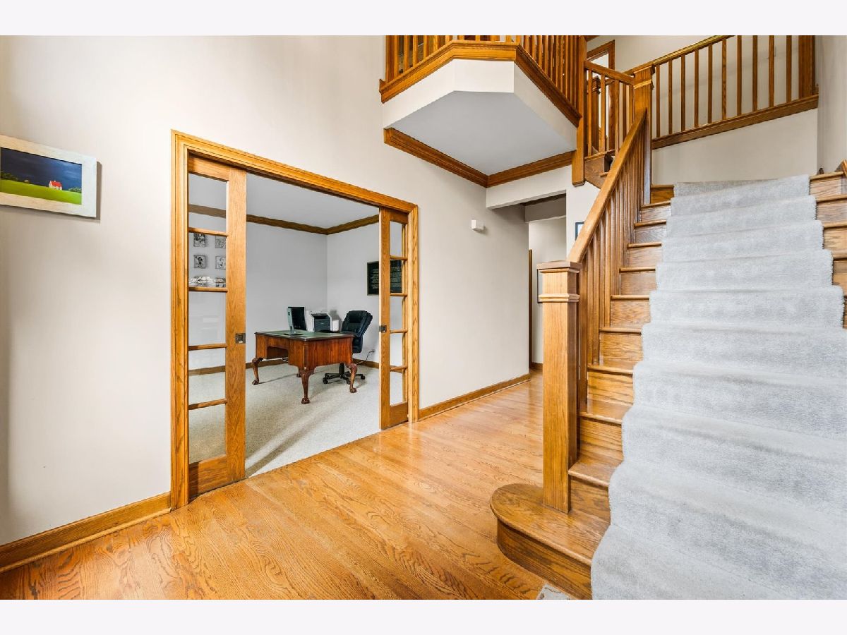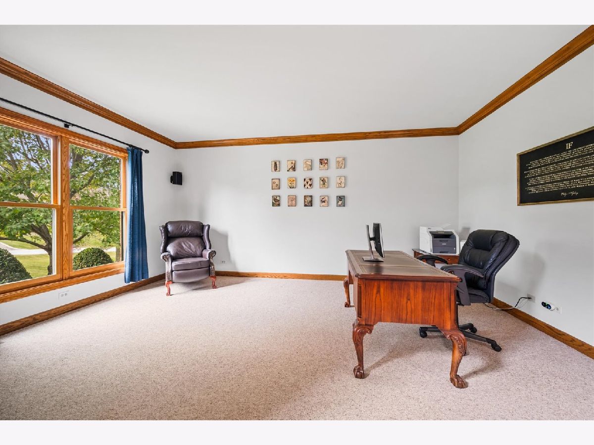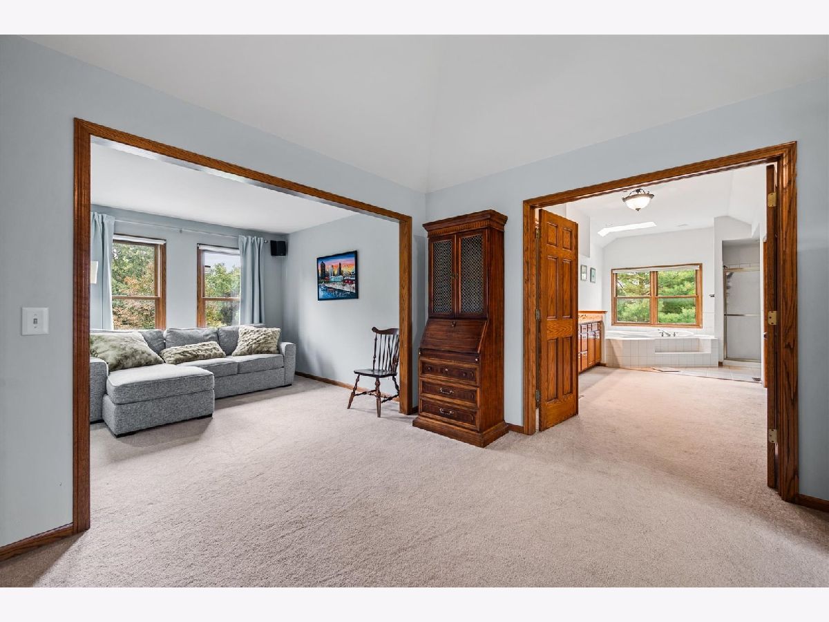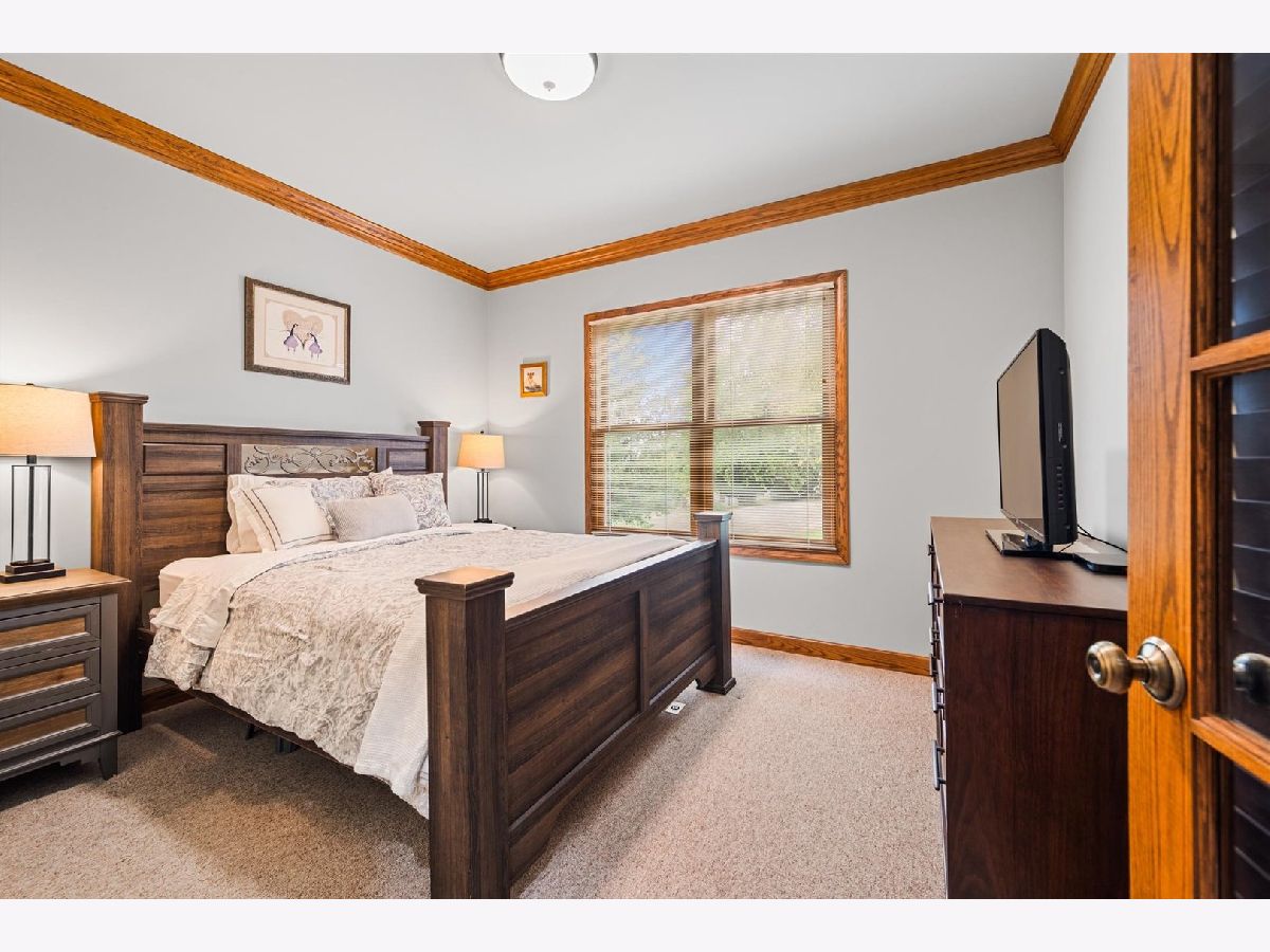 Stately brick-front home on a private lot with a deep backyard and gorgeous paver patio in an exclusive private enclave of Deer Run! Step inside the 2-story foyer with oak hardwood floors and crown molding that flow through to the kitchen. The spacious living room features pocket French doors and crown molding, while the formal dining room offers a chair rail, crown molding, custom recessed ceiling, and a wood-cased opening to the kitchen. The chef's kitchen impresses with 42" hickory cabinetry w/crown trim, granite countertops, stainless steel appliances, breakfast bar/island, pantry closet, planning desk, recessed lighting, and a bright eating area with slider to the patio. The family room has a vaulted beamed ceiling, floor-to-ceiling brick fireplace, and a big bay window overlooking the yard. A main-floor den or 5th bedroom with French doors and adjacent powder room makes a perfect guest suite. The large laundry/mudroom includes a sink, storage closets, and access to the garage and side yard. The highlight of the main floor is the 3-season sunroom with vaulted tongue-and-groove ceiling, walls of adjustable windows, skylights, panoramic views, and patio access. Upstairs, the primary suite boasts a tray ceiling, sitting area, two walk-in closets (one is 28x8!), and a luxury bath with vaulted ceiling, skylight, dual sink granite top vanity, corner whirlpool tub, and separate shower. Three generous secondary bedrooms-one with a vaulted ceiling-share a hall bath with dual sink granite top vanity and tub/shower combo. The full walk-out basement offers endless possibilities for future finishing. 3-car side-load garage, custom paver walkway, and paver patio offering beautiful outdoor entertaining space complete the package. Ideally located just minutes from downtown St. Charles and Randall Road shopping and dining! Come and take a look!