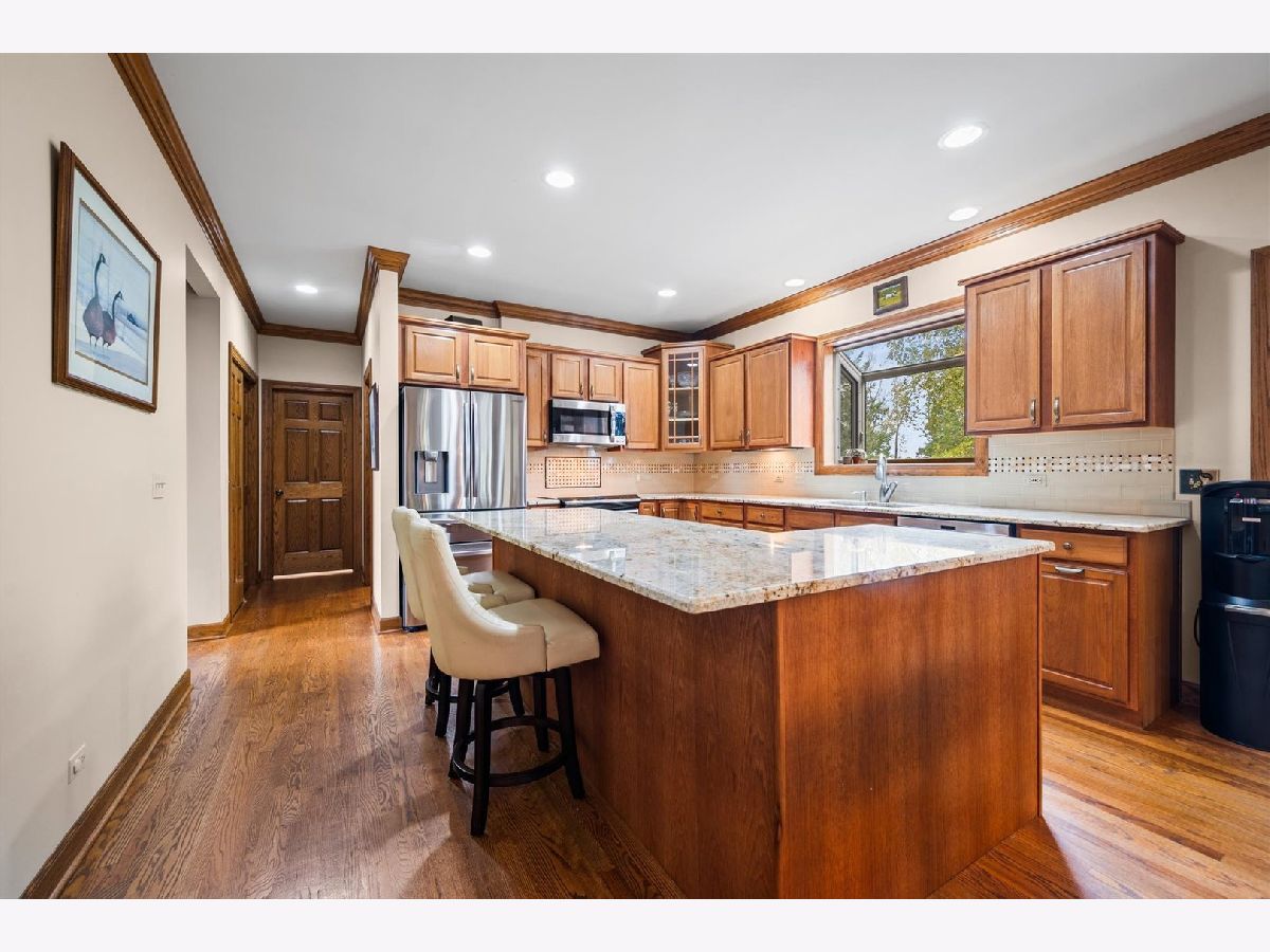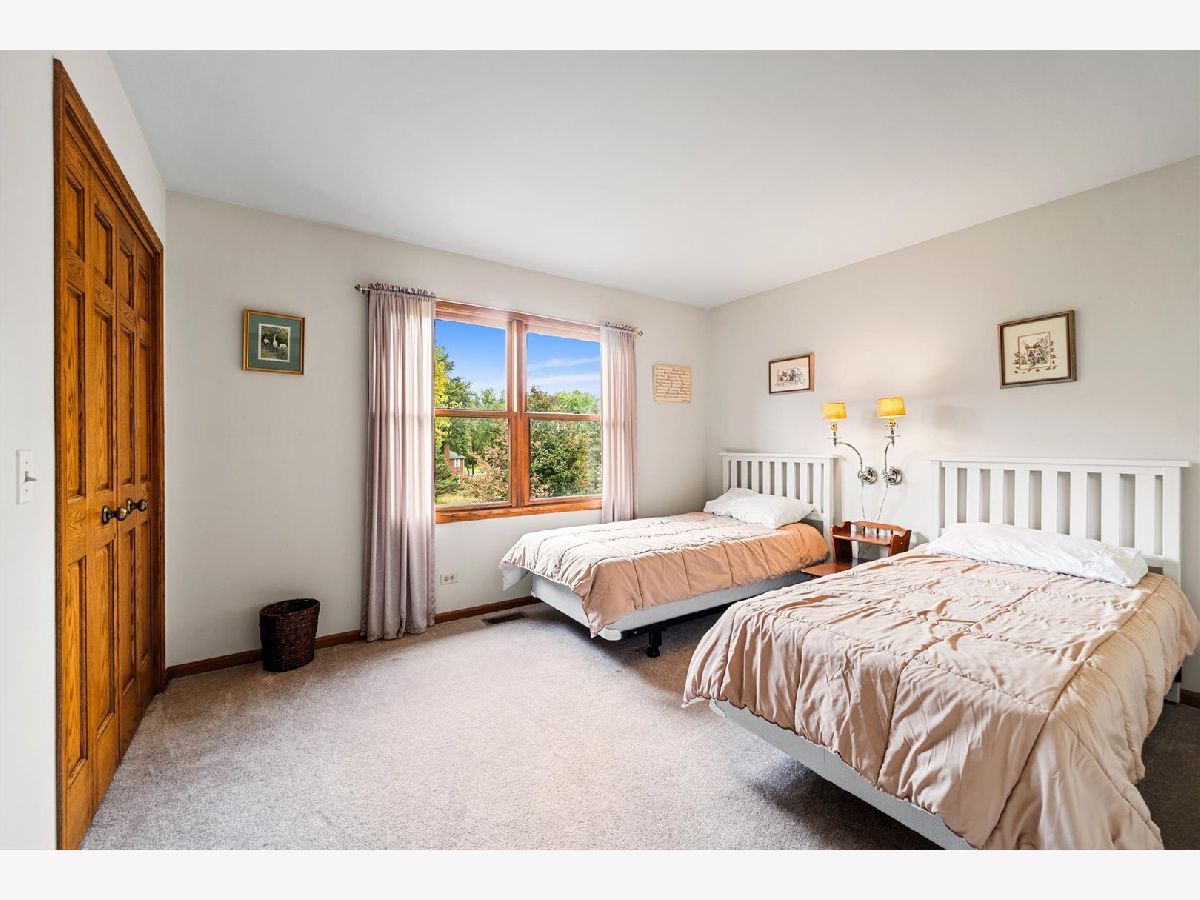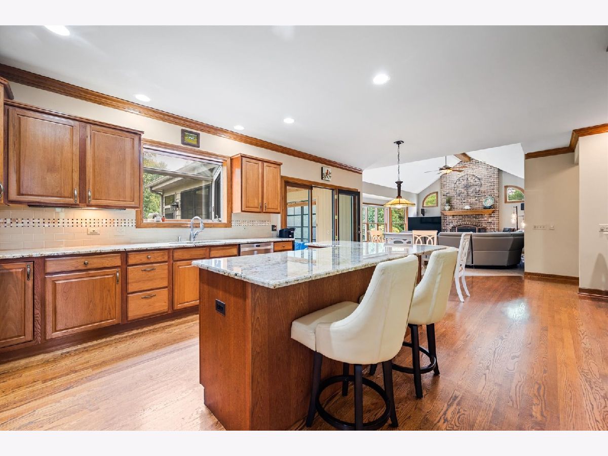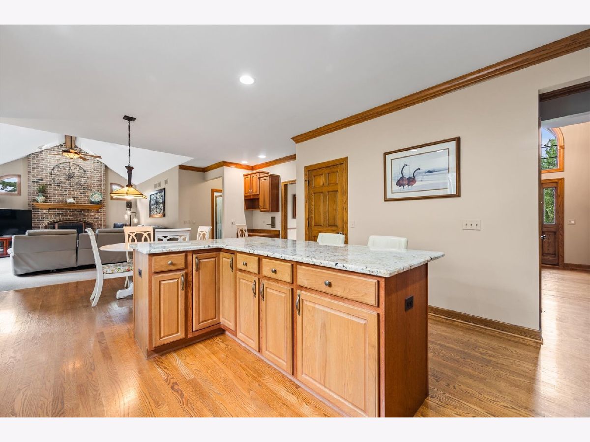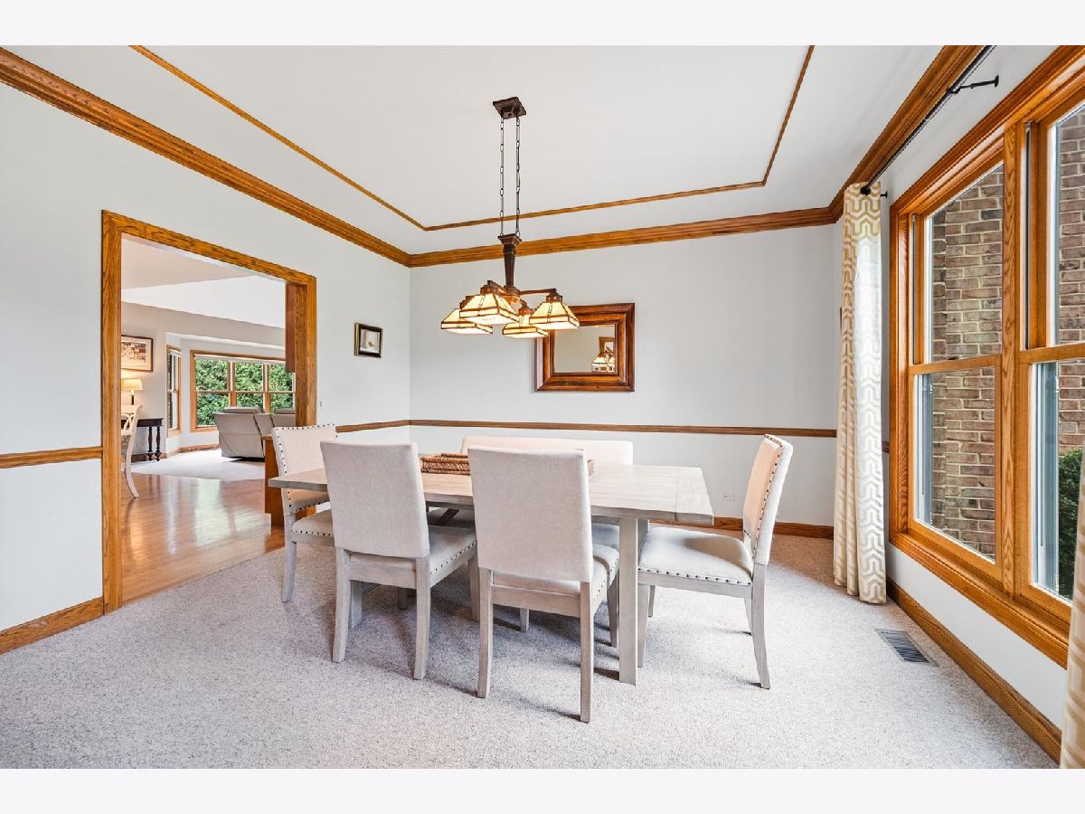 Stately brick-front home on a private lot with a deep backyard and gorgeous paver patio in an exclusive private enclave of Deer Run! Step inside the 2-story foyer with oak hardwood floors and crown molding that flow through to the kitchen. The spacious living room features pocket French doors and crown molding, while the formal dining room offers a chair rail, crown molding, custom recessed ceiling, and a wood-cased opening to the kitchen. The chef's kitchen impresses with 42" hickory cabinetry w/crown trim, granite countertops, stainless steel appliances, breakfast bar/island, pantry closet, planning desk, recessed lighting, and a bright eating area with slider to the patio. The family room has a vaulted beamed ceiling, floor-to-ceiling brick fireplace, and a big bay window overlooking the yard. A main-floor den or 5th bedroom with French doors and adjacent powder room makes a perfect guest suite. The large laundry/mudroom includes a sink, storage closets, and access to the garage and side yard. The highlight of the main floor is the 3-season sunroom with vaulted tongue-and-groove ceiling, walls of adjustable windows, skylights, panoramic views, and patio access. Upstairs, the primary suite boasts a tray ceiling, sitting area, two walk-in closets (one is 28x8!), and a luxury bath with vaulted ceiling, skylight, dual sink granite top vanity, corner whirlpool tub, and separate shower. Three generous secondary bedrooms-one with a vaulted ceiling-share a hall bath with dual sink granite top vanity and tub/shower combo. The full walk-out basement offers endless possibilities for future finishing. 3-car side-load garage, custom paver walkway, and paver patio offering beautiful outdoor entertaining space complete the package. Ideally located just minutes from downtown St. Charles and Randall Road shopping and dining! Come and take a look!