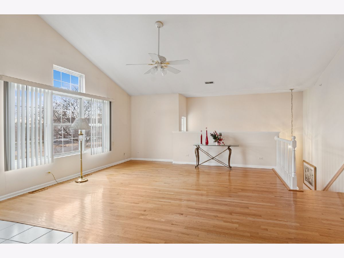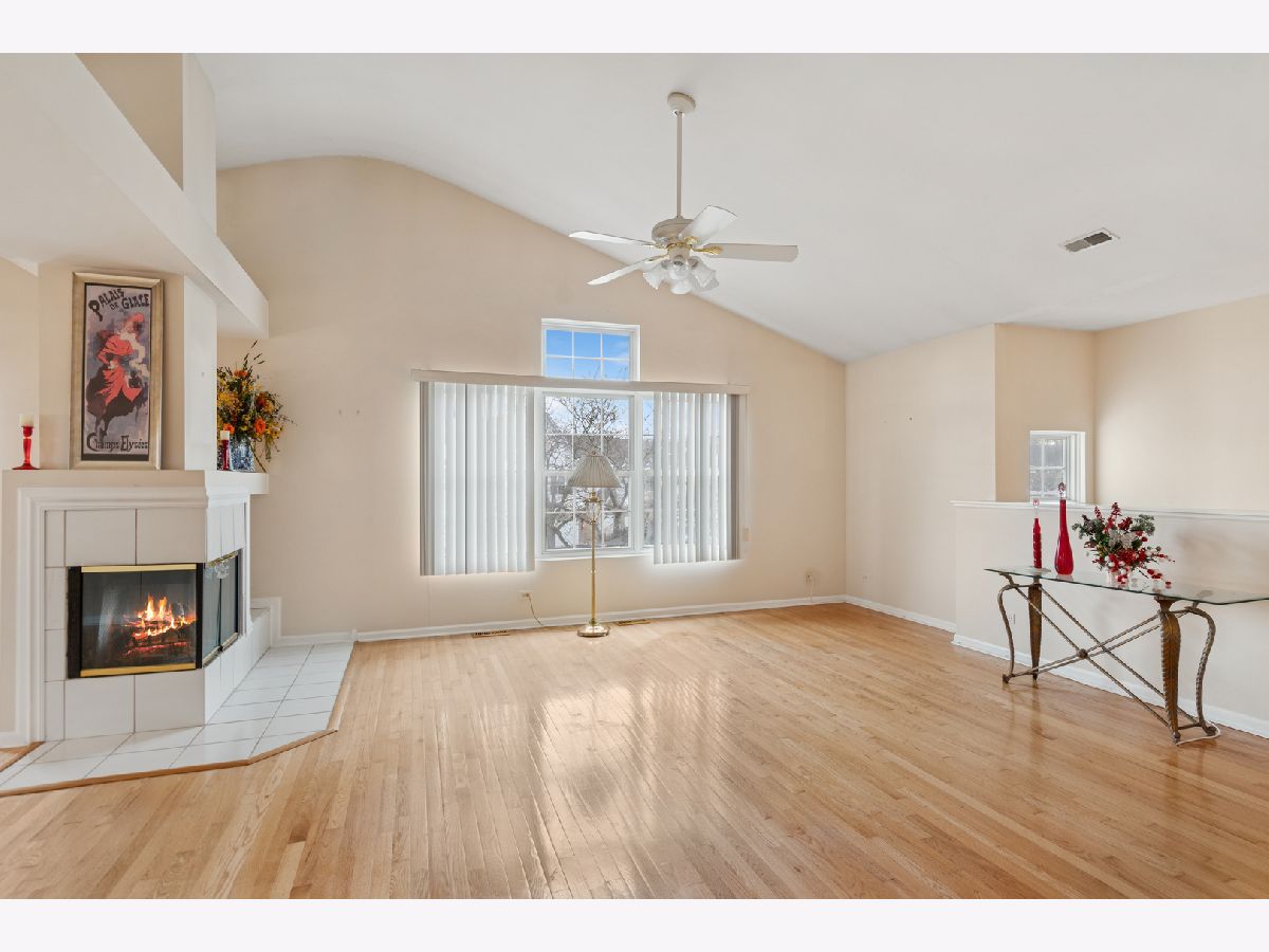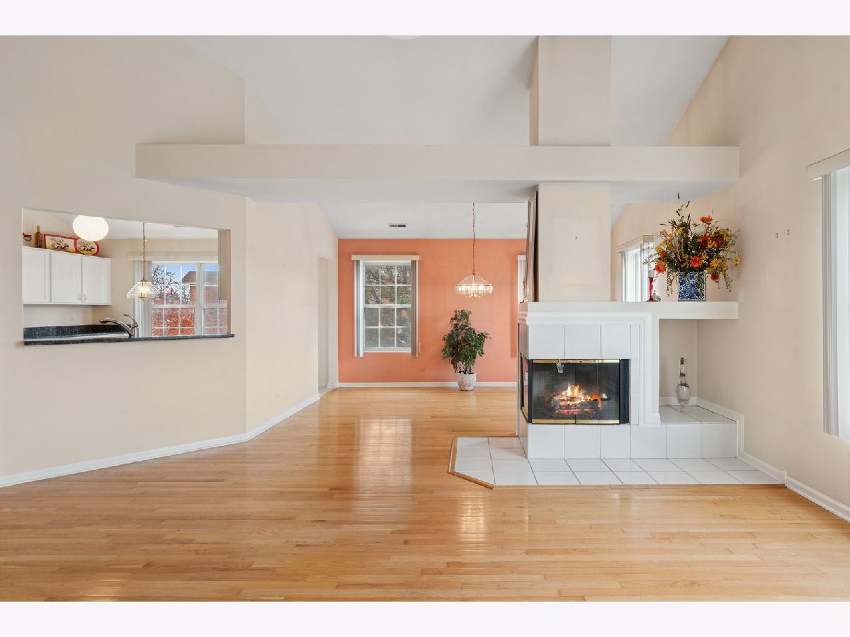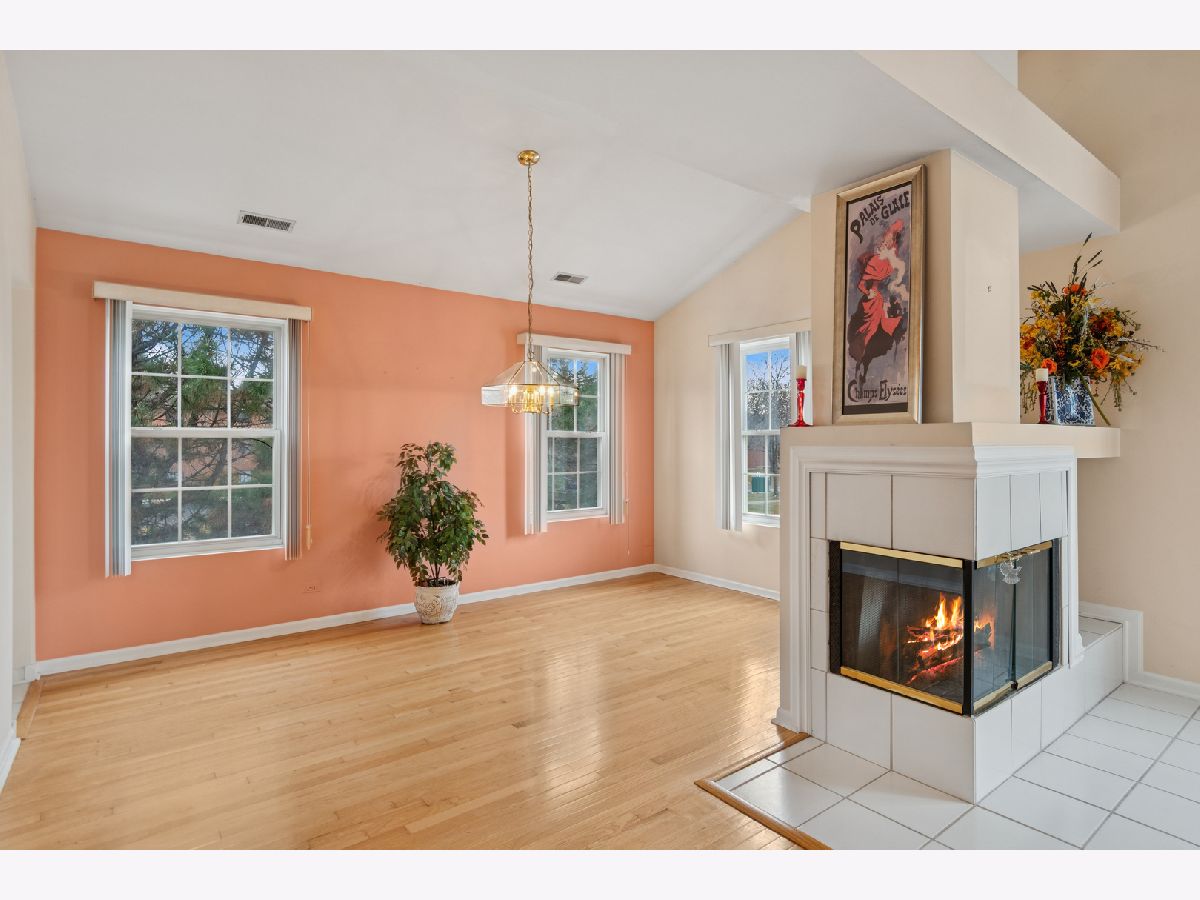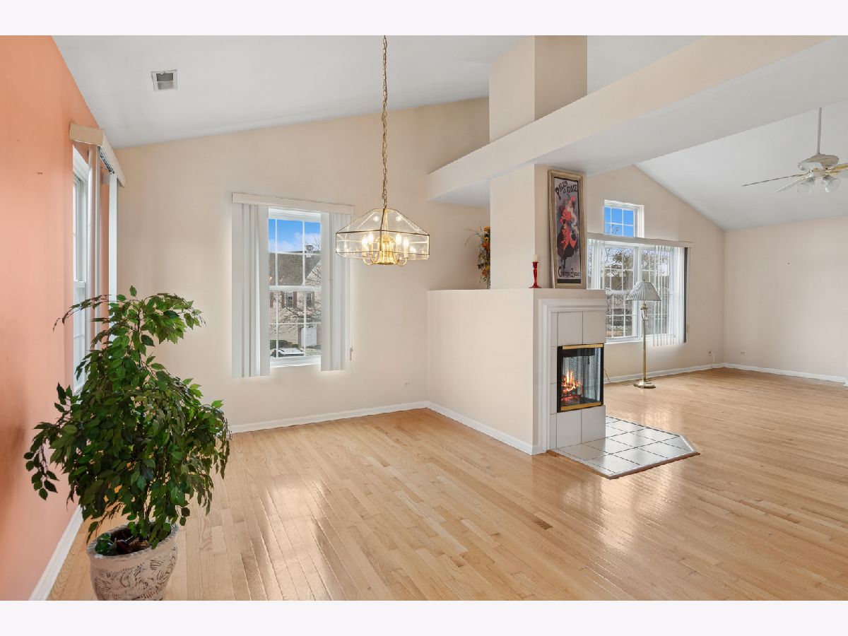 Spacious end unit offers 3 bedrooms, 2 full-bathrooms with an attached two-car garage. This updated unit is located on the second level and features a private entrance that leads to an open floor plan with vaulted ceilings. The living and dining rooms share a two-sided fireplace, adding both flair and ambiance. This area seamlessly opens to a large kitchen with white cabinets, ample counter space, a pantry, and room for a table. Throughout the home, you'll find gleaming hardwood floors and large windows that provide abundant natural light. The primary bedroom includes a private balcony overlooking professionally landscaped common grounds, and an array of colors as the foliage changes from season to season. This room also has a full en-suite bathroom with additional mirrored wall cabinets and a generous walk in closet closet. The second bedroom offers ample closet space. For convenience, the laundry/utility room with upgraded bosch washer and dryers is located in the hallway near the bedrooms, alongside a full bathroom for guests. The attached two-car garage also provides extra storage space. Large driveway can accommodate guest parking, in addition there is guest parking across from the unit. This property is in a highly sought-after location, popular with buyers due to its close proximity to the I-88 and 355 Toll roads, various shops, restaurants, schools, and parks. Residents can also enjoy nearby amenities such as Yorktown Mall, Morton Arboretum, and local walking and bike trails.