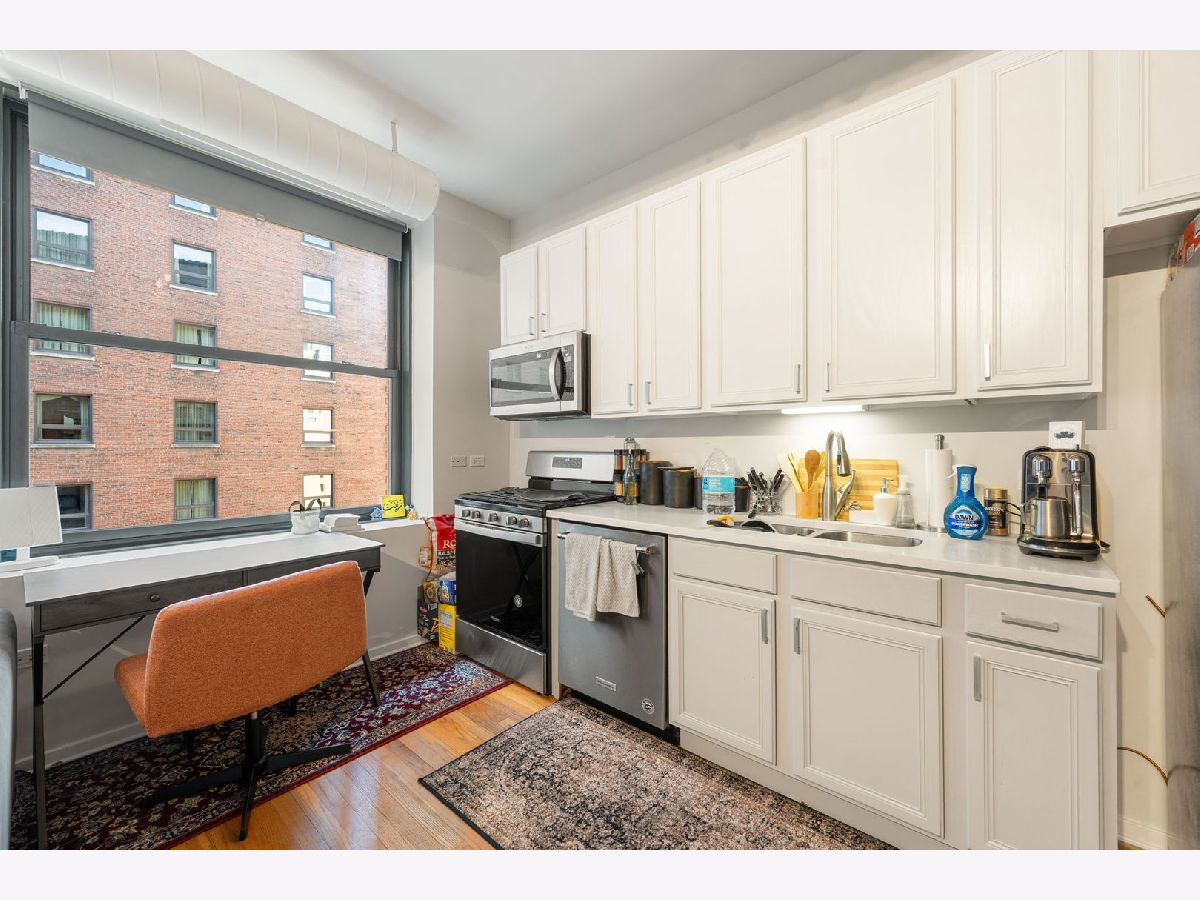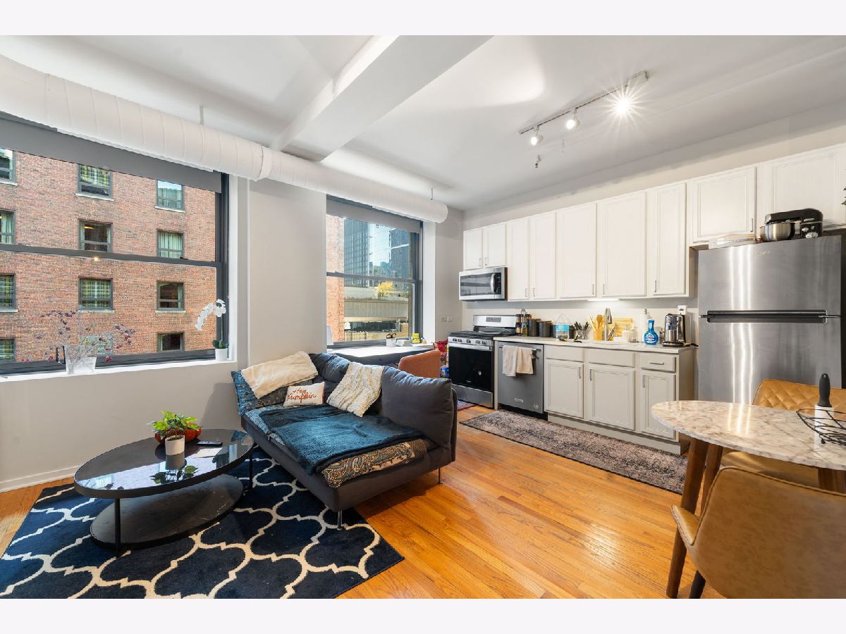 Nicely updated 1 bedroom condo in the heart of Chicago's loop! This condo features hardwood floors throughout living area, updated kitchen with contemporary cabinetry, stainless steel appliances, and in-unit washer and dryer. Only 1 block from Millennium Park and Grant Park, in the historic Mentor building. Hardwood floors, lofted ceilings, designer paint scheme and dimmable lighting! Open kitchen. Nice light with southern exposure. Common amenities include a rooftop deck, bike room, exercise room, and extra storage. Can be sold fully furnished!