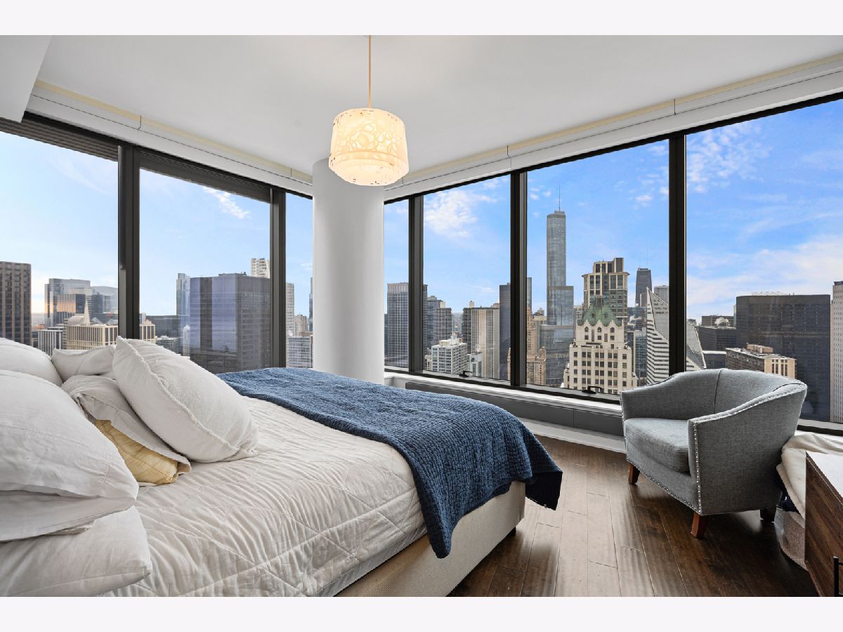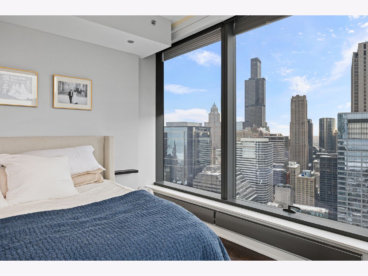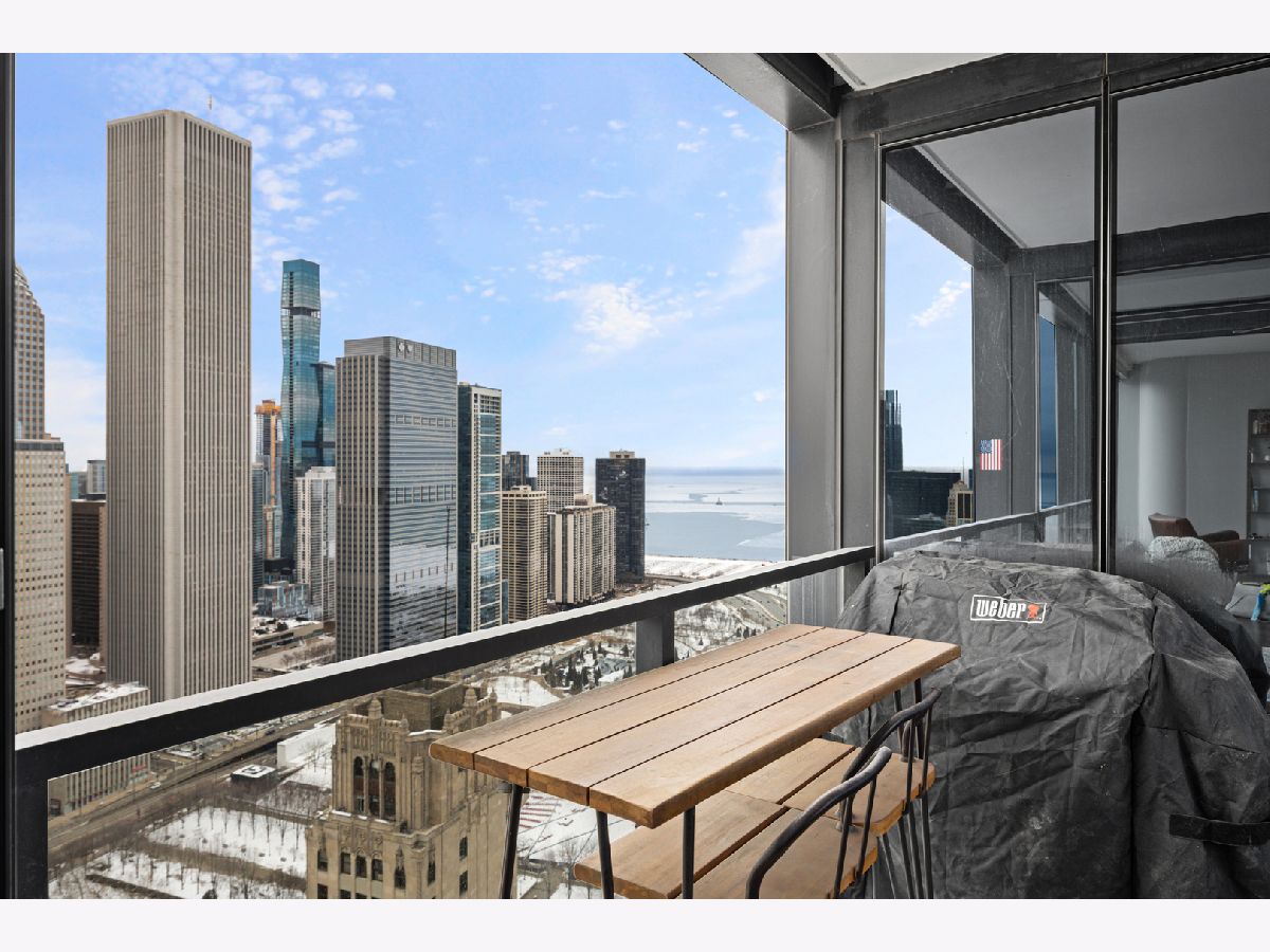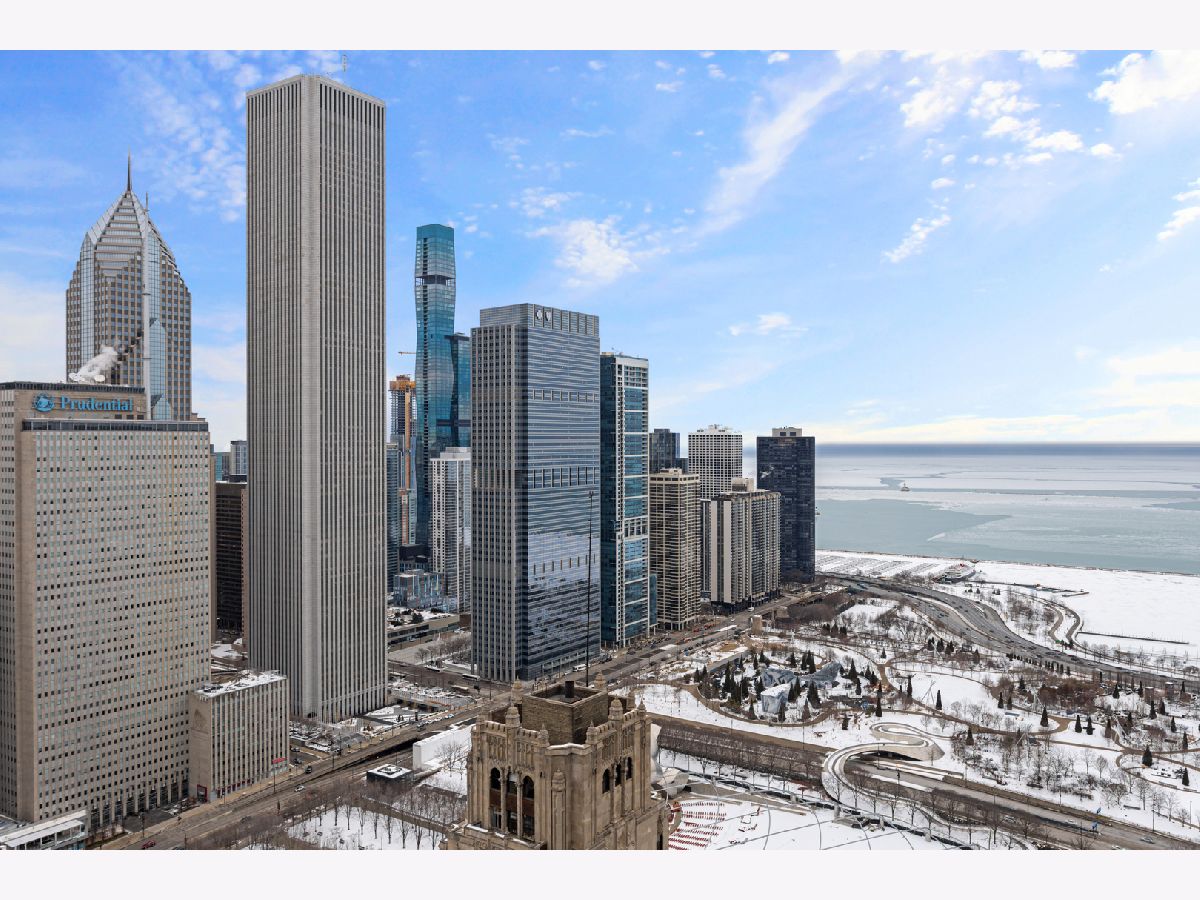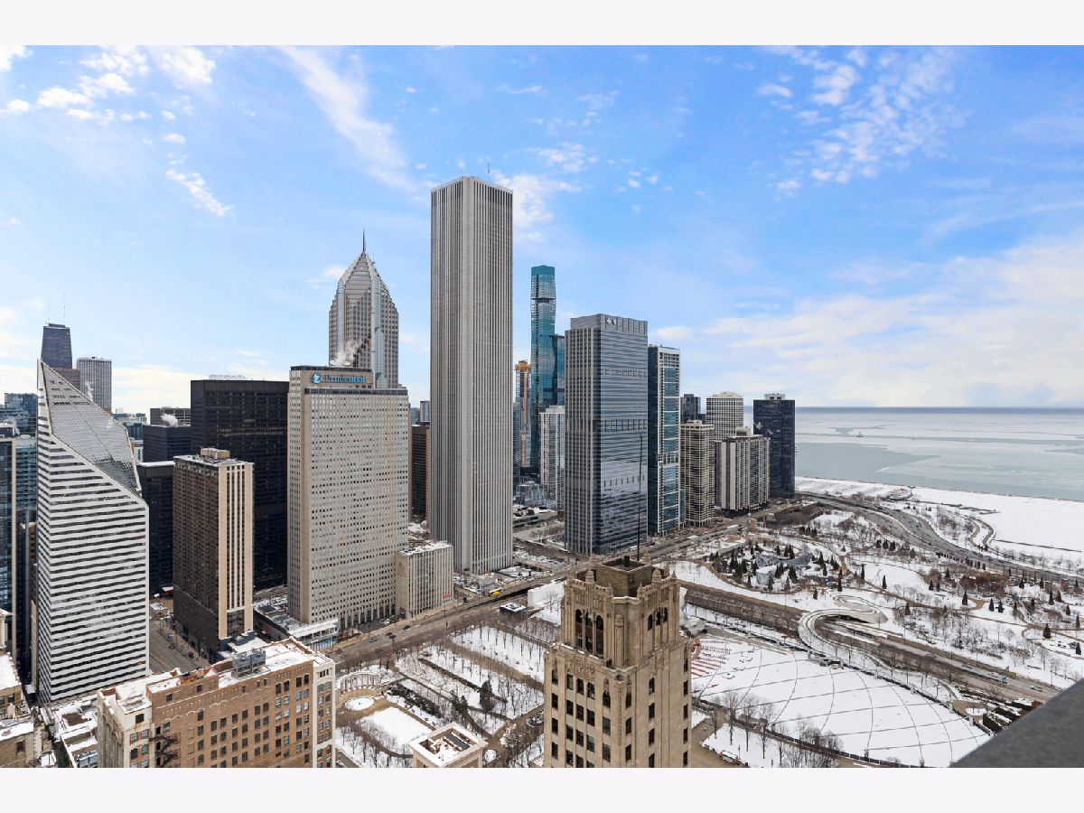 Stunning 1,600-square-foot corner residence at The Legacy, offering unobstructed views of Millennium Park, Lake Michigan, and the city skyline. This highly upgraded home features floor-to-ceiling windows with motorized shades throughout, wide-plank hardwood floors throughout, and custom lighting. The newly renovated primary bath includes beautiful 4'x4' porcelain tiles, a separate whirlpool tub, large shower and double bowl vanity. The spacious primary bedroom has incredible NW views of the city skyline and a custom walk-in closet. The chef's kitchen is equipped with Sub-Zero and Bosch stainless steel appliances. Enjoy breathtaking northeast views from the spacious private terrace.The Legacy is a full-amenity building featuring multiple sky decks, resident lounges, an indoor lap pool, whirlpool, steam rooms, fitness center, dog run, dry cleaning services, and 24-hour door staff. Residents also enjoy direct access to the University Club, one of the city's premier private clubs. Ideally located just steps from Lake Michigan, Millennium Park, and public transportation. 1 prime deeded parking spot is available for purchase.