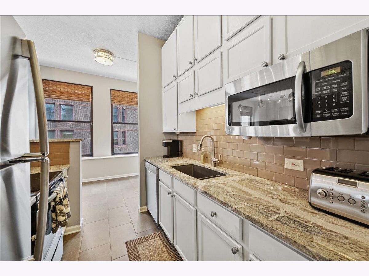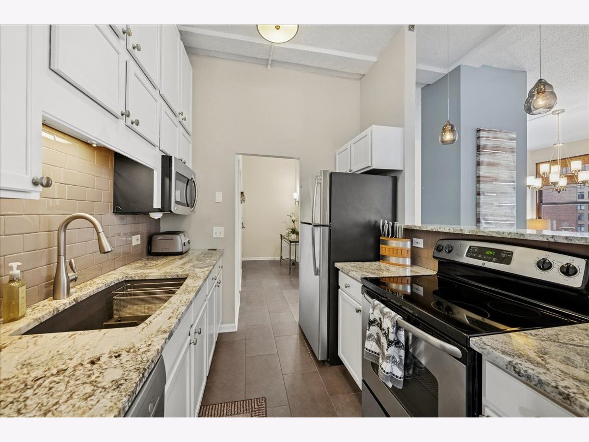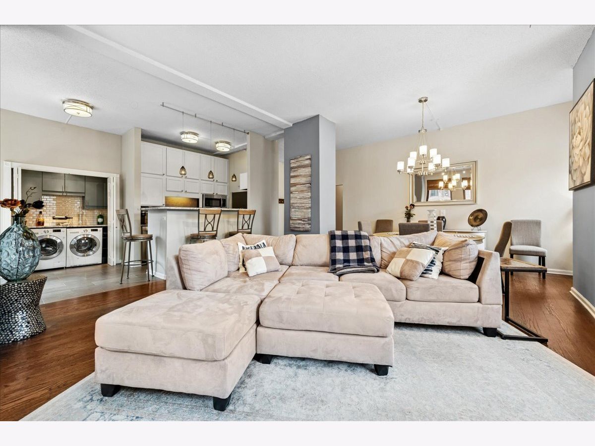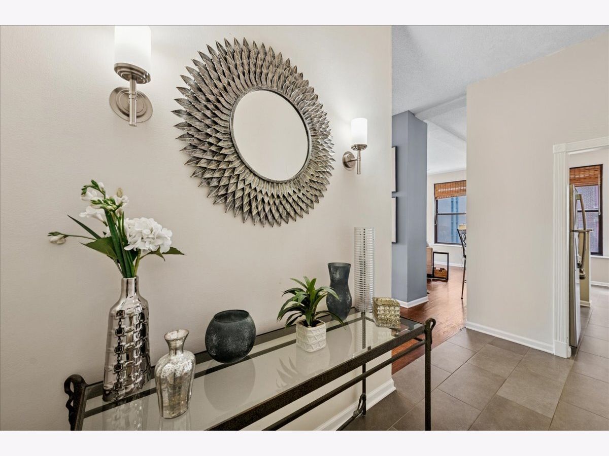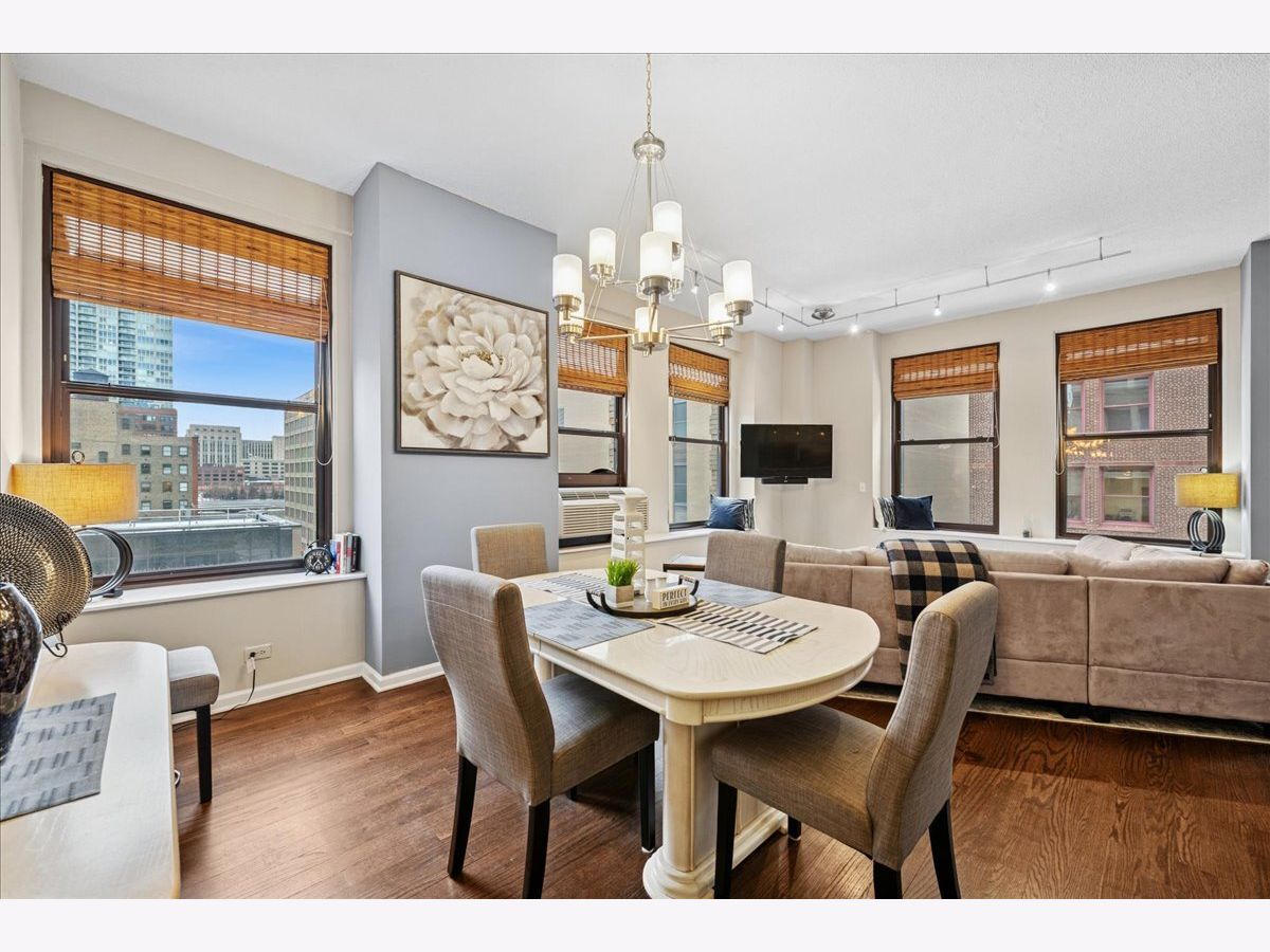 Welcome to city living at its finest! This stunning luxury condo in Printers Row is the perfect solution for Loop commuters or in-town property seekers with its bright corner layout, soaring ceilings, and open floor plan that's perfect for entertaining. This beautiful 2-bedroom, 1-bathroom gem features thoughtfully designed storage solutions throughout, plus smartly-placed in-unit laundry - side-by-side & right below the dry bar extension on the kitchen. Gorgeous dark hardwood floors throughout. You'll love the high-end custom lighting fixtures and custom window treatments that add an elevated touch. The kitchen is chef-ready with sleek 42" white cabinets, stainless steel appliances, and granite countertops. Both bedrooms offer true privacy with enclosed layouts, and the spacious primary bedroom features a custom organized closet system with premium sliding doors. Plus, there's an extra-large walk-in closet with additional organizers for all your storage needs-there is room for everything in here! The Transportation Building boasts some lovely amenities: 24-hour door staff, fitness center, bike storage, coin laundry, and convenient Tide dry cleaning lockers right onsite. There are plenty of parking options nearby, and you'll be steps from public transit (plus a stone's throw away from restaurants, parks, museums and the River Walk). 2-bedroom units in this building don't hit the market very often - schedule your showing before this one is gone!