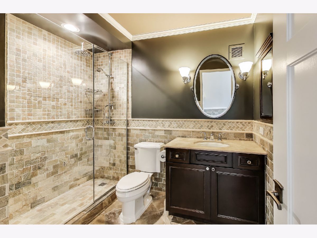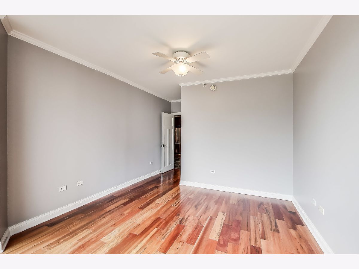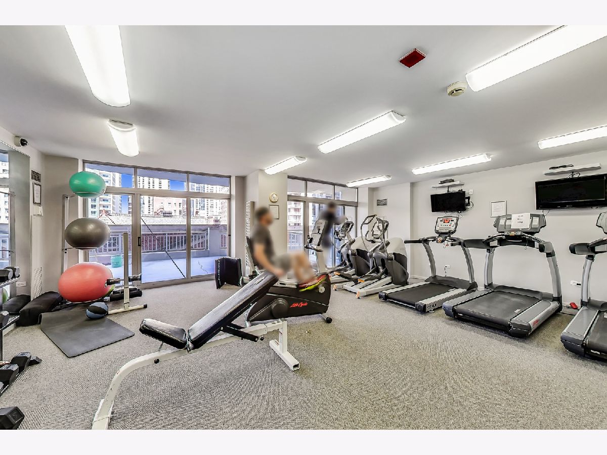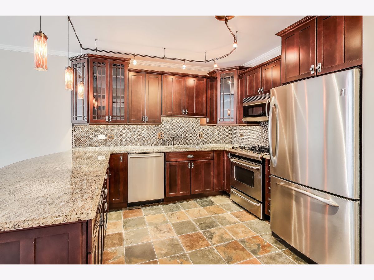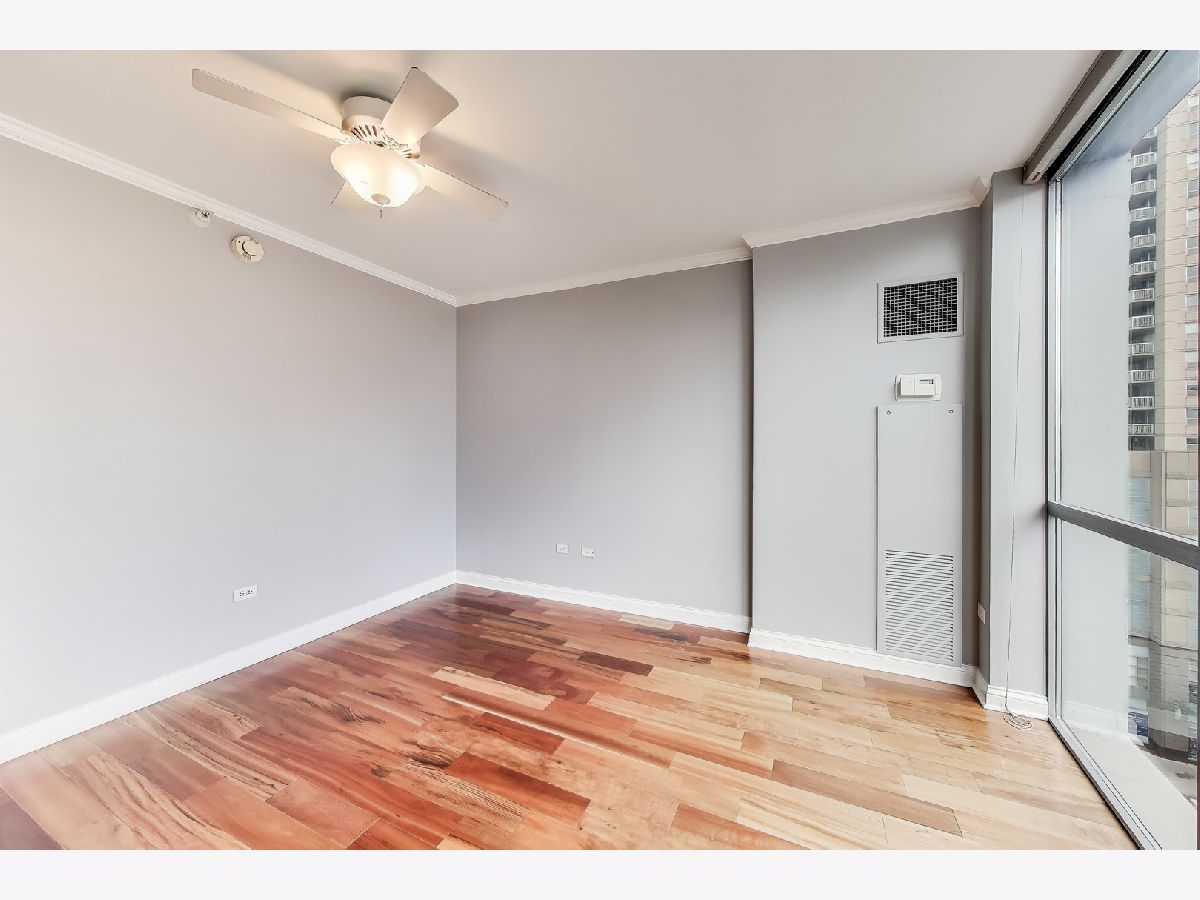 Welcome to this spacious one bed, one bath condo in the heart of River North, offering a private balcony with sweeping skyline views, modern upgrades, and a layout that truly lives large. This thoughtfully designed home offers an open-concept layout with slate tile flooring, tall ceilings, and floor-to-ceiling windows that fill the space with natural light. The modern kitchen features rich cherry cabinetry, granite countertops, a glass tile backsplash, stainless steel appliances, and a gas range with built-in microwave. A large breakfast bar with pendant lighting opens to the generous living and dining area-ideal for entertaining or everyday living. The king-sized bedroom offers hardwood floors, expansive windows, and a fully customized walk-in closet. The updated bath is finished with natural stone tile, a walk-in glass shower, and a clean, contemporary vanity light. Additional highlights include a full-size in-unit laundry closet, central air, and abundant storage with custom organizers throughout. Full-amenity building with 24-hour door staff, fitness center, on-site dry cleaners, and restaurants. Monthly assessments include cable, high-speed internet, and more. Located just steps from shopping, dining, the CTA Red Line, and everything River North has to offer. Heated garage parking available for an additional $20K.