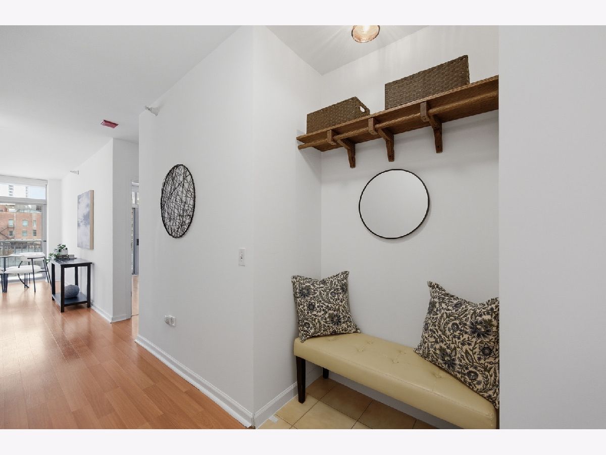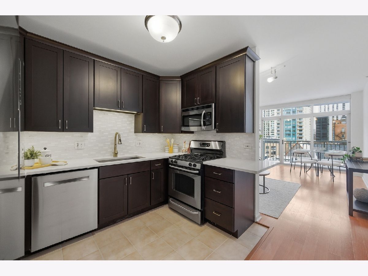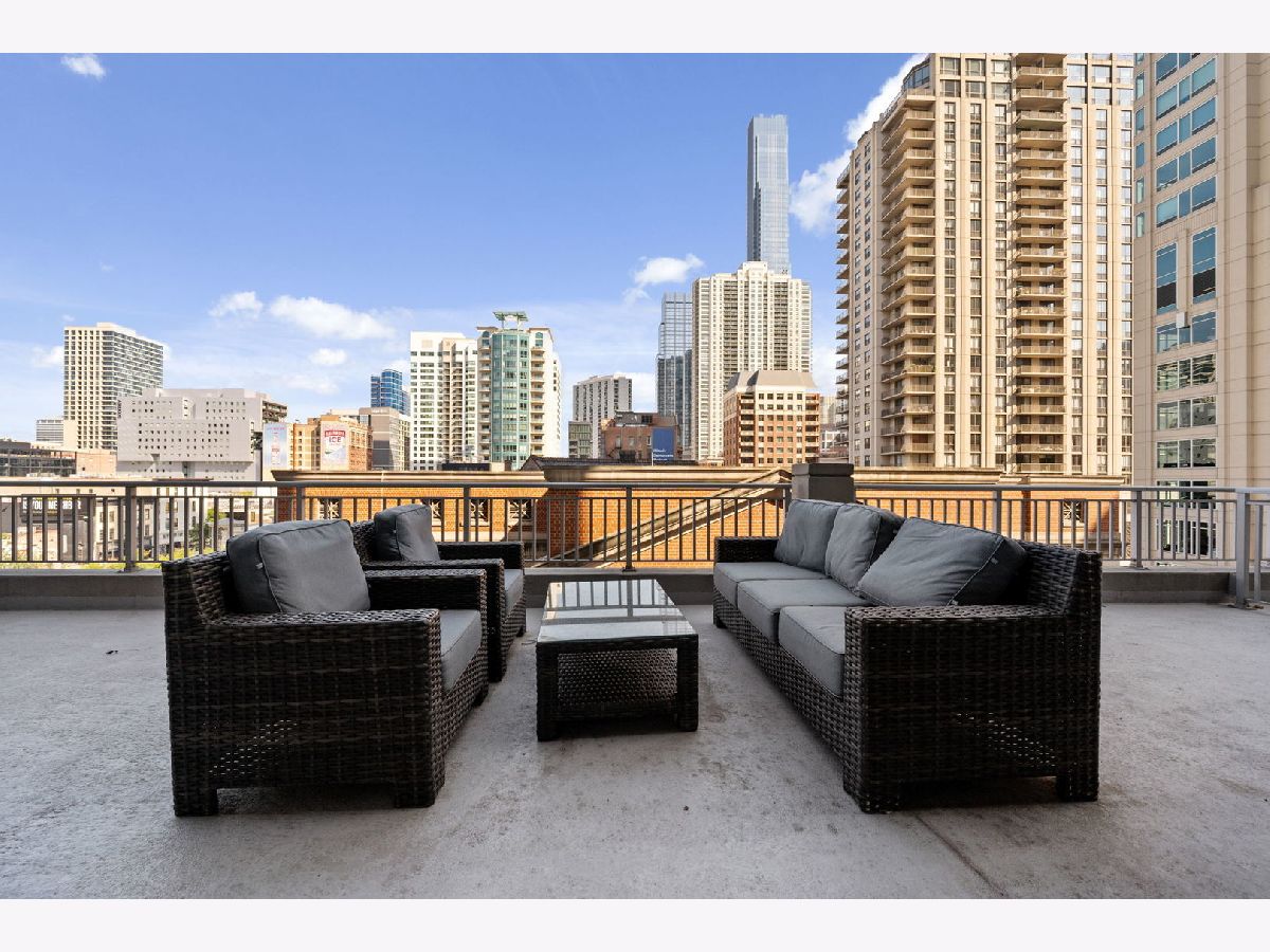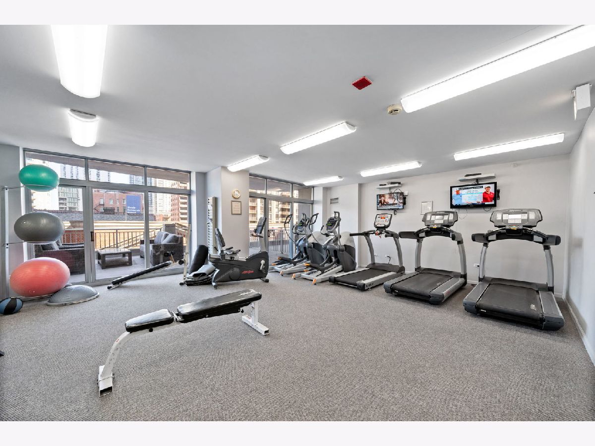 Welcome to this beautifully maintained 1-bedroom plus den, 1 1/2 - bath home in the heart of River North. An open-concept floor plan is enhanced by floor-to-ceiling windows that span the length of the residence, filling the space with natural light. Entertain on the extra-wide balcony-accessible from both the living room and primary suite-and enjoy sweeping north and west city views. The home offers a generously sized living and dining area, a comfortable primary suite, and a versatile den ideal for a home office or guest space. The updated kitchen features extensive cabinetry, a stylish backsplash, stainless steel appliances, and a newer refrigerator. The primary bath boasts a separate shower and tub, a newer vanity, mirror and light fixture as well as a linen closet. Roller shades and elegant drapery add warmth and sophistication throughout. Additional highlights include in-unit laundry, one garage parking space, and extra storage. This full-amenity building offers 24-hour door staff, a fitness center, sundeck, party room/hospitality suite, and on-site management. Monthly assessments include heat, air conditioning, water, cable, Wi-Fi, common insurance, door staff, exercise facilities, exterior maintenance, scavenger service, snow removal and parking. Ideally located with easy access to the Magnificent Mile, world-class shopping, dining, nightlife, and CTA transportation.