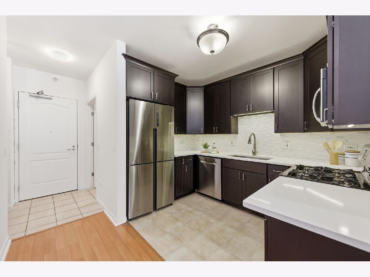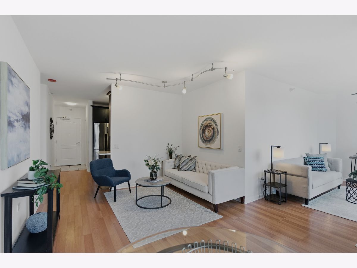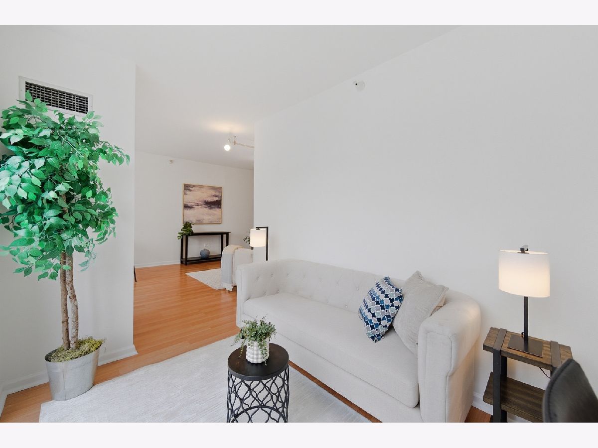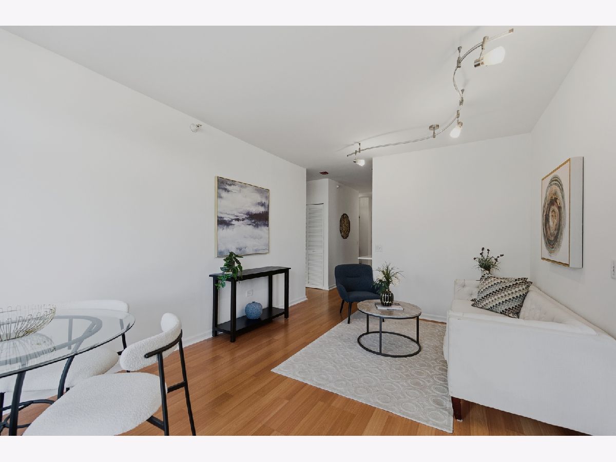 Welcome to this beautifully maintained 1-bedroom plus den, 1 1/2 - bath home in the heart of River North. An open-concept floor plan is enhanced by floor-to-ceiling windows that span the length of the residence, filling the space with natural light. Entertain on the extra-wide balcony-accessible from both the living room and primary suite-and enjoy sweeping north and west city views. The home offers a generously sized living and dining area, a comfortable primary suite, and a versatile den ideal for a home office or guest space. The updated kitchen features extensive cabinetry, a stylish backsplash, stainless steel appliances, and a newer refrigerator. The primary bath boasts a separate shower and tub, a newer vanity, mirror and light fixture as well as a linen closet. Roller shades and elegant drapery add warmth and sophistication throughout. Additional highlights include in-unit laundry, one garage parking space, and extra storage. This full-amenity building offers 24-hour door staff, a fitness center, sundeck, party room/hospitality suite, and on-site management. Monthly assessments include heat, air conditioning, water, cable, Wi-Fi, common insurance, door staff, exercise facilities, exterior maintenance, scavenger service, snow removal and parking. Ideally located with easy access to the Magnificent Mile, world-class shopping, dining, nightlife, and CTA transportation.
