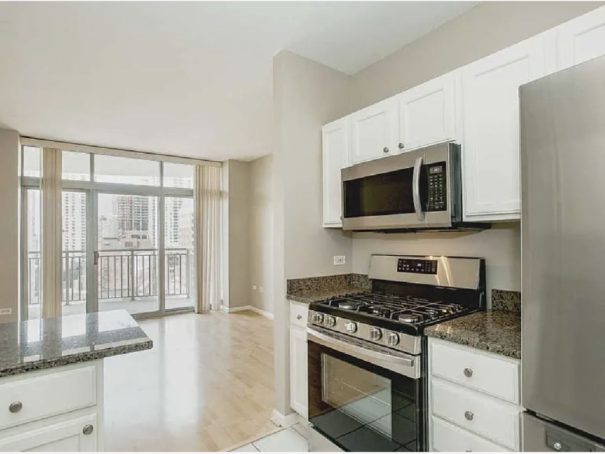 Welcome to this spacious, beautifully updated studio in the heart of River North. Thoughtfully designed with a defined bedroom nook, this home features hardwood floors throughout, an open-concept layout, and floor-to-ceiling windows that flood the space with natural light. The modern kitchen boasts stainless steel appliances, granite countertops, and custom cabinetry, while the in-unit washer/dryer and ample closet space with an Alfa system add everyday convenience. Step out onto your private balcony to enjoy city views, or take advantage of full-service high-rise amenities including a 24-hour door staff, fitness center, sundeck, and bike room. Gas and basic cable are included. Unbeatable location-just steps from River North's top restaurants, nightlife, shopping, and public transportation. Move-in ready and perfect for city living!