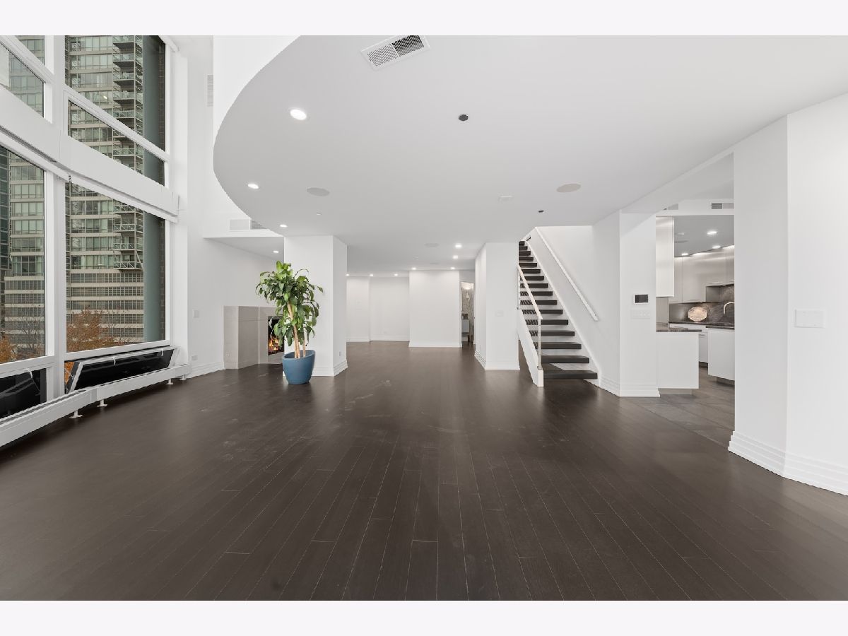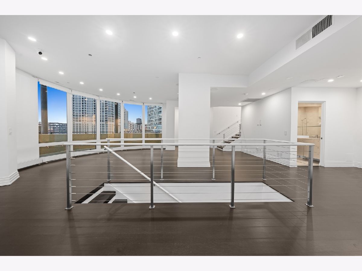 This three-story penthouse at 600 N Kingsbury is a rare opportunity to own one of River North's most dramatic and spacious residences. With four bedrooms, four-and-a-half bathrooms, a private four-car attached garage, and nearly 1,800 square feet of exclusive outdoor space, this home blends the scale of a single-family residence with the convenience of full-amenity condominium living. Inside, 20-foot floor-to-ceiling windows frame uninterrupted views of the Chicago River, city skyline, and striking western sunsets. From the main living area to the upper levels, the natural light and panoramic outlooks create an atmosphere that feels both expansive and intimate. The private outdoor terrace extends the living space even further-ideal for entertaining, lounging, or simply taking in the skyline. The open-concept main level is designed for seamless flow, chef's kitchen with high-end appliances, abundant counter space, and a large peninsula suited for everyday meals or large-scale hosting. Finishes throughout the home reflect thoughtful quality, from the hardwood floors to the custom cabinetry and lighting. Residents here enjoy full access to building amenities including 24-hour door staff, an on-site exercise room, and an outdoor pool set against river and city views. The location offers quick access to River North dining, Fulton Market, East Bank Club, grocery options, transit, and expressways-placing you minutes from the best of downtown. A penthouse of this scale, design, and outdoor space is rarely available. This is a city home designed for those who want space, light, privacy, and a front-row seat to Chicago's skyline.