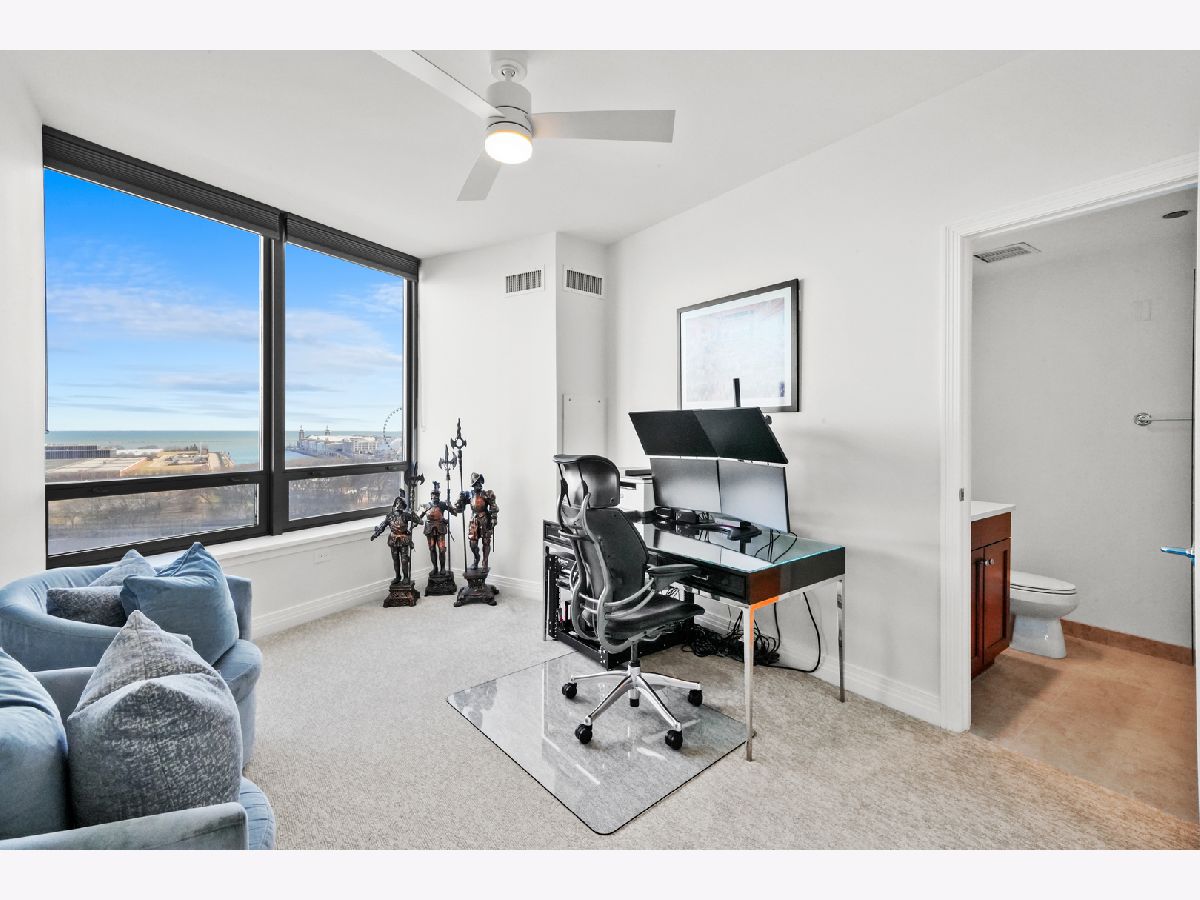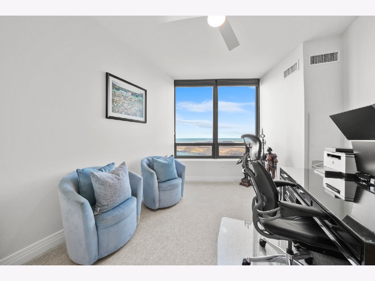 Experience Spectacular Lakefront Living at 600 N. Lake Shore Drive Discover over 2,500 sq. ft. of unobstructed lake views from this stunning 11th-floor northeast corner residence-the largest three-bedroom layout in the prestigious north tower at 600 Lake Shore Drive in Streeterville. As you step inside, you're immediately greeted by breathtaking, sweeping views of Lake Michigan from every window. This highly sought-after split-bedroom floor plan offers the perfect balance of formal and informal living with abundant space and flexibility. The Chef's kitchen features granite countertops, a custom backsplash, upgraded stainless steel appliances, and ample cabinetry. The oversized breakfast bar comfortably seats five, complemented by custom overhead lighting, making it an ideal space for entertaining. Cooking with such spectacular views is a game-changer! The open-concept living, dining, and kitchen areas flow effortlessly onto a large inset balcony, perfect for enjoying evening cocktails while soaking in the incredible scenery. Adjacent to the main living space, a bonus area overlooks the lake and provides additional seating, complete with a dry bar and beverage refrigerator for effortless entertaining. The luxurious primary suite is a haven of comfort, offering lake views, plush custom carpeting, and two spacious walk-in closets with custom built-ins. The spa-inspired ensuite bath features double marble vanities, a tub, and a separate shower for a true retreat experience. The second bedroom offers stunning north-facing views, custom carpeting, a custom walk-in closet, and private balcony access. The third bedroom, with its serene lake views, is currently configured as a home office but easily accommodates a queen bed and dresser. It includes an ensuite bathroom, making it perfect for guests. Additional highlights include a conveniently located powder room for guests, a spacious laundry room with a full-size washer and dryer, and extra storage space. One prime third-floor parking spot is available for $50,000, and the residence includes a full-cage storage unit. 600 N. Lake Shore Drive is a full-amenity LUXURY building featuring a beautifully designed lobby, 24-hour attentive door staff, on-site management, and an updated fitness center with state-of-the-art equipment. The building also offers two rooftop lounges and party rooms with panoramic views of the lake and city skyline. Situated in a quiet, premier Streeterville location, you're just steps away from Ohio Street Beach, the Lakefront Trail, Navy Pier, Michigan Avenue, and some of Chicago's finest dining and shopping destinations. Watch the annual Air and Water Show from your private balcony or enjoy fireworks every Monday and Wednesday during the summer months. Don't miss this rare opportunity to live in one of Streeterville's most coveted buildings. A dream home with unmatched value, this residence offers the ultimate in lakefront living. Explore the property in 3D! Click the 3D button to take a virtual tour and walk through every detail.