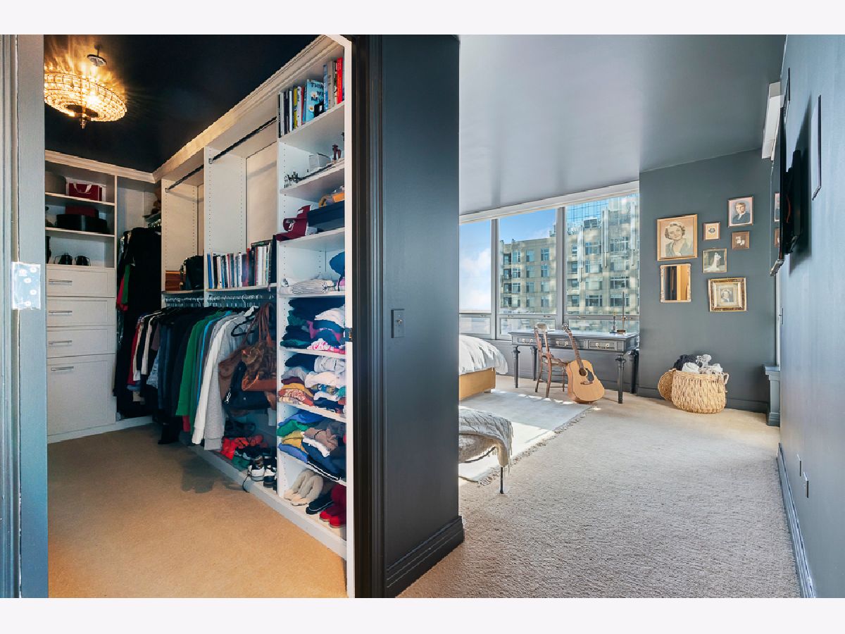 Enjoy dramatic lake, Navy Pier, and city views from this spacious 2-bedroom, 2 1/2 bath southwest corner residence at 600 N Lake Shore Drive. One garage parking space on the third floor with dedicated EV charger available for $50,000. Large windows welcome an abundance of natural light and feature electronic shades in every room. The large open living/dining area offers expansive southwest views, natural hardwood floors, fireplace, and private balcony. The highly upgraded kitchen features high-end appliances including a Subzero fridge, Bosch dishwasher, Wolf double oven, 42" cabinetry, granite countertops, and a west facing window showcasing stunning city views. The oversized primary suite offers lake and city views, a professionally installed walk-in closet, balcony access, and an ensuite bath with double bowl vanity, separate tub/shower, and all marble surround. A graciously sized second bedroom has sweeping city views and an ensuite bath. Separate laundry room with brand new LG washer and dryer with cabinetry storage. 600 N Lake Shore Drive features an impressive lobby, private covered driveway, 24-hour door staff, 24-hour maintenance, on-site management, valet cleaners, fully equipped business center, fitness center with top-of-the-line equipment and yoga room, golf simulator, 10th floor garden terrace with sculptures, 2 rooftop terraces with unobstructed lake and city views, 2 community rooms with kitchens, patio furniture, outdoor grills, fire pits, bike room, car wash area, bike room, optional in-unit maintenance service, and storage. Steps from Ohio Street Beach, the lakefront bike path, Navy Pier, Northwestern University and Hospital, 5-star dining, world class shopping, and endless entertainment options.