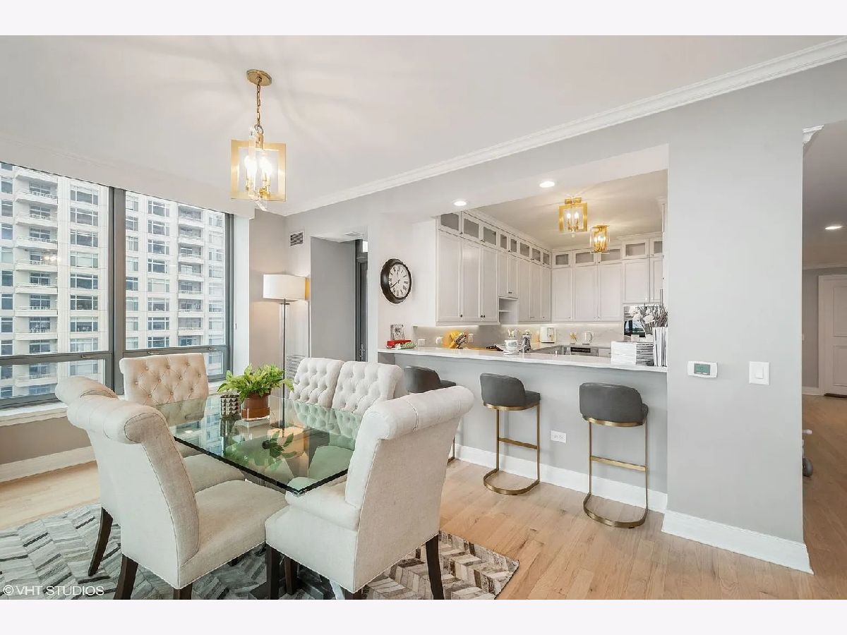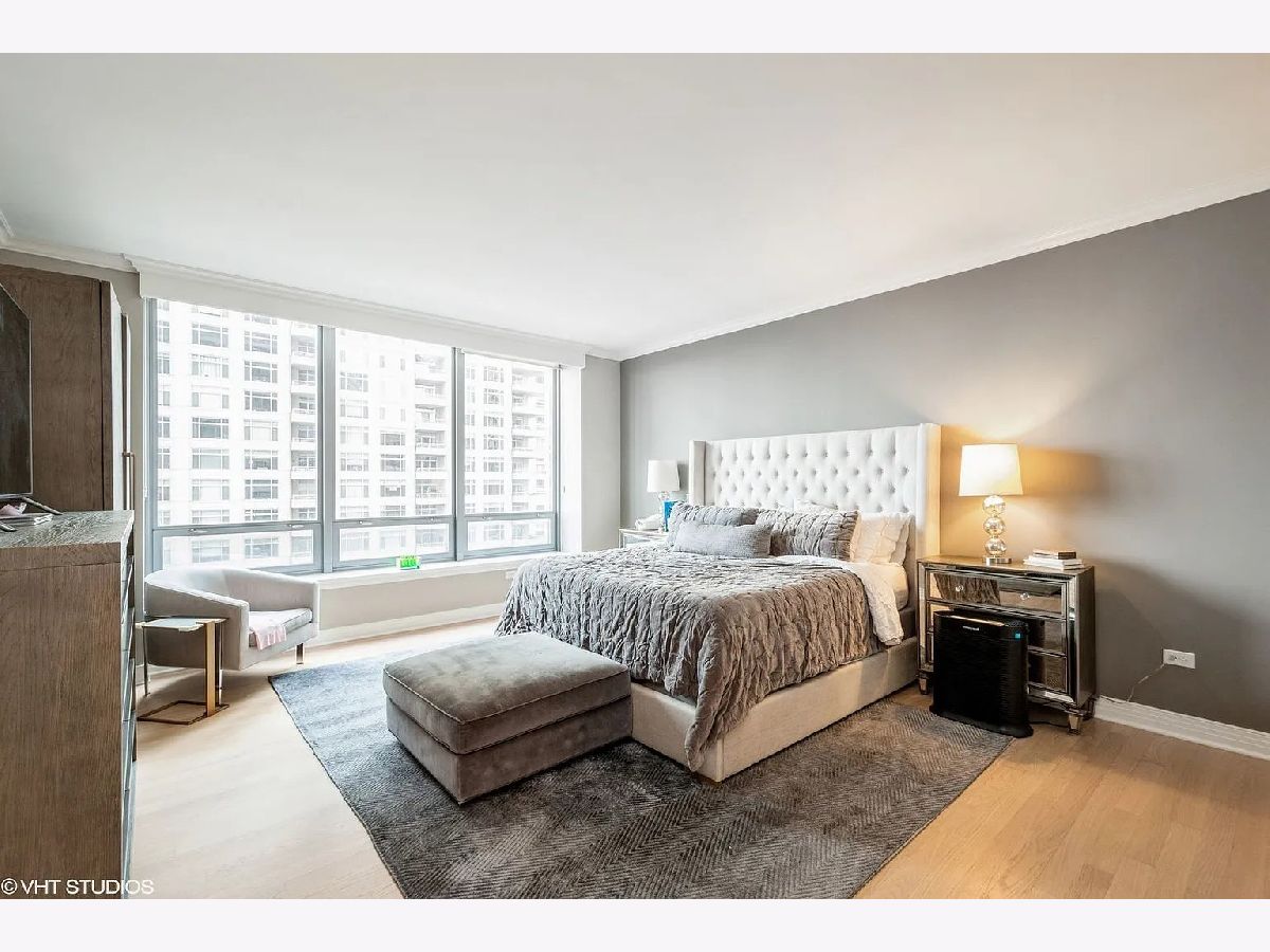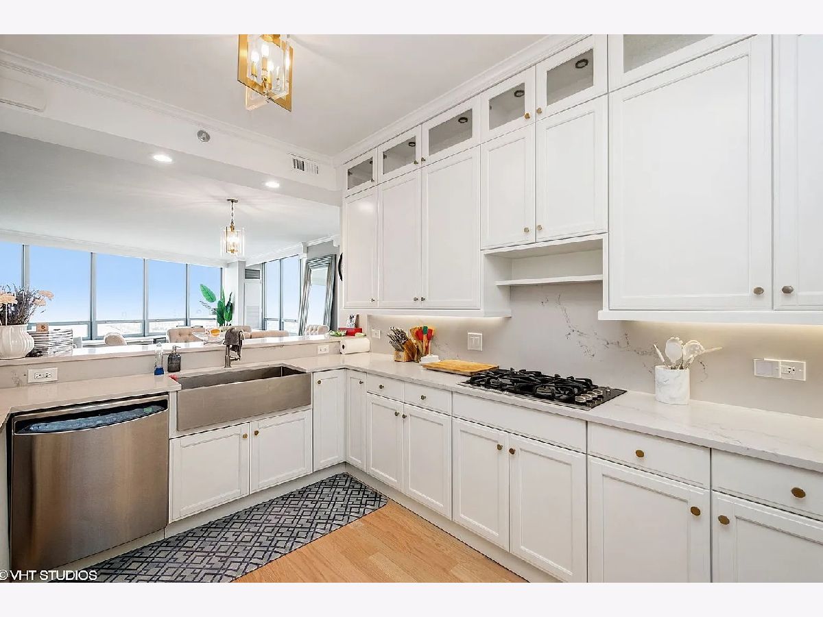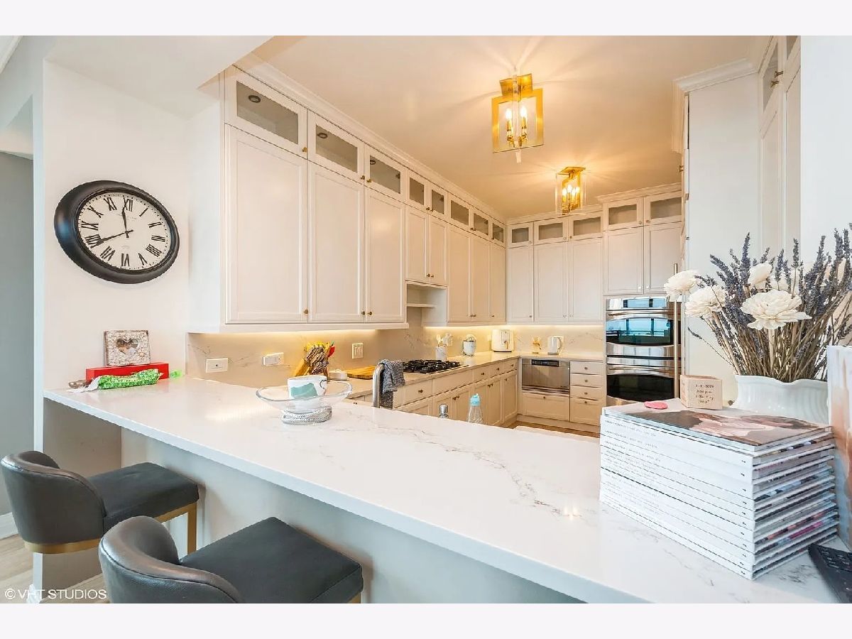 Refined quality and distinctive style only begin to describe this 3-bedroom luxury residence. From the moment you step inside, you'll fall for the rich and tasteful finishes starting in the foyer with the elegant overhead designer light fixture nestled in the trey ceiling. Custom millwork throughout includes crown molding, solid core paneled doors, window seats, white kitchen cabinetry throughout, and an amazing butler's pantry. Butler's pantry is ebony wood/glass with imported backsplash, custom hammered sink, and wine cooler. The gourmet kitchen boasts Subzero refrigerator, Dacor microwave, Bosch dishwasher, Wolf double oven, new Caesarstone Quartz countertops with full backsplash, wood flooring, unique ice maker, single bowl sink, custom lighting, custom pulls, custom cabinets to the ceiling with glass inserts, and breakfast bar seating for four. The living/dining area features unobstructed stunning lake views, custom-designed window seating, refinished hardwood floors, and access to the private south facing balcony. Escape to serenity in the master suite with views, wood floors, and two large walk-in closets. Master bath is spa-like with white cabinetry, custom lighting, glass-surround shower, and soaking tub. Second bed has Navy Pier views, en-suite bath with white cabinetry, refinished hardwood floors, and direct balcony access. The third bedroom again offers en-suite bath, white cabinetry, refinished hardwood floors, unobstructed Ohio Street beach, lake, and Navy Pier views. 600 Lake Shore Drive features a luxurious lobby to greet guests, enormous private covered driveway, 24-hour door staff, 24-hour maintenance, on-site management, valet cleaners, fully equipped business center, fabulous fitness center open 24/7 with top-of-the-line equipment and yoga room, 2 recently remodeled roof-top community rooms with floor-to-ceiling windows including full kitchens, and terraces with unobstructed lake and city views, patio furniture, fire pits, outdoor grills with dining and sunbathing areas, separate storage, and bike room. Steps from Ohio Street Beach, the lakefront bike path, Navy Pier, Northwestern University and Hospital, award-winning restaurants, and The Magnificent Mile shopping district.