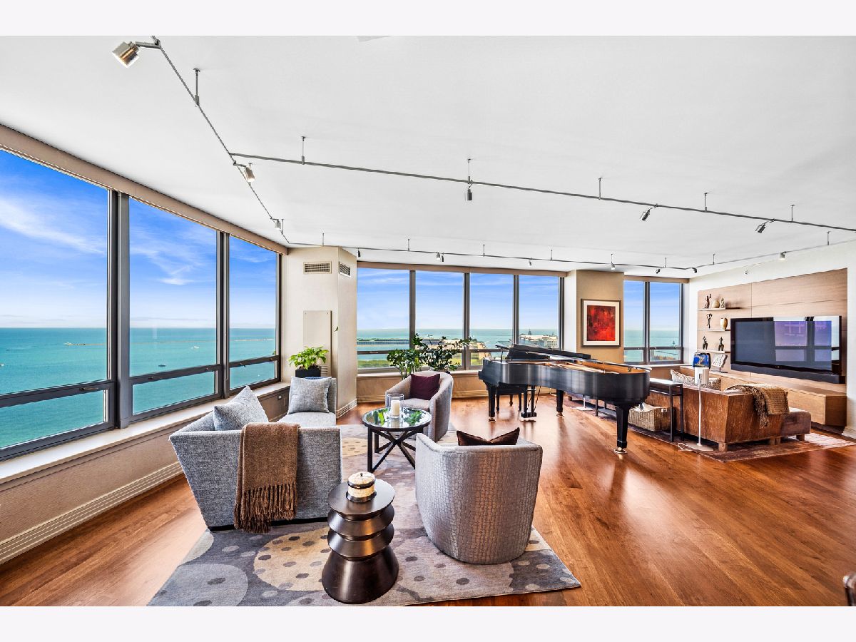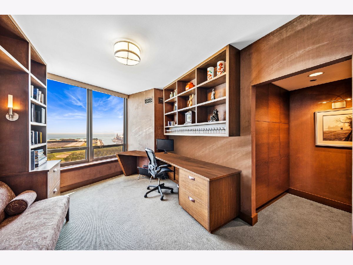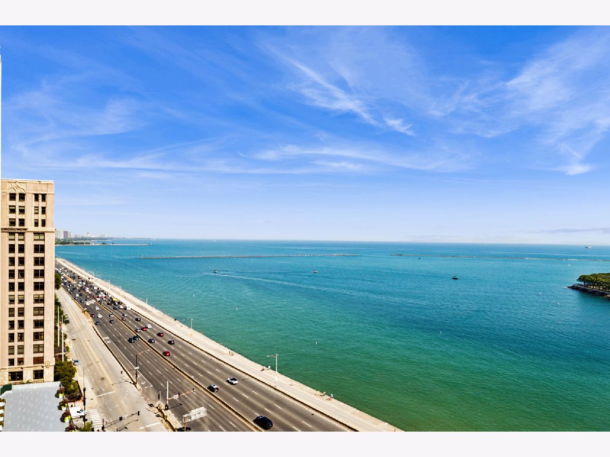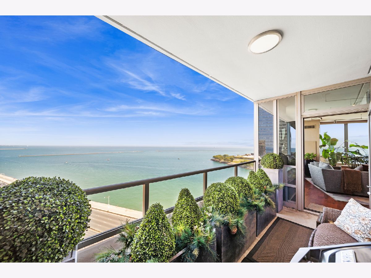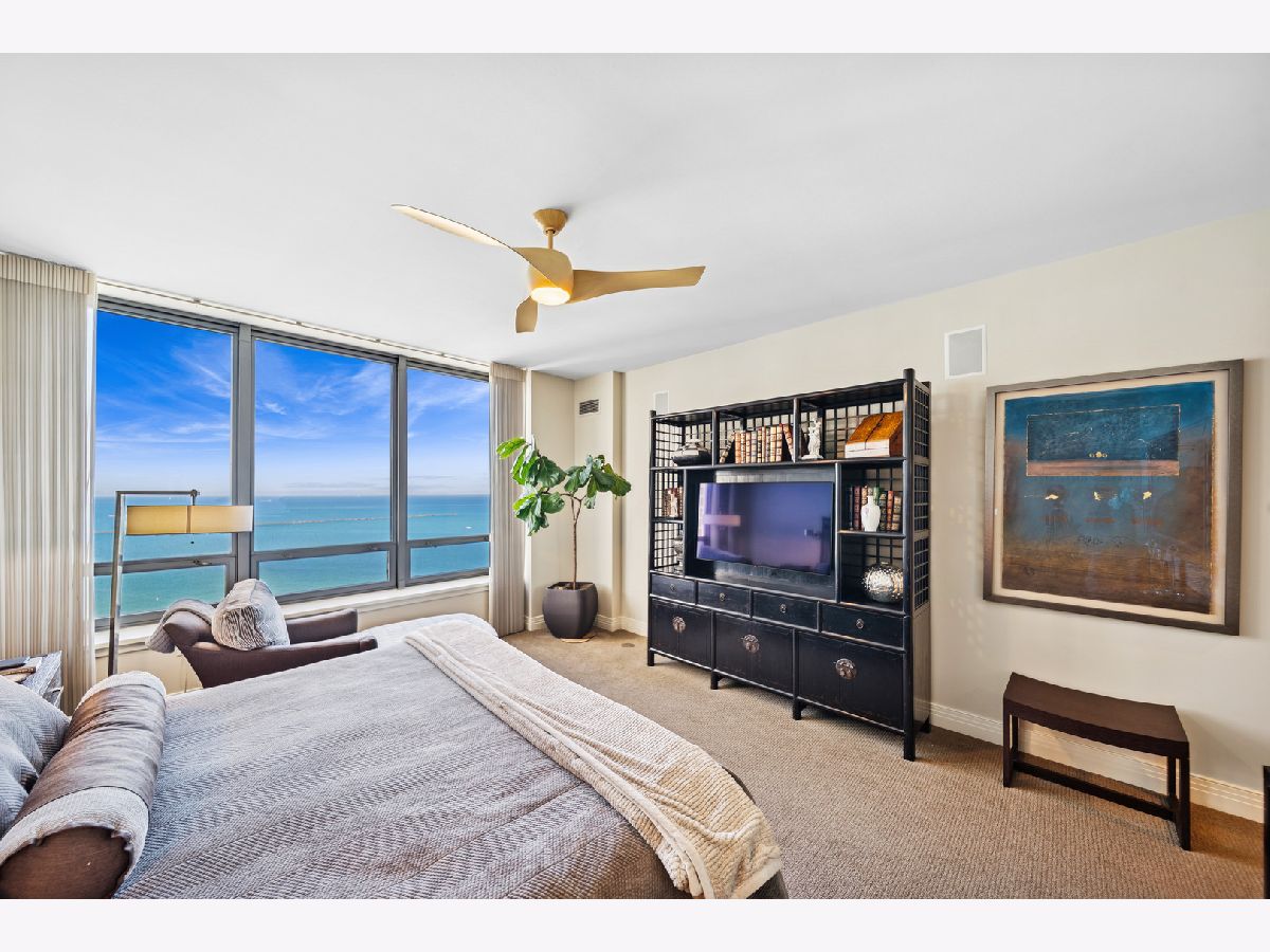 Spectacular northeast water views in the largest North Tower three-bedroom home at 600 Lake Shore! Enter the dramatic foyer with elegant tray ceiling, Tuscan style tile floor, and custom lighting which instantly reveals sweeping views of the lake, Ohio Street Beach, Olive Park and Navy Pier from every window. Upon entry, the soothing earth tone color palette blends seamlessly with the blue hues of the lake views. The gourmet kitchen opens to the living/dining area with Tuscan style tile floor, rich wood cabinetry with custom pulls, undermount lighting, full tile backsplash, sleek dark granite counters, filtered water dispenser, and premium stainless steel appliances including luxury brands Sub-Zero fridge, Bosch dishwasher, Wolf double oven, and Dacor microwave. The oversized breakfast bar easily accommodates five full size seats. Entertain with ease with the open living/dining/kitchen floor plan with access to a large inset balcony perfect for enjoying morning coffee or cocktails with the backdrop of magnificent Lake Michigan. Designer touches include custom window coverings and custom lighting throughout. The exquisite cherry wood flooring, with in-floor hidden outlets, extends into the living space overlooking the lake allowing for an additional seating area configured with a built-in electronics cabinet and shelving. The lavish master suite also offers lake views, custom carpet, custom ceiling fan, and features two large walk-in closets with built-ins. The ensuite private master bath includes double granite vanities with custom pulls, custom mirror with attached lighting, custom wall coverings, soaking tub, and walk-in waterfall marble shower. The second bedroom also features premium carpet and north views, along with an expanded walk-in closet and private balcony access. Located conveniently across the hall, the second bath was completely gutted and refinished, now featuring custom vanity and sleek Robern mirror, along with a walk-in shower with floor to ceiling marble. The third bedroom has been completely redesigned into an inspiring office/den space with lake views including custom finishes floor to ceiling featuring built in desk, shelving, and cabinets with integrated outlets and lighting. The stunning powder room is conveniently located off the foyer for guests which features a custom vanity, designer mirror, and custom wall coverings. The laundry room is located off of the kitchen and accommodates a full-size side-by-side washer and dryer with on-wall storage shelves. With meticulous interior design in the finishes of this home including whole home integrated audio, in-wall speakers, and accent lighting for artwork, it invites luxury, comfort and relaxation at the best address on the lake, 600 LSD! Seller prefers to close at the end of April.