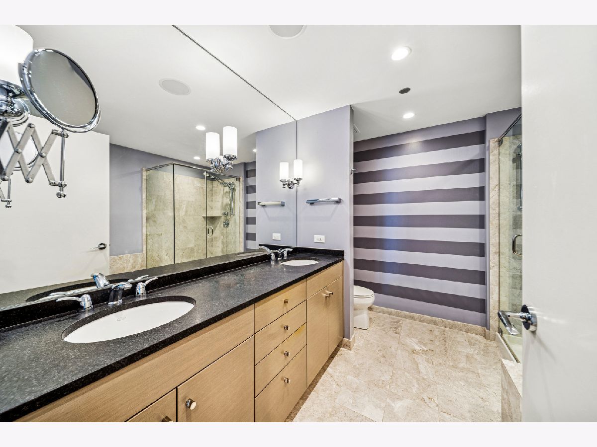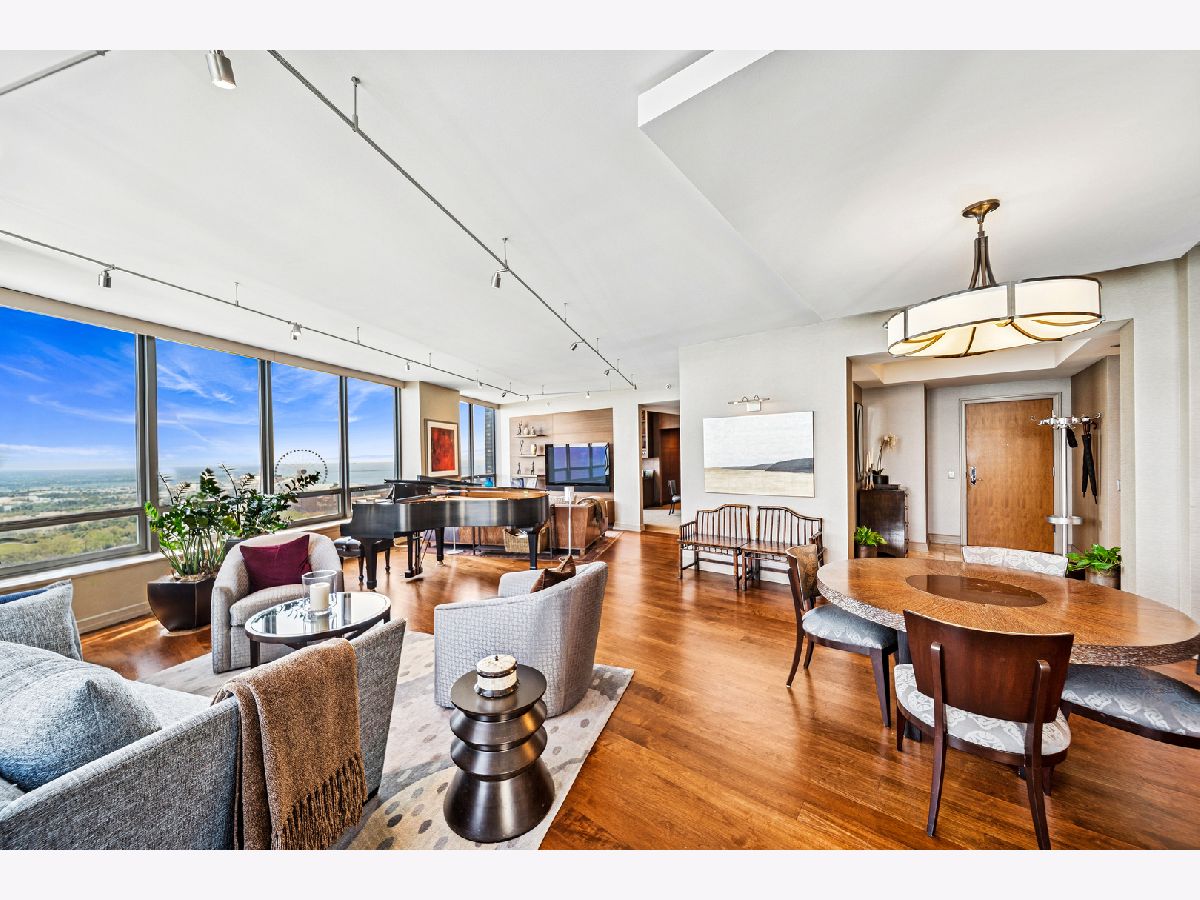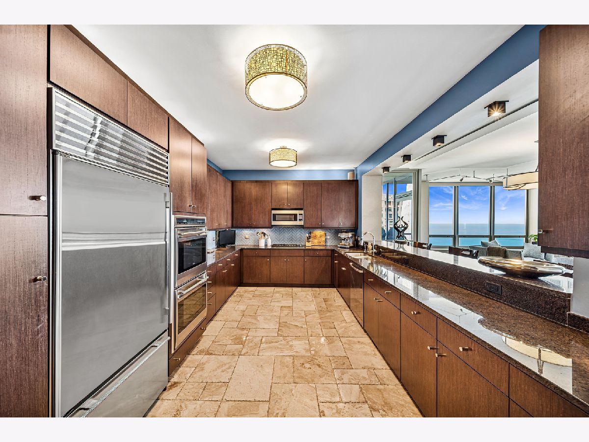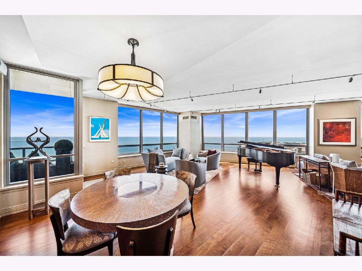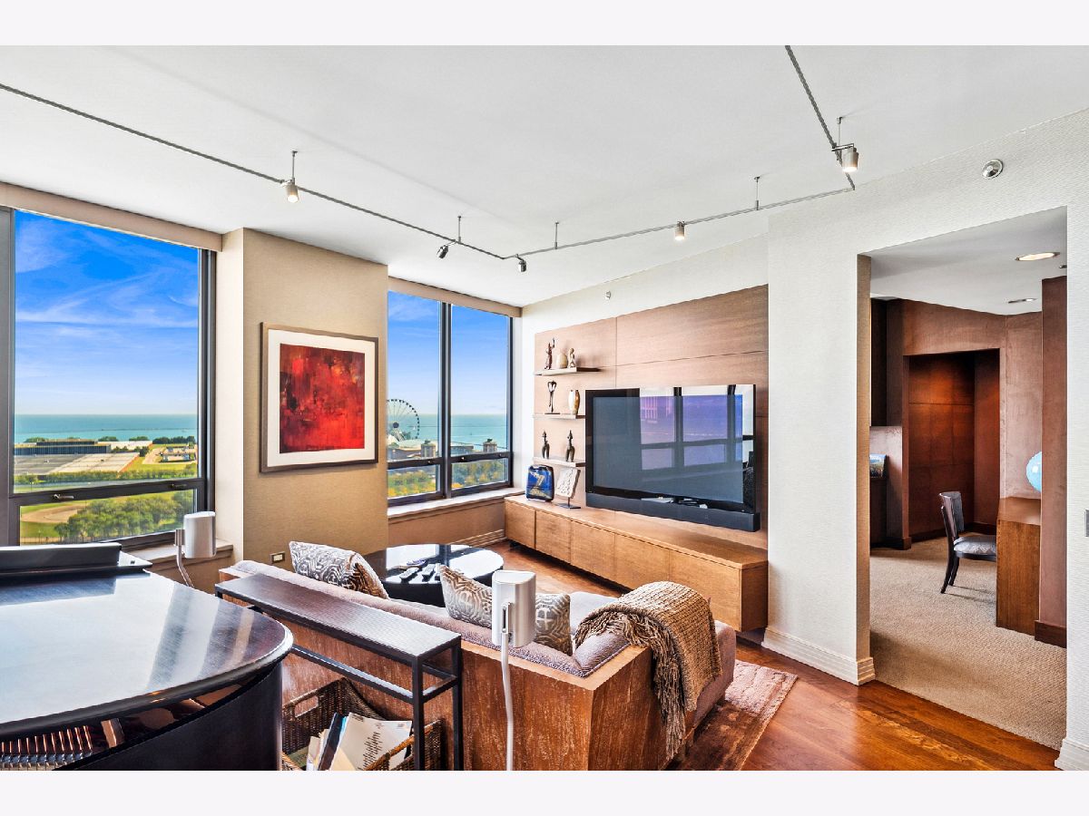 Spectacular northeast water views in the largest North Tower three-bedroom home at 600 Lake Shore! Enter the dramatic foyer with elegant tray ceiling, Tuscan style tile floor, and custom lighting which instantly reveals sweeping views of the lake, Ohio Street Beach, Olive Park and Navy Pier from every window. Upon entry, the soothing earth tone color palette blends seamlessly with the blue hues of the lake views. The gourmet kitchen opens to the living/dining area with Tuscan style tile floor, rich wood cabinetry with custom pulls, undermount lighting, full tile backsplash, sleek dark granite counters, filtered water dispenser, and premium stainless steel appliances including luxury brands Sub-Zero fridge, Bosch dishwasher, Wolf double oven, and Dacor microwave. The oversized breakfast bar easily accommodates five full size seats. Entertain with ease with the open living/dining/kitchen floor plan with access to a large inset balcony perfect for enjoying morning coffee or cocktails with the backdrop of magnificent Lake Michigan. Designer touches include custom window coverings and custom lighting throughout. The exquisite cherry wood flooring, with in-floor hidden outlets, extends into the living space overlooking the lake allowing for an additional seating area configured with a built-in electronics cabinet and shelving. The lavish master suite also offers lake views, custom carpet, custom ceiling fan, and features two large walk-in closets with built-ins. The ensuite private master bath includes double granite vanities with custom pulls, custom mirror with attached lighting, custom wall coverings, soaking tub, and walk-in waterfall marble shower. The second bedroom also features premium carpet and north views, along with an expanded walk-in closet and private balcony access. Located conveniently across the hall, the second bath was completely gutted and refinished, now featuring custom vanity and sleek Robern mirror, along with a walk-in shower with floor to ceiling marble. The third bedroom has been completely redesigned into an inspiring office/den space with lake views including custom finishes floor to ceiling featuring built in desk, shelving, and cabinets with integrated outlets and lighting. The stunning powder room is conveniently located off the foyer for guests which features a custom vanity, designer mirror, and custom wall coverings. The laundry room is located off of the kitchen and accommodates a full-size side-by-side washer and dryer with on-wall storage shelves. With meticulous interior design in the finishes of this home including whole home integrated audio, in-wall speakers, and accent lighting for artwork, it invites luxury, comfort and relaxation at the best address on the lake, 600 LSD! Seller prefers to close at the end of April.