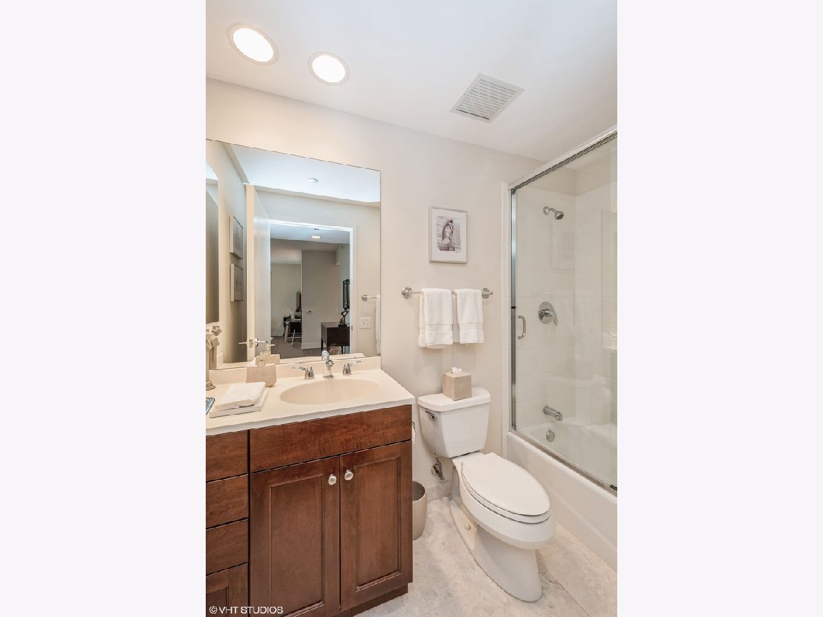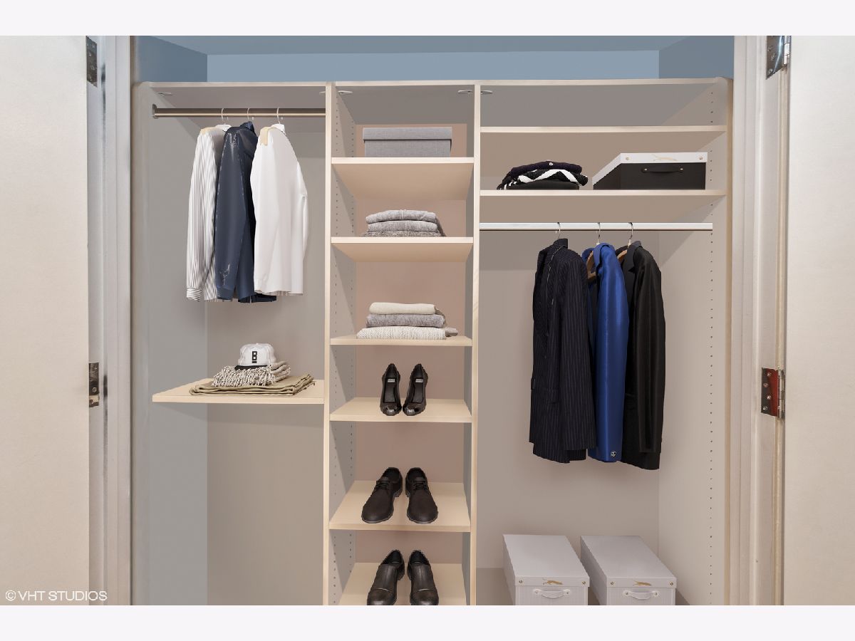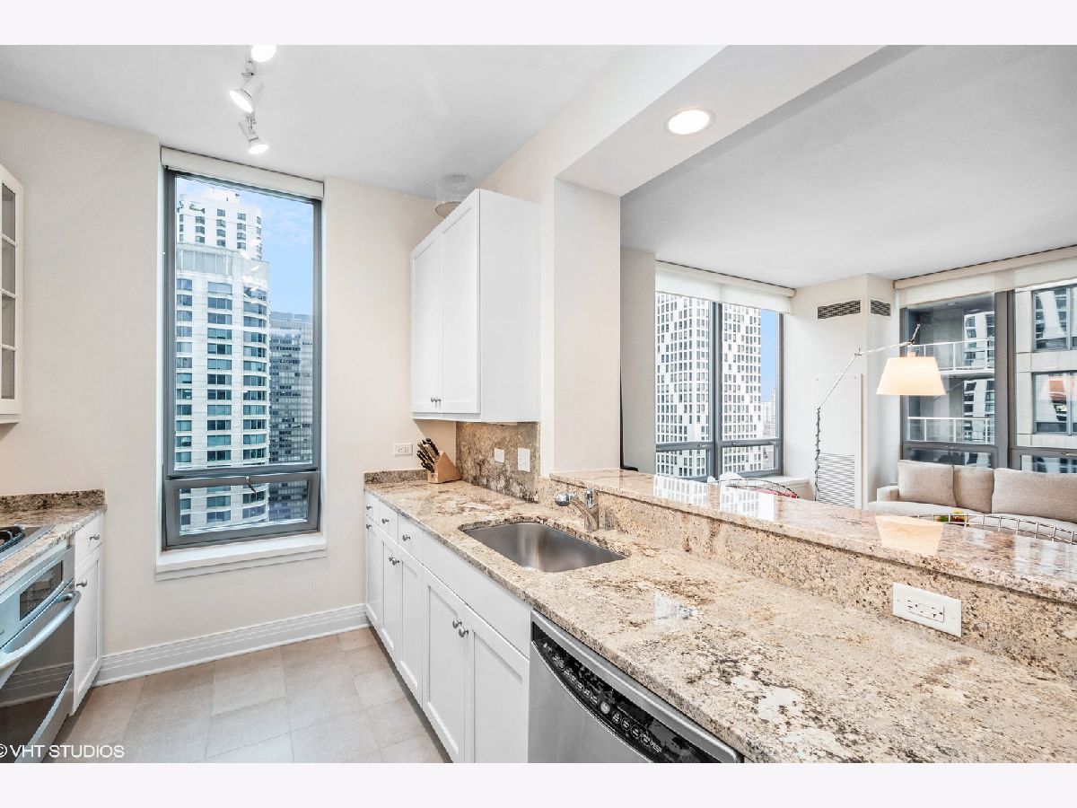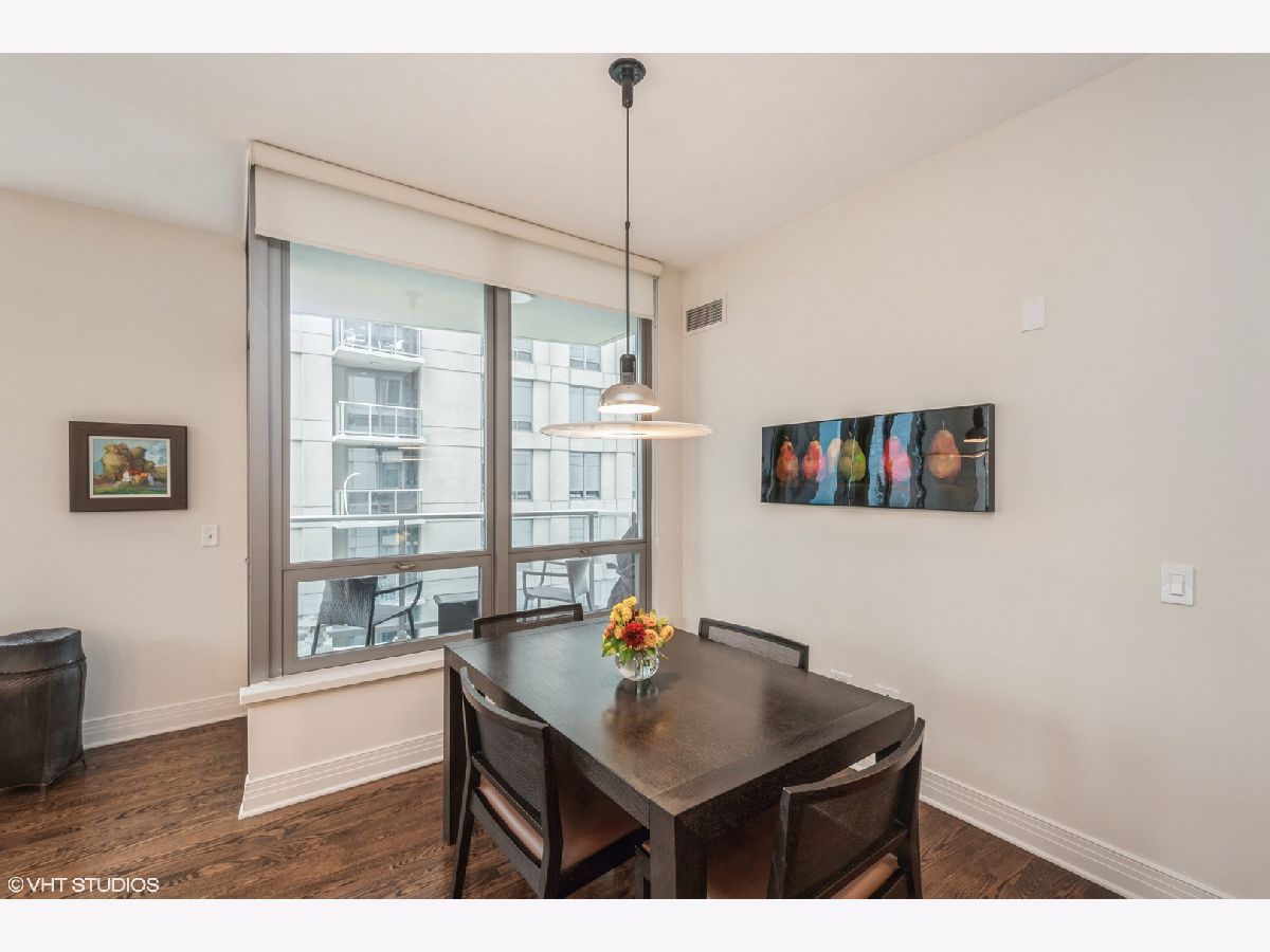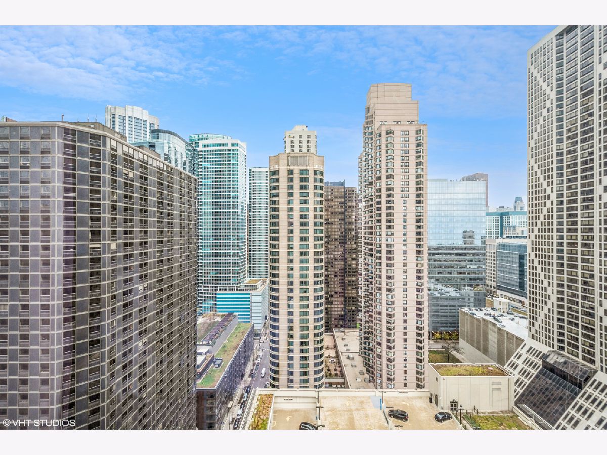 Updates/Improvements: New fridge in January 2020, new designer carpet in master bed in August 2020, kitchen features white cabinets/glass fronts, full height granite backsplash, track lighting, roll out drawers and single bowl sink, marble cleaned and sealed by Prestige Grout & Marble in the master shower, kitchen, and both baths in January 2022, master bath vanity refinished and anti-etch treatment with a 10-year warranty, custom built-in closets throughout, glass shower door in 2nd bath, custom lighting in the foyer and dining room from Lightology, safety locks on both balcony doors, hardwood floors in living/dining/foyer/2nd bedroom with custom dark stain, custom Queen-size Murphy wall bed in 2nd bedroom. Dramatic city views abound in this highly upgraded split 2 bedroom, 2 bath northwest corner condo in perfect move-in condition! You are greeted with elegance starting with the custom dark stained hardwood flooring extending from the foyer into the hallway and open living/dining area, along with a custom-built coat closet, and even extra storage above the side-by-side washer/dryer. Spectacular views of the lake are enjoyed from the balcony, which is accessible from both the living room and the second bedroom/study, west views of the city are seen throughout, and south and west views of the city lights from the master bedroom to end your day. The west facing kitchen has a window for fresh air and boasts full granite backsplash and countertops, single bowl sink, stainless-steel appliances and newer refrigerator, a breakfast bar which opens to the living/dining area, along with refreshing white tall cabinetry with glass fronts doors and custom pull-out drawers. Retreat to the spacious master suite offering a custom-built walk-in closet with newer designer carpet and a master bath including dual vanities with marble tops that have been refinished including an anti-etch treatment with a 10-year warranty, walk-in shower with a premium custom shower door, and separate tub with all marble surrounds. 2nd bedroom features a custom-built Queen-size Murphy bed providing the ultimate room versatility as either home office/study or instant guest room. The second bathroom includes all marble surrounds and a custom shower door. Murphy bed can be removed if needed prior to closing. Finishing touches include custom lights in the foyer and dining room from Lightology and custom track lighting in the kitchen.