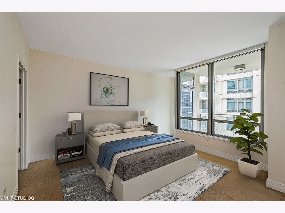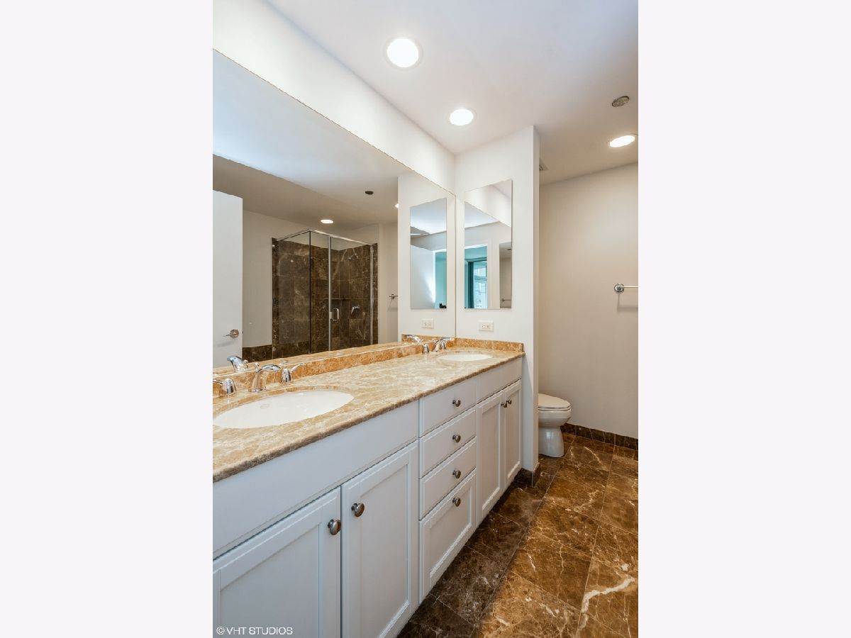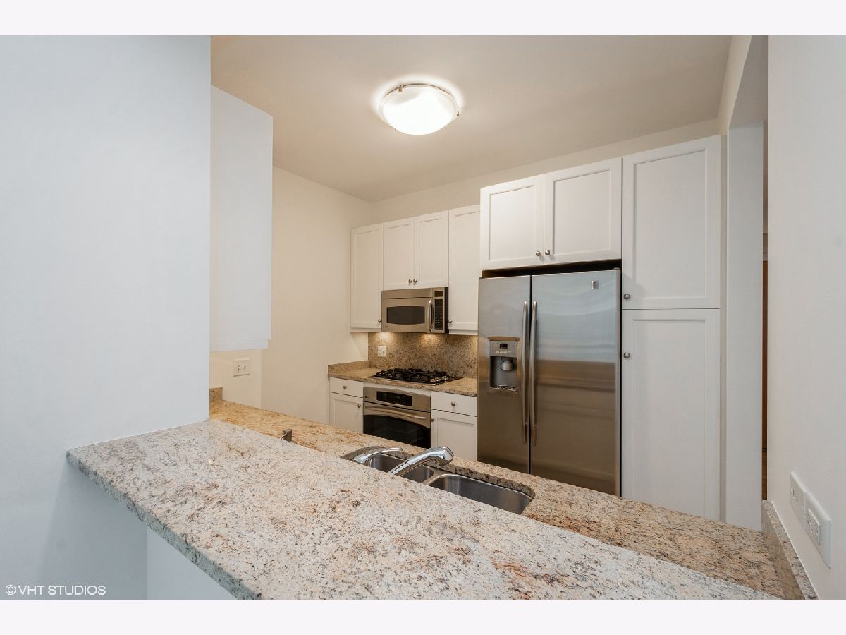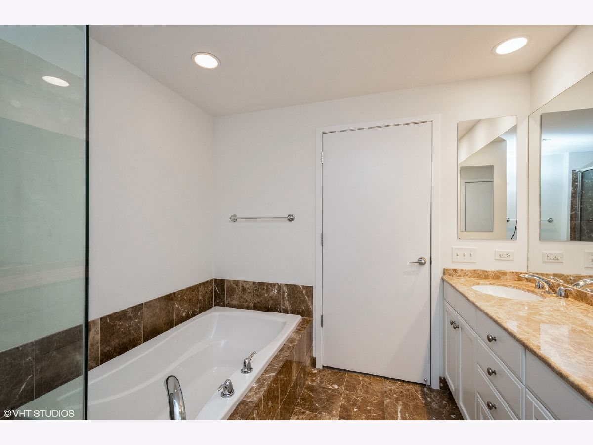 Come home to this updated high floor south facing 1 bedroom 1.5 bath in excellent condition with a large open living/dining room. You are warmly greeted with hardwood floors throughout the living/dining and bedroom along with custom overhead lighting. Escape to the private balcony with spectacular Navy Pier, lake, and south city views! The kitchen features all stainless-steel appliances including a brand-new microwave, granite countertops, white cabinetry, and full-size breakfast bar. The master bedroom also has private access to the inviting balcony along with a spacious walk-in closet, hardwood floors, and south city views. The ensuite master bath includes dual vanity with separate tub, glass enclosed walk-in shower, white cabinetry, and all marble surrounds. The powder room and laundry are conveniently located off the kitchen. Live in lakefront luxury and enjoy all the city has to offer!