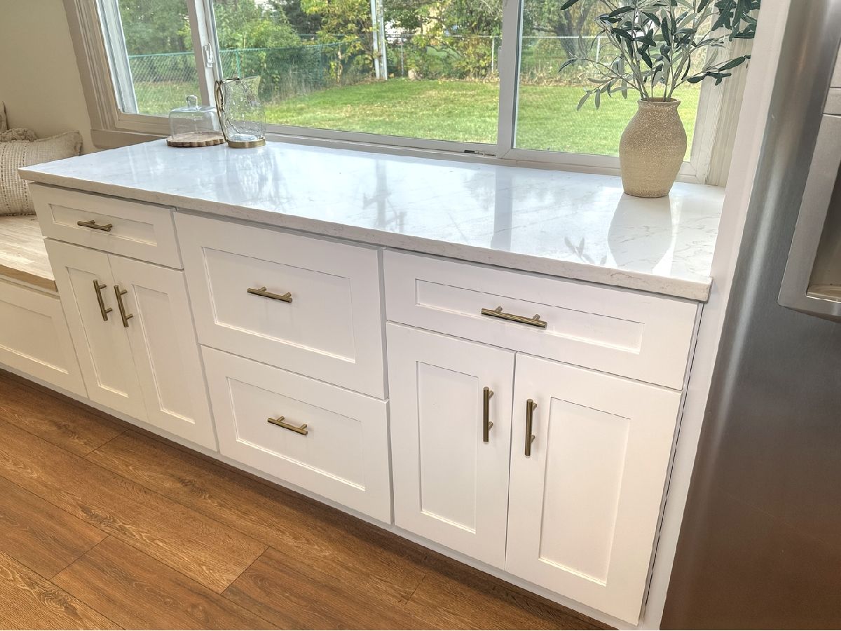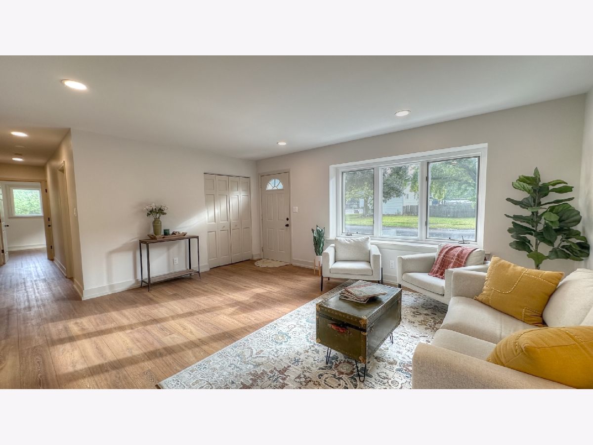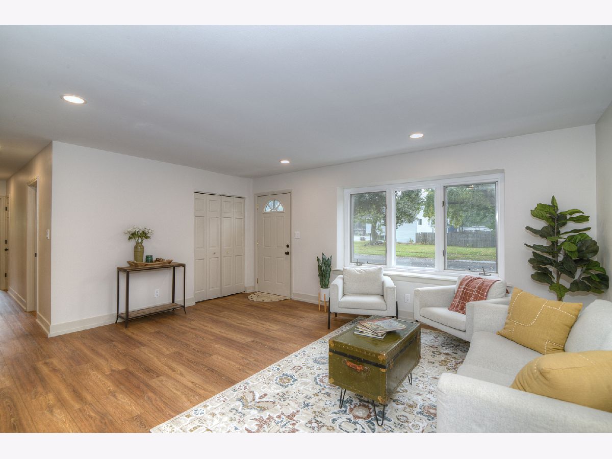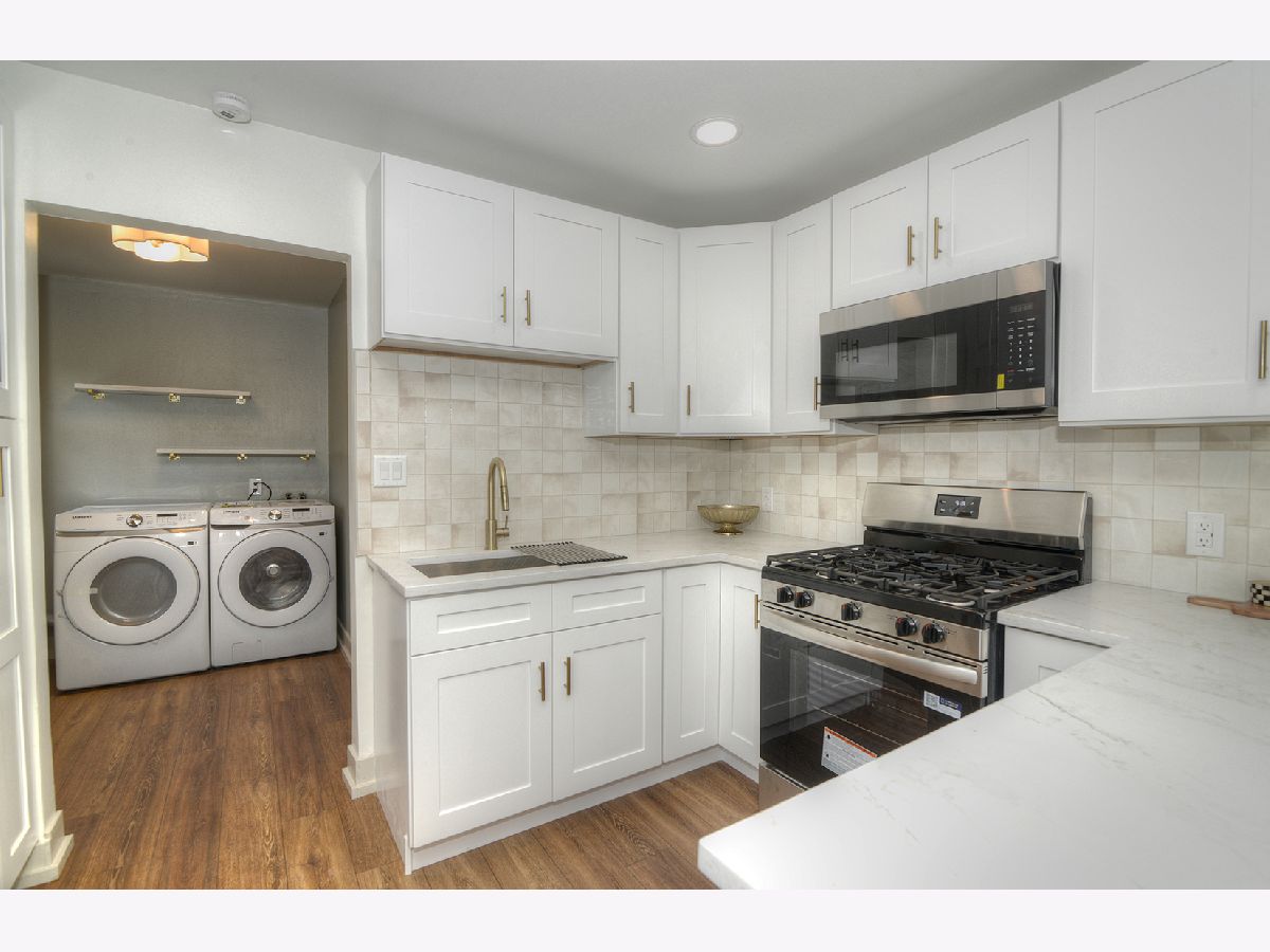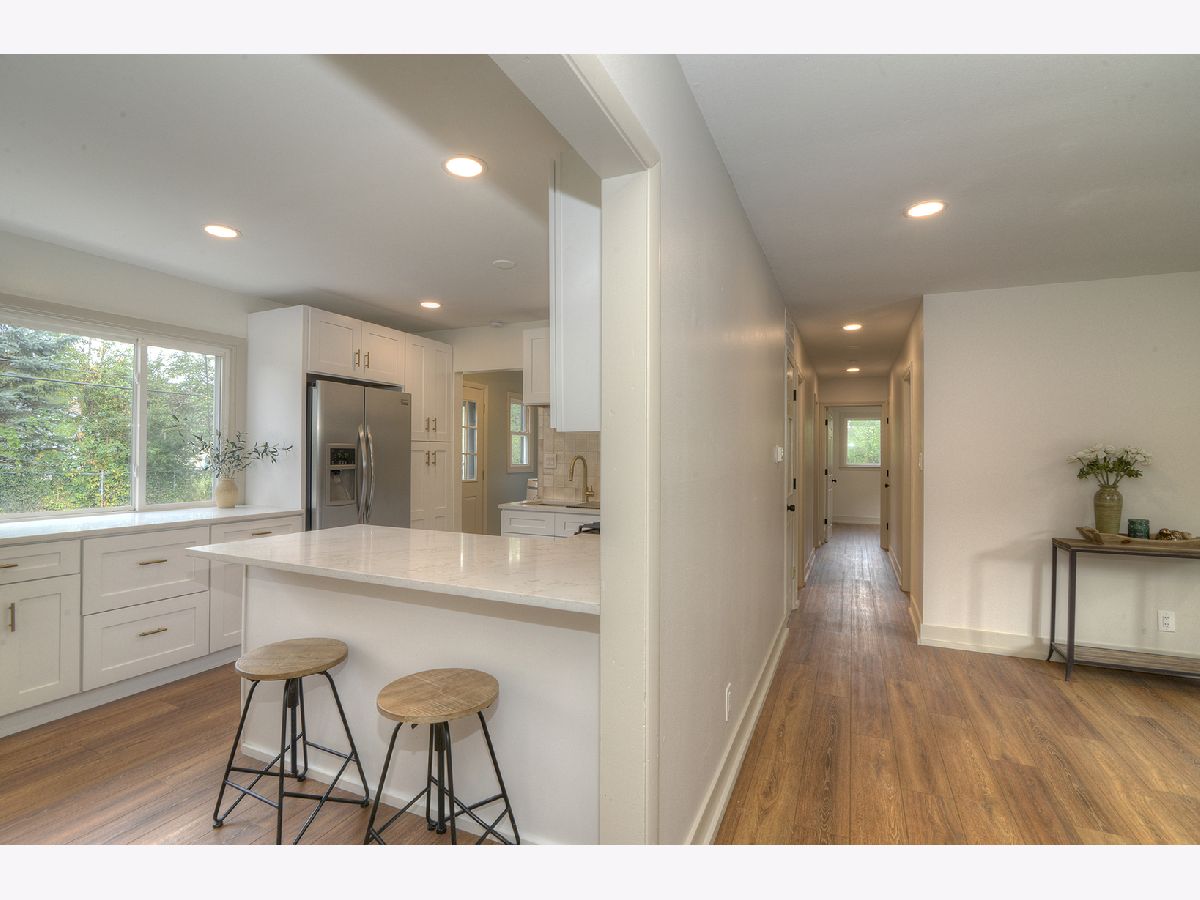 Step into this completely remodeled showstopper where modern design meets everyday comfort! This 3-bed, 1-bath ranch has been professionally designed from top to bottom - featuring luxury vinyl plank flooring, stunning quartz countertops, dreamy backsplash, and a custom built-in breakfast nook with butcher-block seating and drawer storage. The kitchen is a dream with brand-new stainless-steel appliances including range, microwave, dishwasher, and garbage disposal - plus endless cabinet space for storage. Just off the kitchen, you'll find the laundry room is made stylish and convenient with Samsung front-load washer and dryer topped with double quartz folding shelves. The stunning bathroom features penny tile flooring and custom wall tile and new vanity, while the primary bedroom highlights a designer accent wall that adds personality and charm. Major updates include a new roof (OCT 2025), furnace, A/C, and water heater (2024) for total peace of mind. Outside, enjoy brand-new concrete driveway, walkways, and a large patio-perfect for entertaining. The oversized one-car garage has new drywall and a pristine epoxy floor, creating a clean, functional space. Laundry is made stylish and convenient with Samsung front-load washer and dryer topped with a quartz folding shelf. Located in the highly desired Coventry neighborhood, near parks, schools, and downtown Crystal Lake, this turnkey, move-in ready home stands out with its designer finishes and timeless appeal. No gray and white here-this one is full of warmth, style, and personality! You'll be the talk of the neighborhood at 600 Sussex Lane!