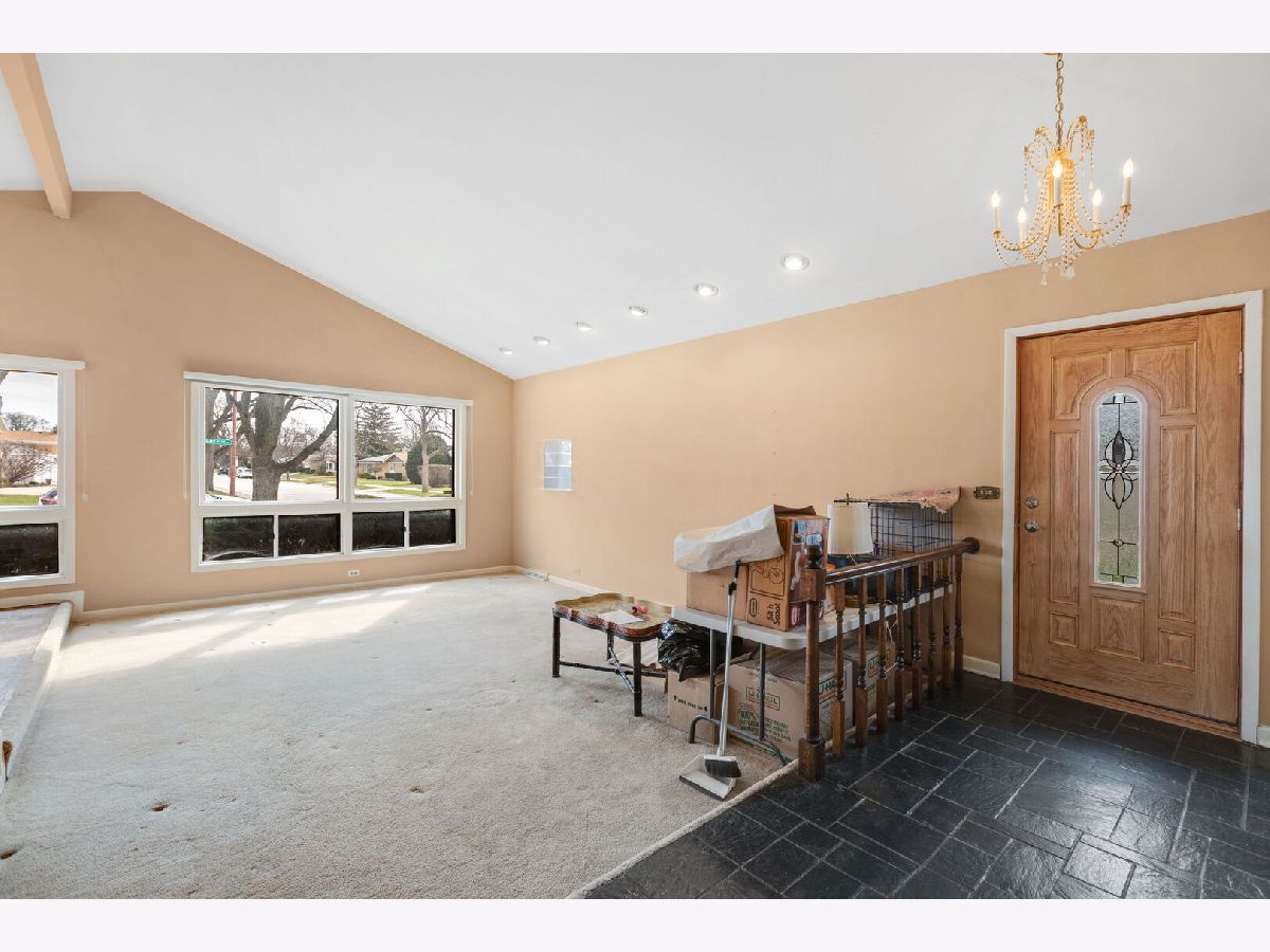 Spacious 3-bedroom, 2.1-bathroom split-level home, ideally located in the highly sought-after New Trier High School district. Soaring ceilings on main level with floor to ceiling windows allow for natural light to pour in. Main level offers large kitchen with stainless steel appliances, updated cabinets, and solid counter. Space for kitchen table and a ceiling fan make preparing meals a breeze. Dining room has parquet flooring and a chandelier. Step down living room has space for multiple seating areas with a volume ceiling. Entry way has a walk in guest closet offering good storage space. Powder room is also in this level. Open staircase has 5 stairs that lead to bedrooms on upper level and 4 stairs down lead to family room with corner fireplace, and sliders leading to backyard with large patio. Lower level has a full bath with step in shower, a large utility room with front load washer and dryer, multiple closets and all mechanicals. Double closet doors lead to entrance to crawl space for additional storage. Dry bar is located adjacent to wall of storage. Bedrooms share a full bath with tub, linen closet and vanity with storage. Primary bedroom has two closets and views of backyard. Oversized garage offers designated storage space and fits two cars easily.