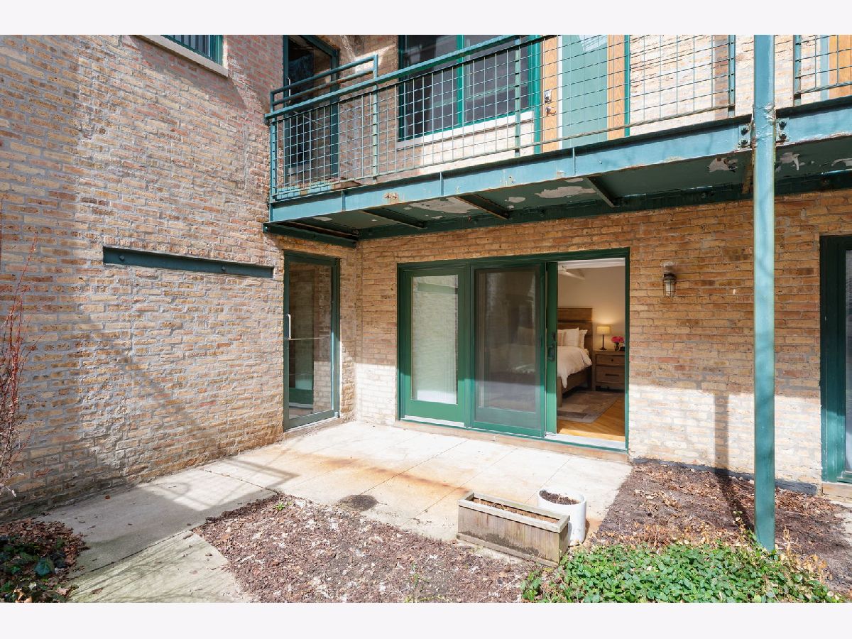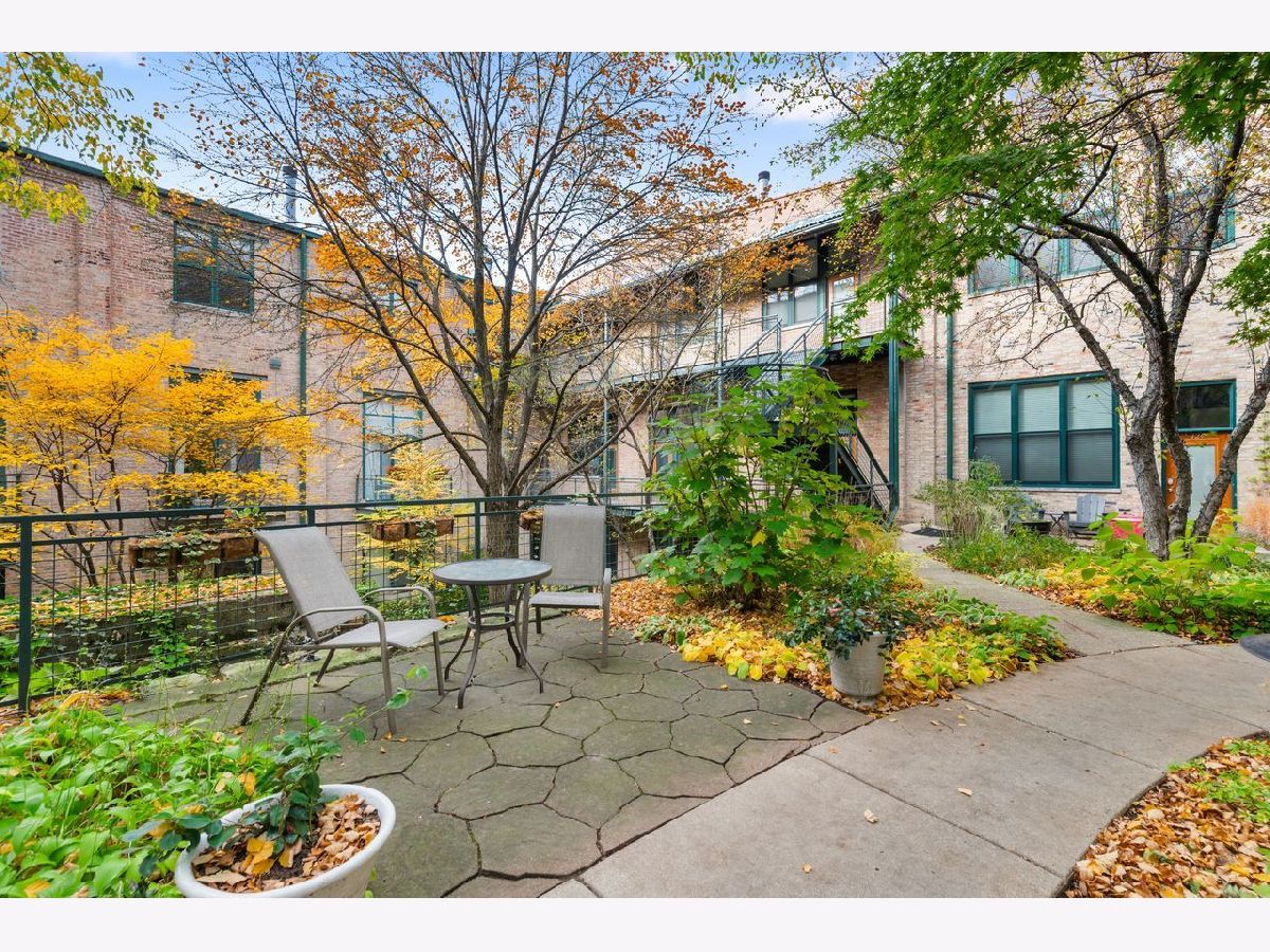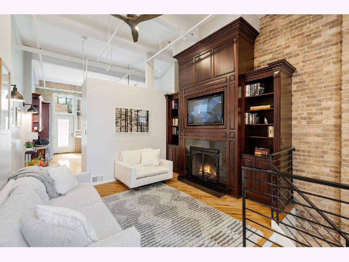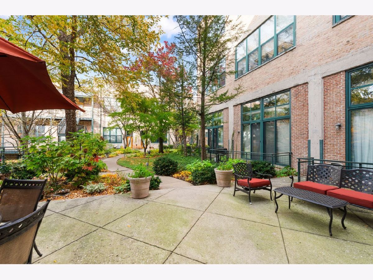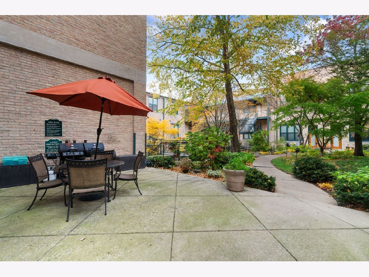 Exceptional duplex loft in the highly desirable New Biscuit Lofts, ideally located in a prime Evanston location-just steps to the Metra, the El, and everything Main Street has to offer. This stunning loft features a charming garden courtyard entrance, soaring 14' ceilings, and oversized windows with sliding glass doors that open to a beautiful private patio and garden.The classic loft aesthetic shines with exposed brick walls, concrete ceilings, and hardwood floors, all complemented by a sophisticated neutral gray palette throughout. The upgraded kitchen features cherry cabinetry, stainless steel appliances, granite countertops, and a recently installed faucet. A peninsula overlooking the dining area makes this space perfect for entertaining. The living room centers around a cozy fireplace framed by striking custom, library-style built-ins with integrated TV-ideal for movie nights, watching the big game, or relaxing with your favorite book. The spacious bedroom easily accommodates a king-size bed and includes a generous walk-in closet with ample storage. Convenient in-unit laundry is also located on the bedroom level. An additional versatile bonus space currently functions as a family room/den but could easily be adapted for a home office, guest area, or creative space. This home includes a heated garage parking space and additional storage. Residents enjoy an elevator building with a beautifully landscaped private multi-level courtyard featuring gardens and a grilling area, as well as a rooftop deck perfect for relaxing or sunbathing while taking in the views. The secure, professionally managed building is pet-friendly and ideally located near the Purple Line, Metra, shops, restaurants, the beach, and lakefront. Just minutes from downtown Evanston and Northwestern University.