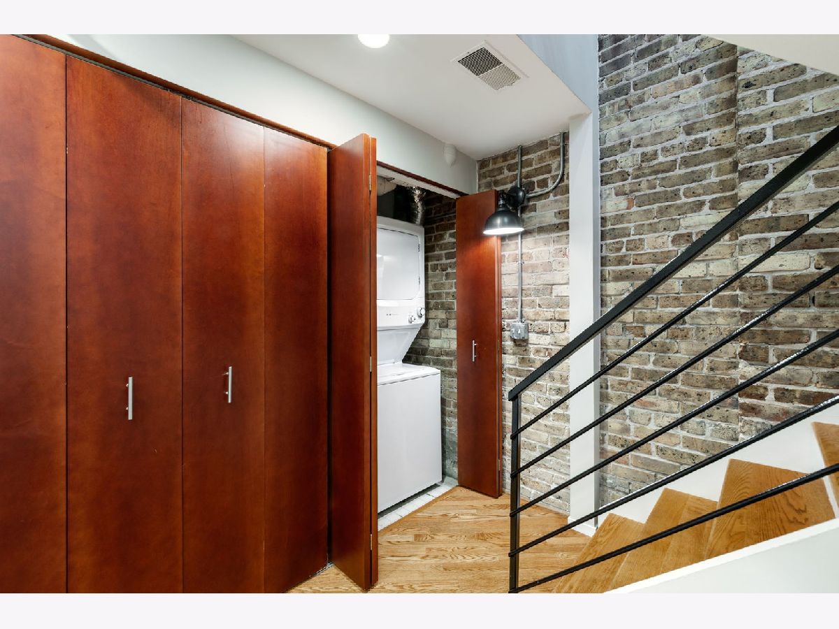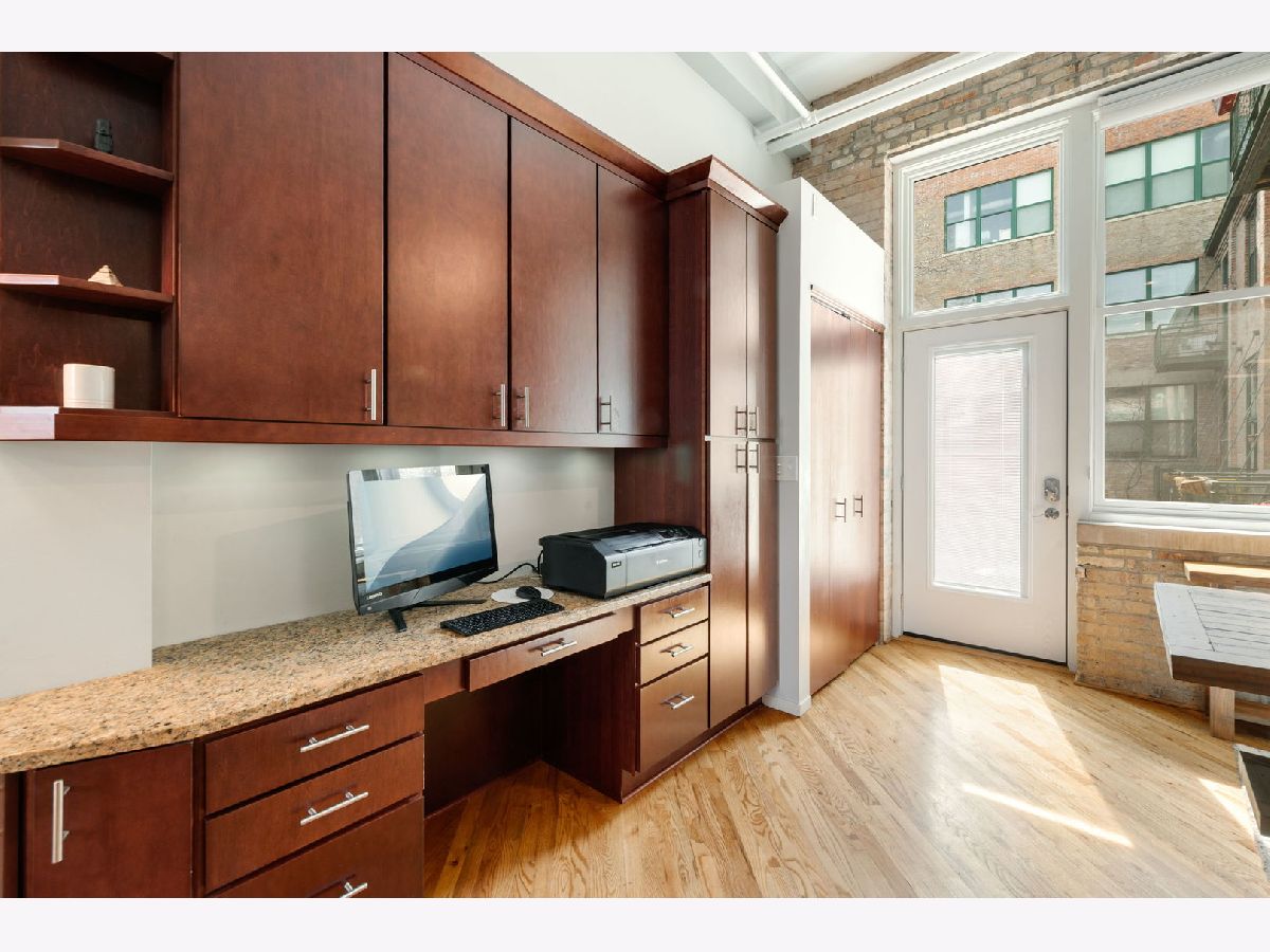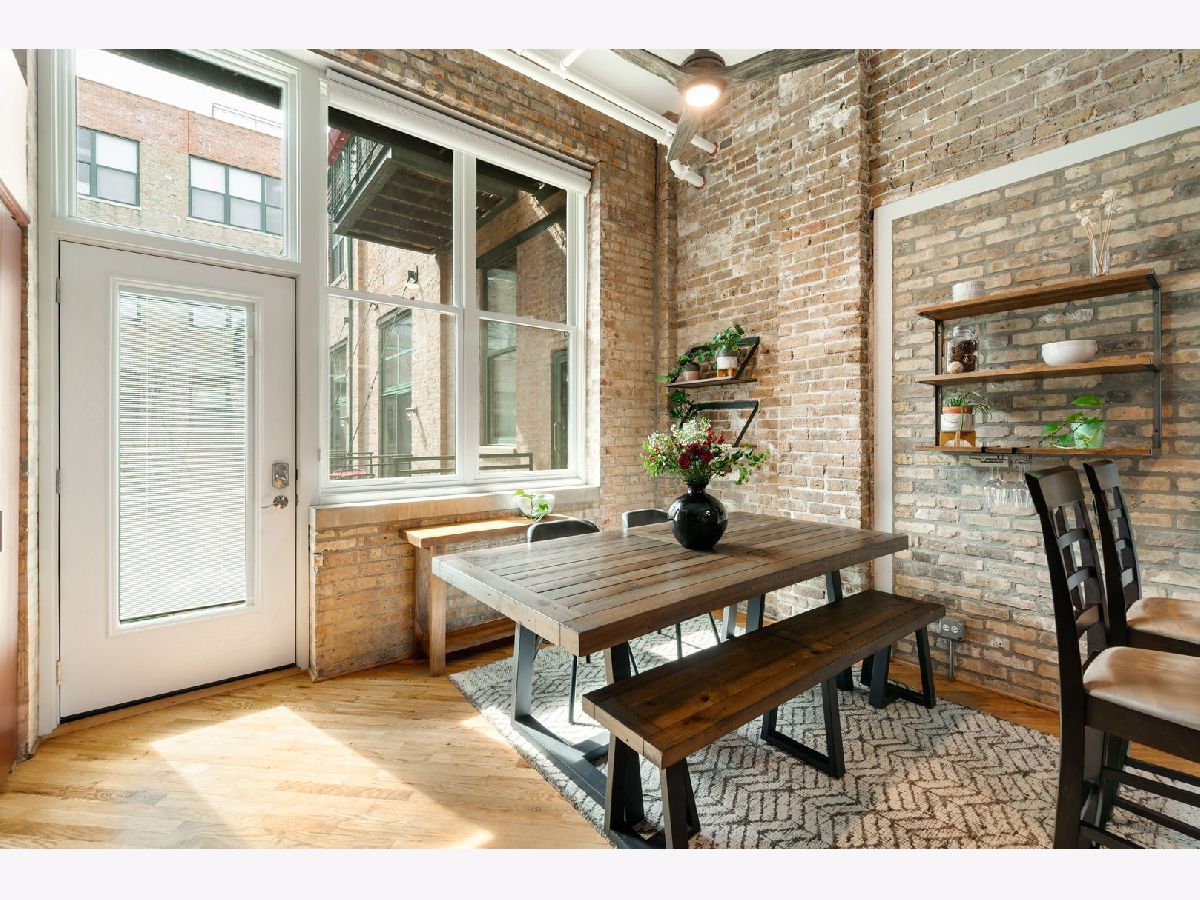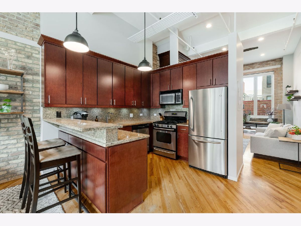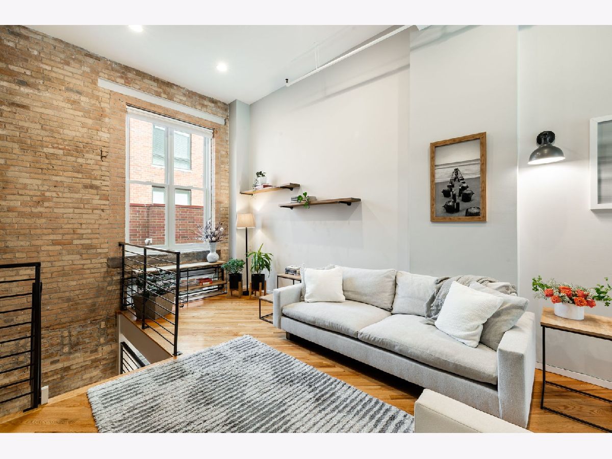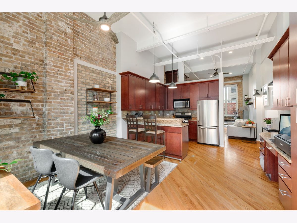 Exceptional duplex loft in the highly desirable New Biscuit Lofts, ideally located in a prime Evanston location-just steps to the Metra, the El, and everything Main Street has to offer. This stunning loft features a charming garden courtyard entrance, soaring 14' ceilings, and oversized windows with sliding glass doors that open to a beautiful private patio and garden.The classic loft aesthetic shines with exposed brick walls, concrete ceilings, and hardwood floors, all complemented by a sophisticated neutral gray palette throughout. The upgraded kitchen features cherry cabinetry, stainless steel appliances, granite countertops, and a recently installed faucet. A peninsula overlooking the dining area makes this space perfect for entertaining. The living room centers around a cozy fireplace framed by striking custom, library-style built-ins with integrated TV-ideal for movie nights, watching the big game, or relaxing with your favorite book. The spacious bedroom easily accommodates a king-size bed and includes a generous walk-in closet with ample storage. Convenient in-unit laundry is also located on the bedroom level. An additional versatile bonus space currently functions as a family room/den but could easily be adapted for a home office, guest area, or creative space. This home includes a heated garage parking space and additional storage. Residents enjoy an elevator building with a beautifully landscaped private multi-level courtyard featuring gardens and a grilling area, as well as a rooftop deck perfect for relaxing or sunbathing while taking in the views. The secure, professionally managed building is pet-friendly and ideally located near the Purple Line, Metra, shops, restaurants, the beach, and lakefront. Just minutes from downtown Evanston and Northwestern University.