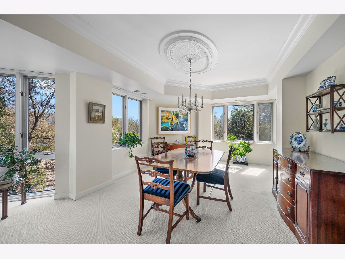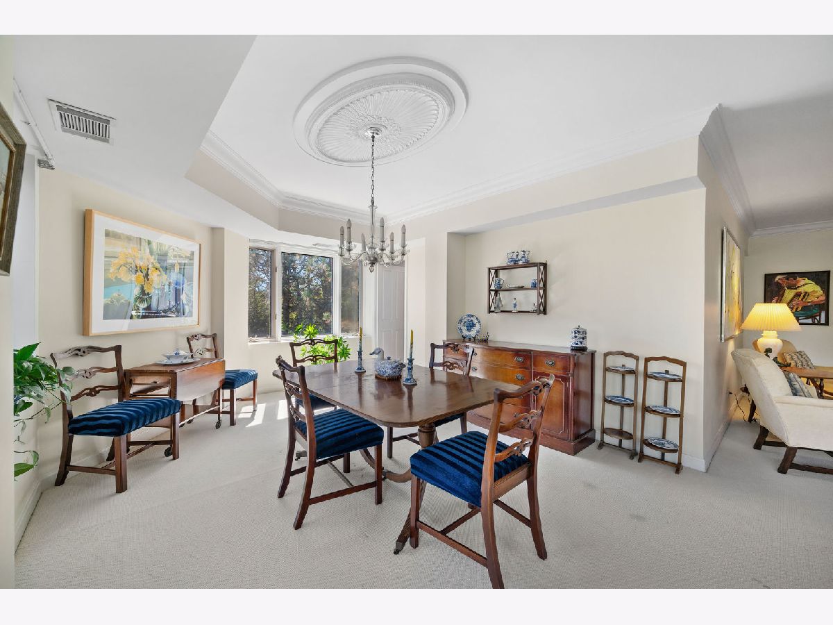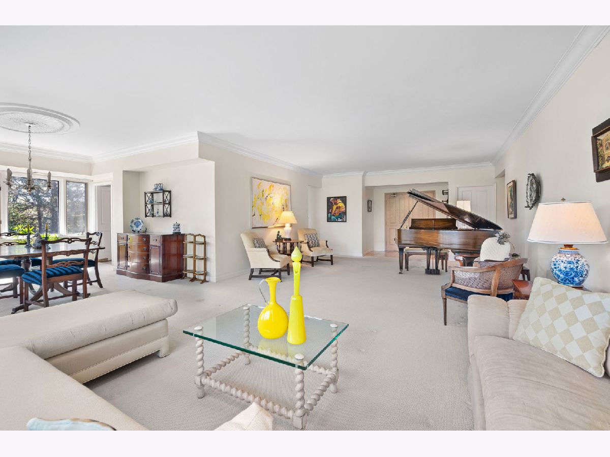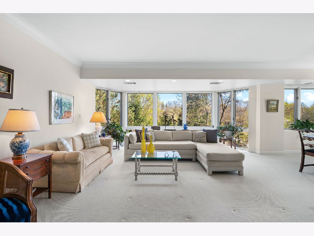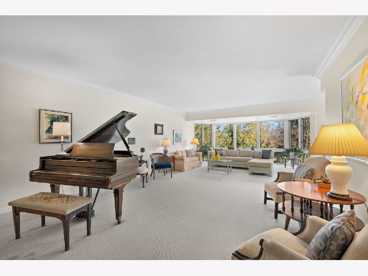 Imagine over 2,700 square feet of single-level living in a convenient elevator building just moments from downtown Highland Park. A rare opportunity to create your dream home with all the ease of condominium living, without sacrificing the space and scale of a single-family home. This expansive 3-bedroom residence at The Terraces offers a smart, functional floor plan with impressive room sizes and abundant natural light throughout. The oversized living room easily accommodates multiple seating areas and the largest of furnishings, while the open dining room is ideal for hosting gatherings both large and small. The spacious eat-in kitchen offers plentiful counter space and storage, with ample room for a large island and casual eating table. The primary suite serves as a true private retreat, featuring a sitting area with access to a private balcony, a large bath with separate shower, soaking tub, double vanity, and linen closet, along with an oversized walk-in closet. The second bedroom includes an ensuite bath and walk-in closet. The third bedroom is generously sized and flexible-perfect as a guest room, home office, and/or family room-with a large double closet and access to a full bath. This well-maintained, quiet building is ideally located within easy distance of downtown Highland Park, offering convenient access to restaurants, shopping, and Metra service to the city. Three heated garage parking spaces are included and easily accessed via elevator. Abundant storage, wonderful natural light, and beautiful treetop views from every window complete this exceptional home, now ready for its next owner to make it their own.