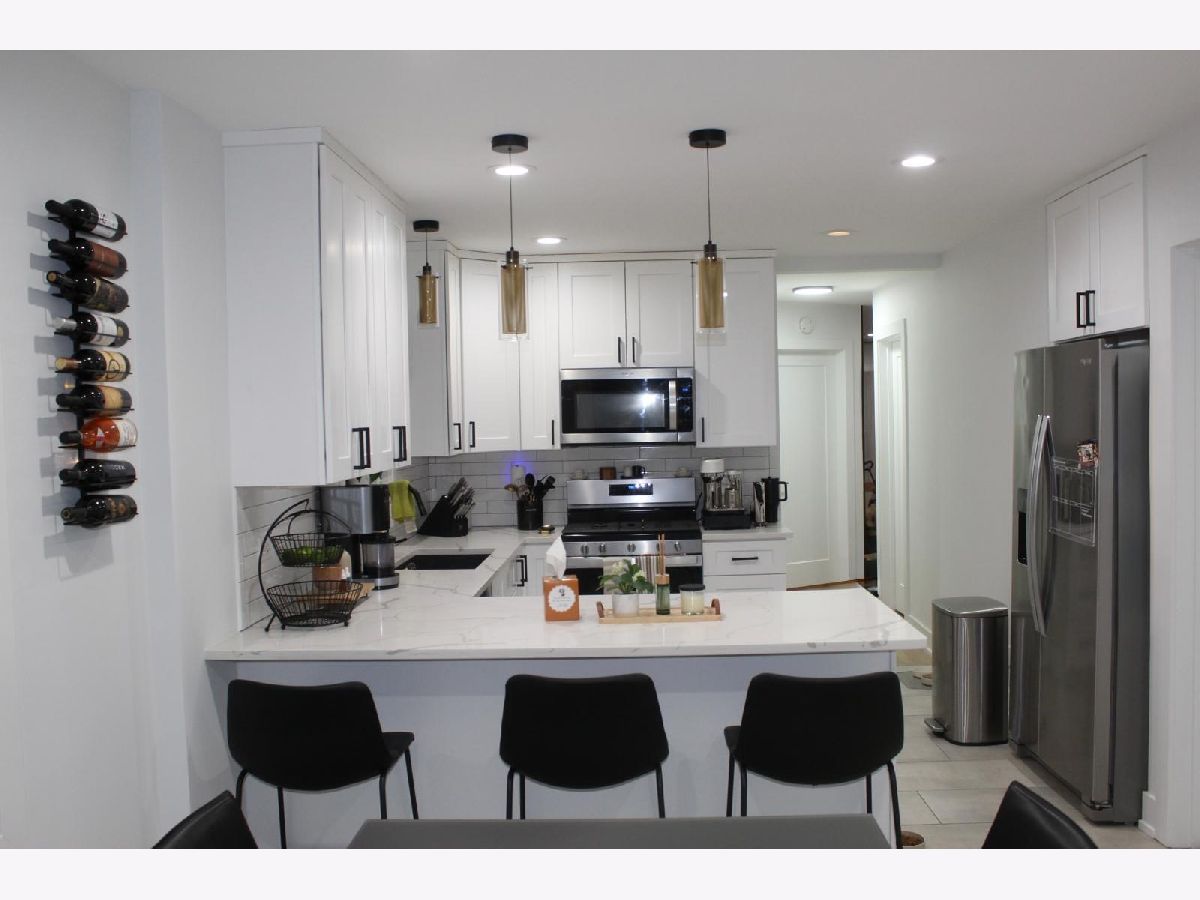 Move in ready home for sale! New roof and gutters installed summer 2025. The upstairs was fully renovated in 2022, featuring a new kitchen with Whirlpool appliances, quartz countertops, and new cabinetry, along with a completely updated bathroom with a rain shower head. Refinished hardwood floors throughout the living room and bedrooms, new tile flooring in the kitchen and bathroom, and new trim, doors, and baseboards throughout. The living room also features a stylish accent wall. Landscaping was redone in summer 2022. Two-car garage with a built-in workstation. Tuckpointing completed on the chimney and various areas of the home in 2025.