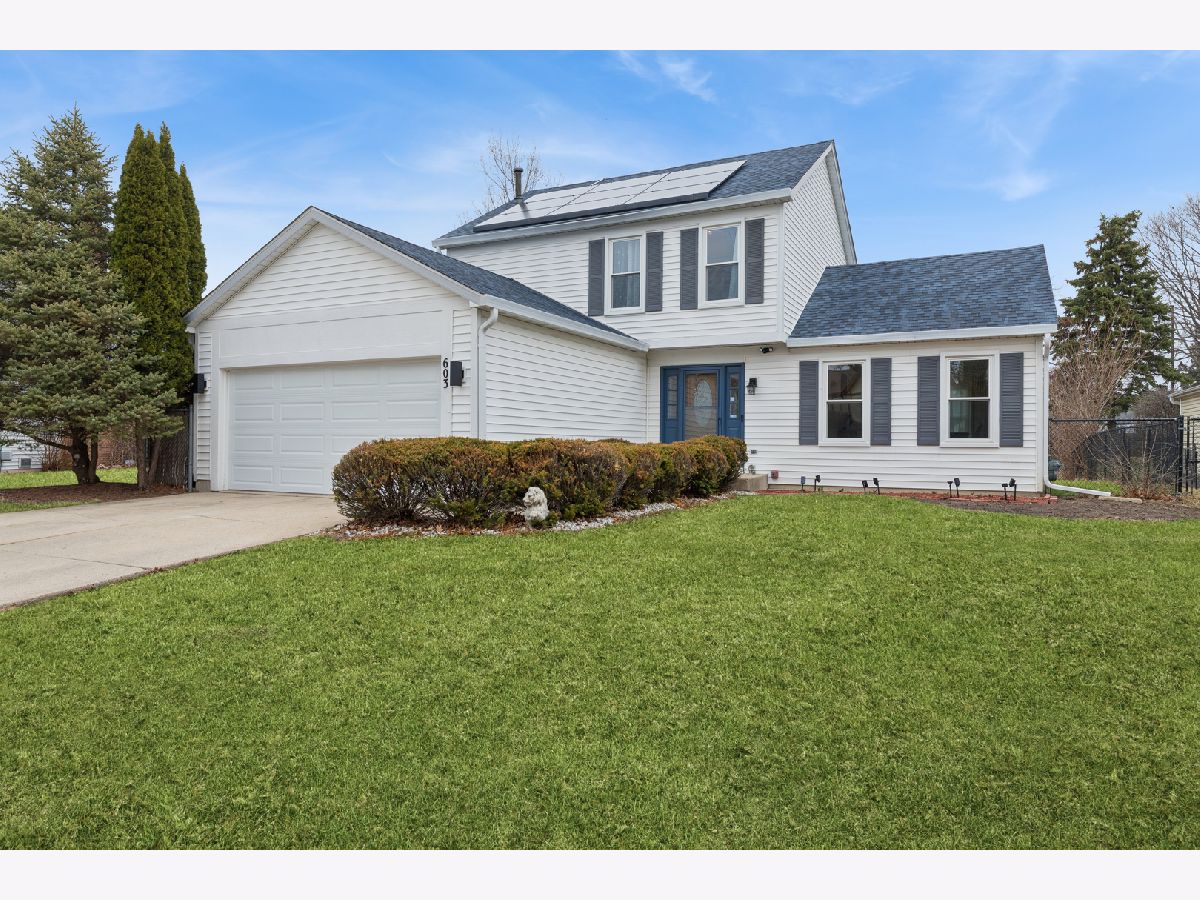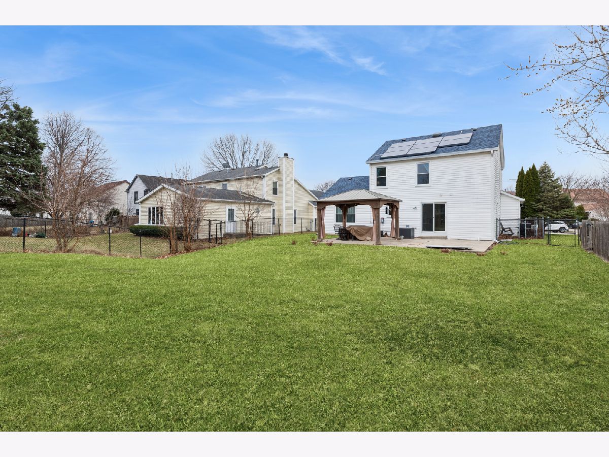 Beautiful colonial-style two-story home located in the highly desirable Stevenson High School district featuring extensive updates and designer finishes throughout. The home offers a bright living room with vaulted ceilings and a fully updated kitchen (2025) with new appliances (2024), modern finishes, new flooring (2023), new carpet (2023), recessed lighting, designer paint, and custom accent walls that create a stylish and welcoming atmosphere. Major improvements include new windows (2023), new roof (2024), new entry door (2026), new stair railing (2025), new washer and dryer (2024), updated powder room (2024), and a newer HVAC system (2019) providing peace of mind for years to come. The beautifully finished basement is a true highlight of the home featuring luxury vinyl flooring, custom built-in library shelving, decorative accent walls, and a faux fireplace feature wall, creating a perfect space for entertaining, relaxing, or a home office. Enjoy outdoor living in the huge fenced backyard featuring a new gazebo (2025), new storage shed (2025), concrete patio, and plenty of room for entertaining, pets, or play. Additional highlights include a concrete driveway, two-car garage, and leased solar panels for energy efficiency. A beautifully updated, truly move-in ready home offering modern style, generous indoor and outdoor living space in an excellent location-welcome to your next home, what more could you ask for?