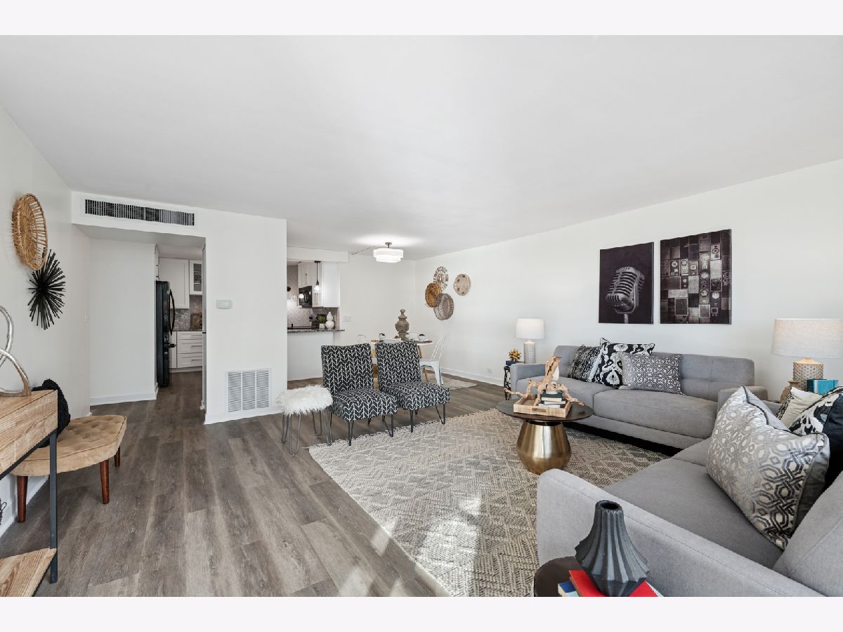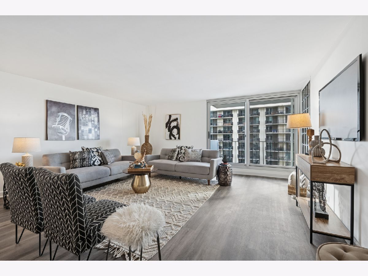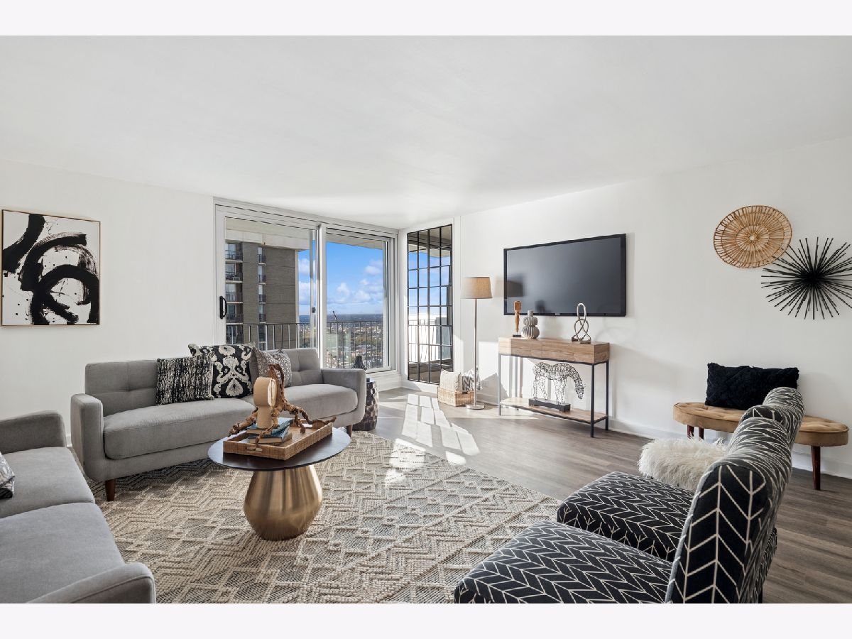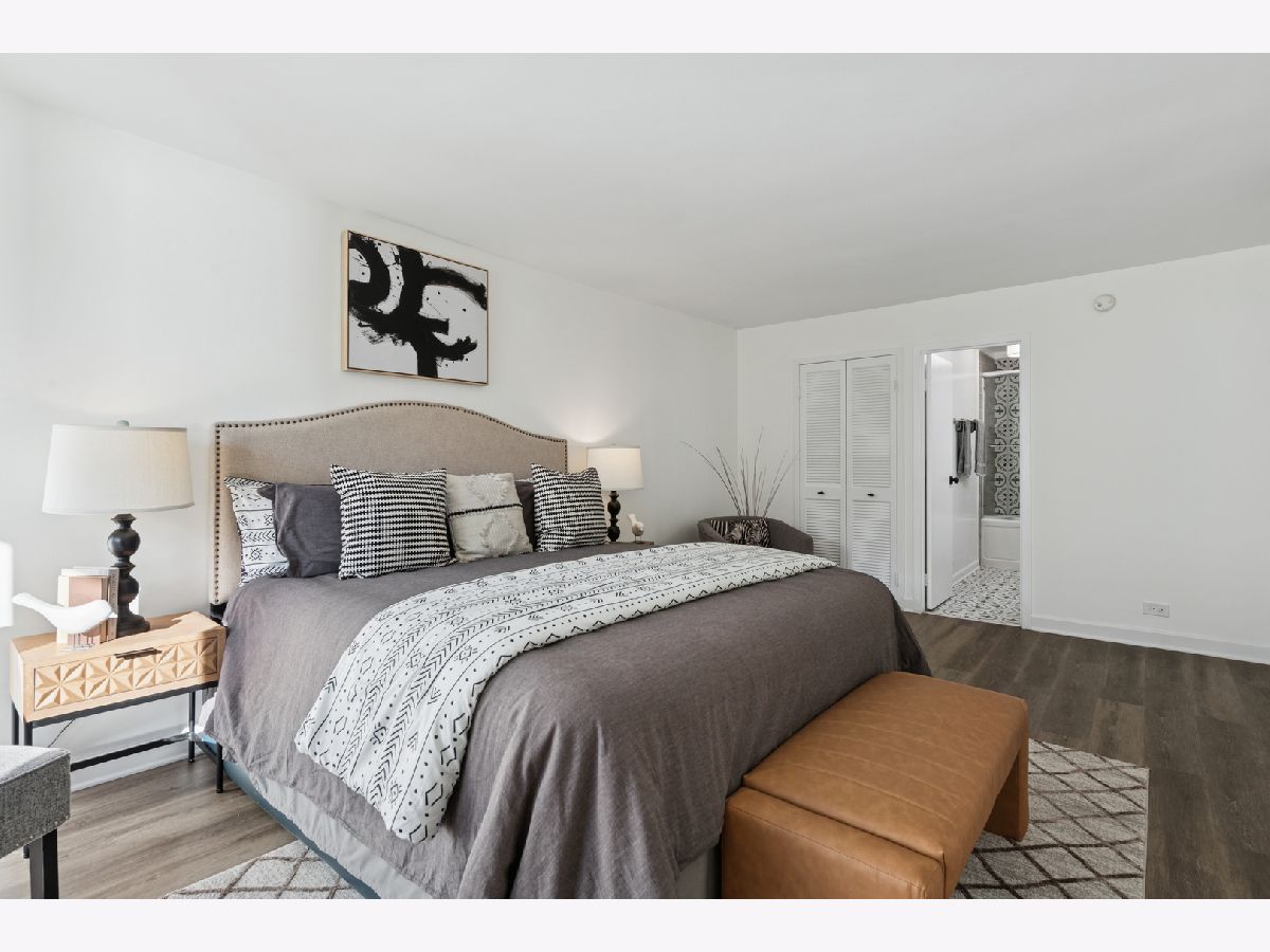 Experience the perfect blend of lakeside serenity and city sophistication in this beautifully updated 2-bedroom, 2-bath south-facing residence at the sought-after Lakeside Luxury at Malibu East Condominiums in Edgewater Beach. Step inside to find a home refreshed with NEW luxurious vinyl plank flooring throughout in a beautiful neutral tone, NEW baseboards, and NEW lighting, creating a clean, cohesive, and modern & classic aesthetic. Two of the home's three windows have also been recently replaced, filling the space with abundant natural light and enhancing energy efficiency. The open-concept kitchen, thoughtfully renovated in 2019, flows seamlessly into the spacious dining area and oversized living room-ideal for entertaining or relaxing with stunning lake views. The kitchen features white cabinetry, generous storage including a pantry, granite black & white countertops with a waterfall edge, modern gray subway tile backsplash, and sleek black appliances-a timeless blend of functionality and contemporary design. The primary suite serves as a peaceful retreat, featuring a walk-in closet and a spa-inspired bath with a jacuzzi tub/shower combo, glass doors, and a new vanity with updated counters, cabinetry, NEW lighting, and NEW no fog with mood lighting LED mirror. The second bedroom offers versatility for guests or a home office, while the second bath also features NEW anti-fog LED mirrors the same level of style with modern finishes, custom tilework, and NEW updated lighting. Step onto your impressive 42-foot-wide private terrace, spanning the living room, primary suite, and second bedroom-an ideal spot to unwind, take in lake breezes, or watch the sunrise over the water. Freshly painted and truly move-in ready, this home includes key upgrades for peace of mind: new stove (2024), dishwasher (2019), microwave (2019), and water heater and AC (2022). NEW electrical outlets throughout. Residents of Malibu East enjoy resort-style amenities including two outdoor pools, tennis and an all racquet sports courts including pickleball, a fitness center, lakefront party room, and sundeck lounge area, an observation deck with a clear view of Navy Pier fireworks. Additional conveniences include on-site management, garage parking available for rent, and a convenient commissary with shops including a mini-mart, doctors office a longtime resident dentist, a private gym for those who prefer to work with personal trainers and other services right downstairs. Perfectly situated near beaches, lakefront trails, shopping, restaurants, and public transit right outside the front door, 20 minutes to the Mag Mile or 2 blocks to the Red Line, this home offers the best of Chicago's North Side lifestyle. Additional storage #235 included. Stylish, comfortable, and designed for easy living-this Malibu East residence is a rare opportunity to own a beautifully updated home in one of Chicago's premier lakefront communities.