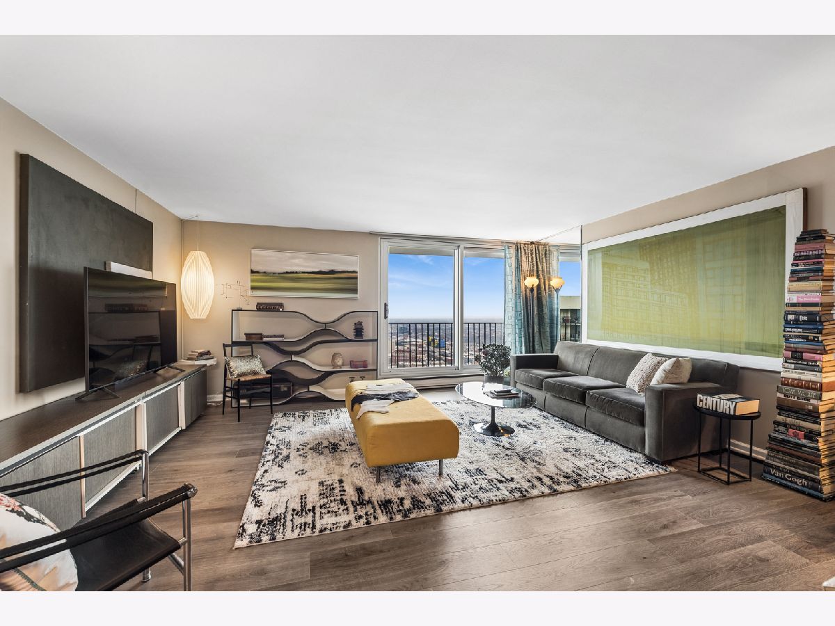 Welcome to a high-floor retreat where timeless design meets cutting-edge comfort. This 1-bedroom, 1-bathroom condo has been beautifully reimagined to capture the essence of modern lakefront living in Edgewater - combining open, airy spaces with elegant finishes and thoughtful innovation. Completely renovated in 2021, the transformation began from the studs up. The oversized living room is a showstopper - bright, open, and perfectly designed for entertaining or simply relaxing while taking in sweeping city and lake views. Its generous proportions allow for flexible furniture arrangements and a seamless flow to your expansive 40-foot balcony, where you can enjoy captivating sunrises over Lake Michigan and glowing evening sunsets. The kitchen and bathroom feature custom mood lighting, allowing you to adjust colors and brightness to perfectly match your moment - whether it's a soft, serene glow for unwinding or vibrant tones for an energizing start to your day. Premium finishes include sleek countertops, designer cabinetry, and an efficient, contemporary layout that maximizes every inch of space. Beyond your door, resort-inspired amenities await. Enjoy 24-hour door staff, a fully equipped fitness center, tennis, racquet, and pickleball courts, two outdoor pools, party and billiard rooms, an arcade, and a library/conference room - all designed to enrich daily living. The building's lakefront location places you just steps from the shoreline, bike paths, beaches, and green spaces. Commuting and exploring couldn't be easier, with Lake Shore Drive, the CTA Red Line, and express bus routes to downtown just moments away. Nearby shops, restaurants, and cafes make every convenience part of your everyday life. Whether you're hosting in your spacious living room, unwinding with custom mood lighting, or soaking in the endless lake views, this home offers a lifestyle that feels both elevated and effortless. Discover your next chapter in this stunning, high-floor Edgewater residence - where luxury, smart design, and lakefront living come together beautifully. Schedule your private showing today.
