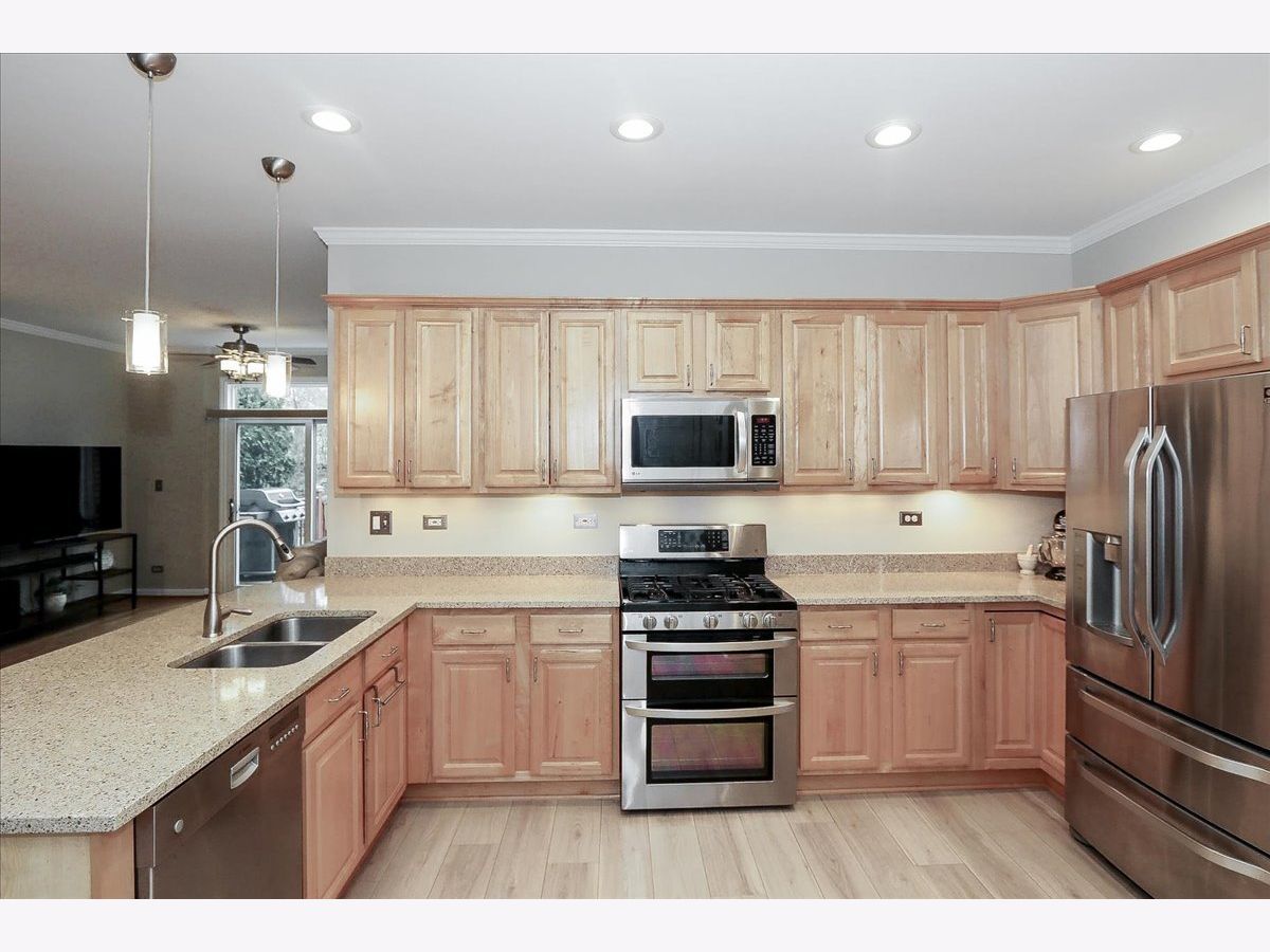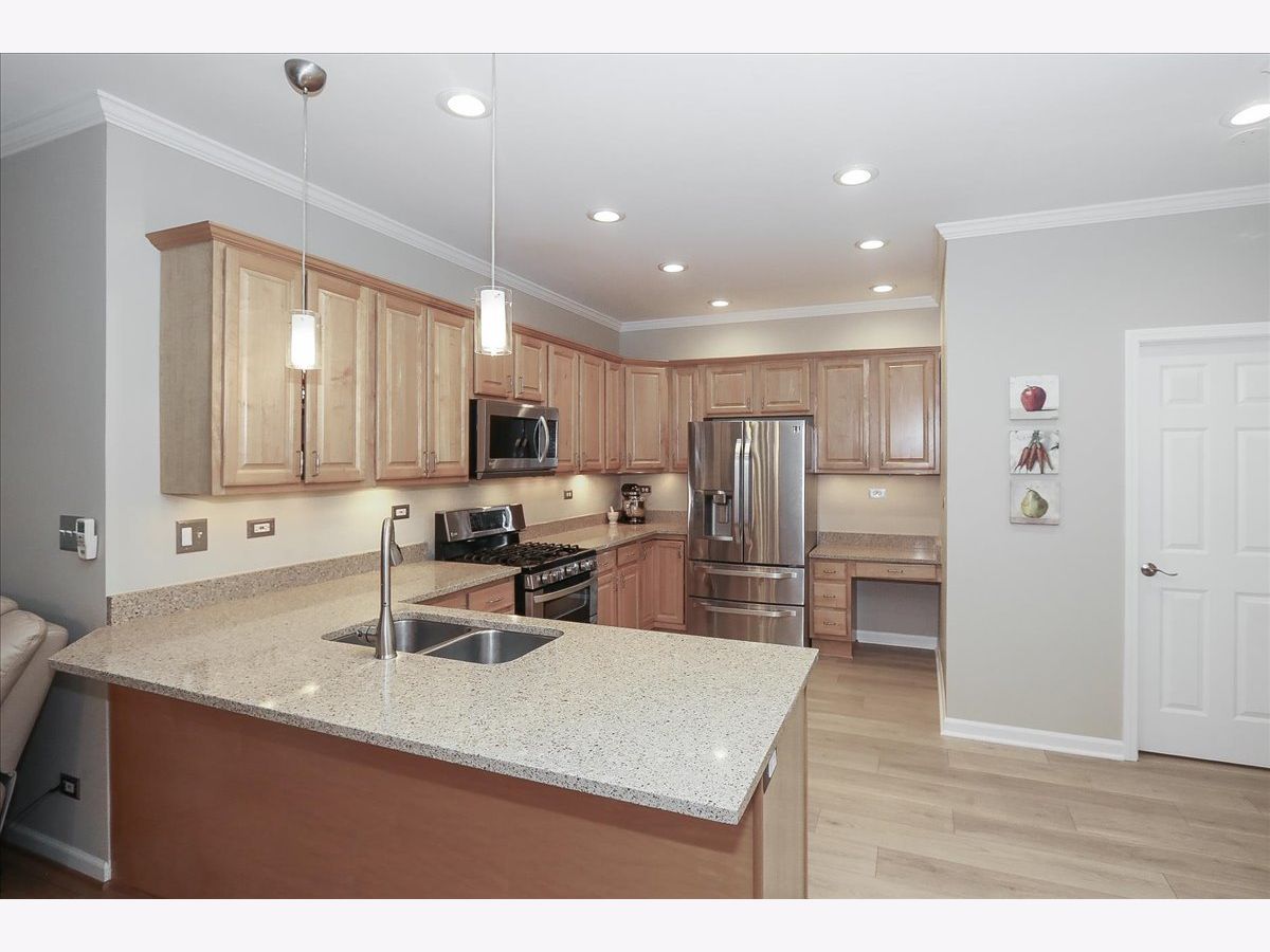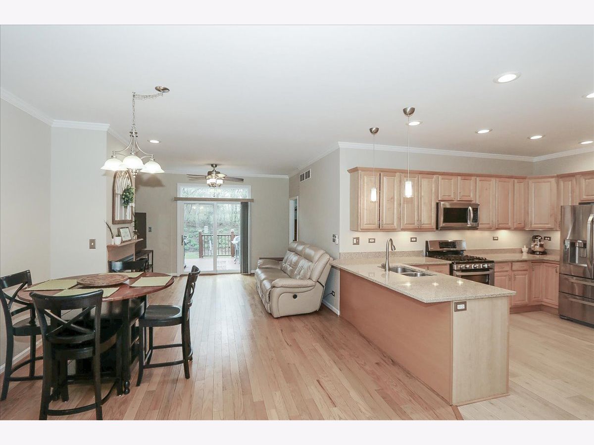 Floorplan and square footage on tour/3D tour. Experience the spaciousness and privacy of a single-family home with the low-maintenance and ease of townhome living. This meticulously maintained residence features a flexible floor plan highlighted by 9-foot ceilings and gleaming hardwood floors. Relax by the gas fireplace in the cozy living room, or retreat to the main-level primary suite, complete with vaulted ceiling, premium Marvin double-hung windows and a luxury ensuite bath featuring dual sinks, a soaking tub, and a separate shower. The heart of the home is a chef-inspired kitchen boasting maple cabinetry, Silestone countertops, under cabinet lighting, stainless steel appliances, recessed LED lighting, convenient breakfast bar and newer luxury vinyl plank flooring. Completely updated powder room. Natural light pours in through two newer Marvin sliding glass doors that lead to a private composite deck, screened by lush arborvitaes for ultimate seclusion. Upstairs, you'll find two generous bedrooms with ceiling fans, custom closet built-ins, and a massive bonus room-perfect for a fourth bedroom, home office, or media center. The laundry is located on the 2nd level however it would be a simple fix to add a washer/dryer on the main floor. The professionally finished basement adds even more living space, including recreation room with surround sound, a game room, full bathroom, newer luxury vinyl plank flooring and recessed LED lighting. Plenty of storage space, a 5x25 storage area and under the staircase. The attached 2 car garage has included storage racks. This home has been freshly painted and is move in ready. New blacktop driveway. Located just one block from the Illinois Prairie Path, 4 minutes to the train station and just a few minutes from major expressways (I-355, I-290, Rt 53), this home combines luxury, comfort, flexible floor plan and an unbeatable location in the highly rated Glen Ellyn school district. Seller prefers end of June close date.