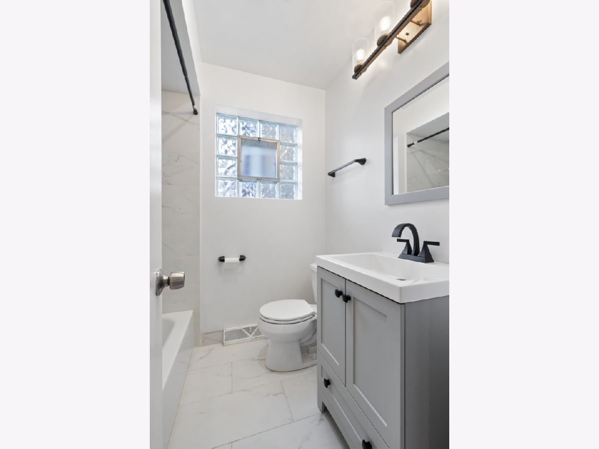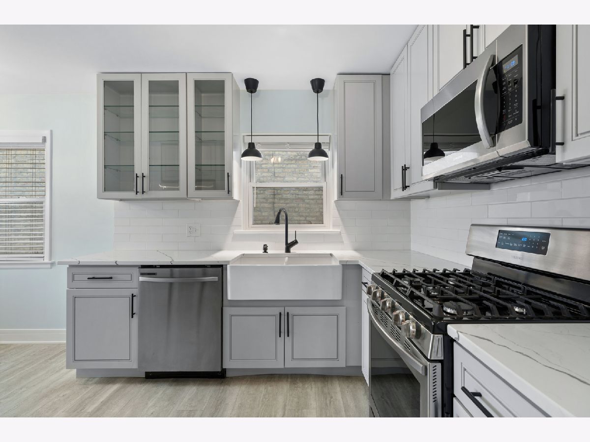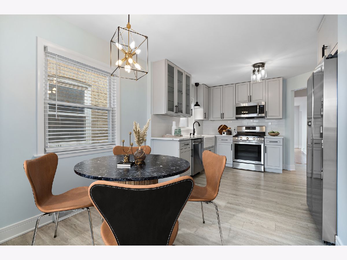 Beautifully updated 5-bedroom, 3-bath home in the popular Jefferson Park neighborhood. Gleaming hardwood floors and large windows welcome you into the main living area with warmth and natural sunlight. The kitchen is a chef's dream, featuring crisp grey cabinetry, quartz countertops, classic subway tile backsplash, stylish light fixtures, stainless steel appliances, and a charming farmhouse sink, plus enough space for an eat-in dining area. Enjoy seamless indoor-outdoor living as the kitchen opens out to a stunning multi-level deck, the perfect setting for entertaining guests or relaxing in the evenings. Two bedrooms conveniently located on the main level, adjacent to a full bath. In fact, every level features a full bathroom, all boasting high-end Kohler hardware and fixtures. Upstairs, you'll find two more spacious bedrooms and a spa-like full bathroom with walk-in shower, as well as walk-out access from the back bedroom to a private deck. The lower level offers new flooring throughout, a massive laundry room with washer/dryer, and an open recreation/living area-plus a separate room perfect as a 5th bedroom, home office, or extra storage. Outside, an enclosed large backyard with privacy fence awaits, complete with a two-car garage and newer deck. Easy access to I90-94 expressway, Metra stops and O'Hare, plus nearby parks and restaurants, this exceptional home combines comfort, style, and convenience in an unbeatable location. Don't miss your chance to make it yours!
