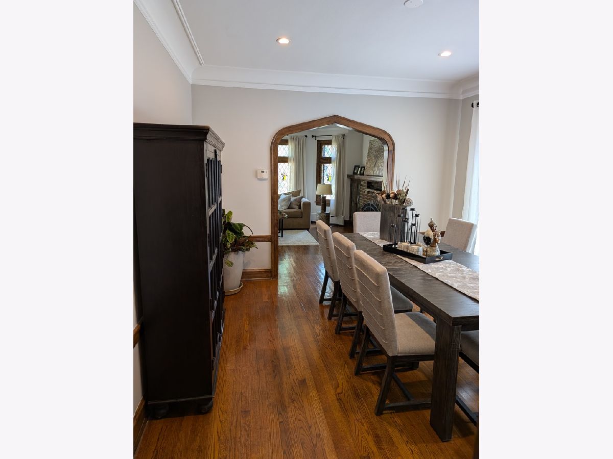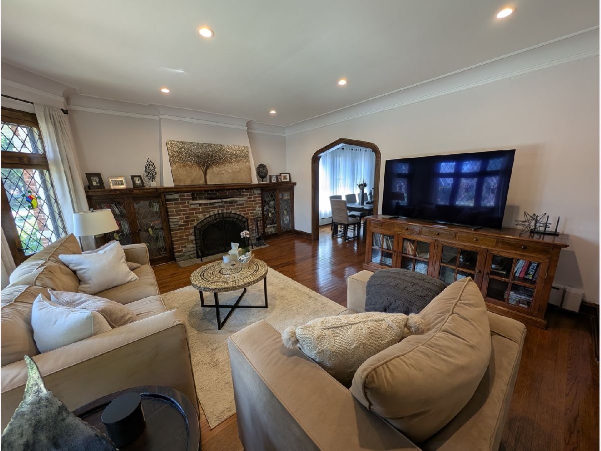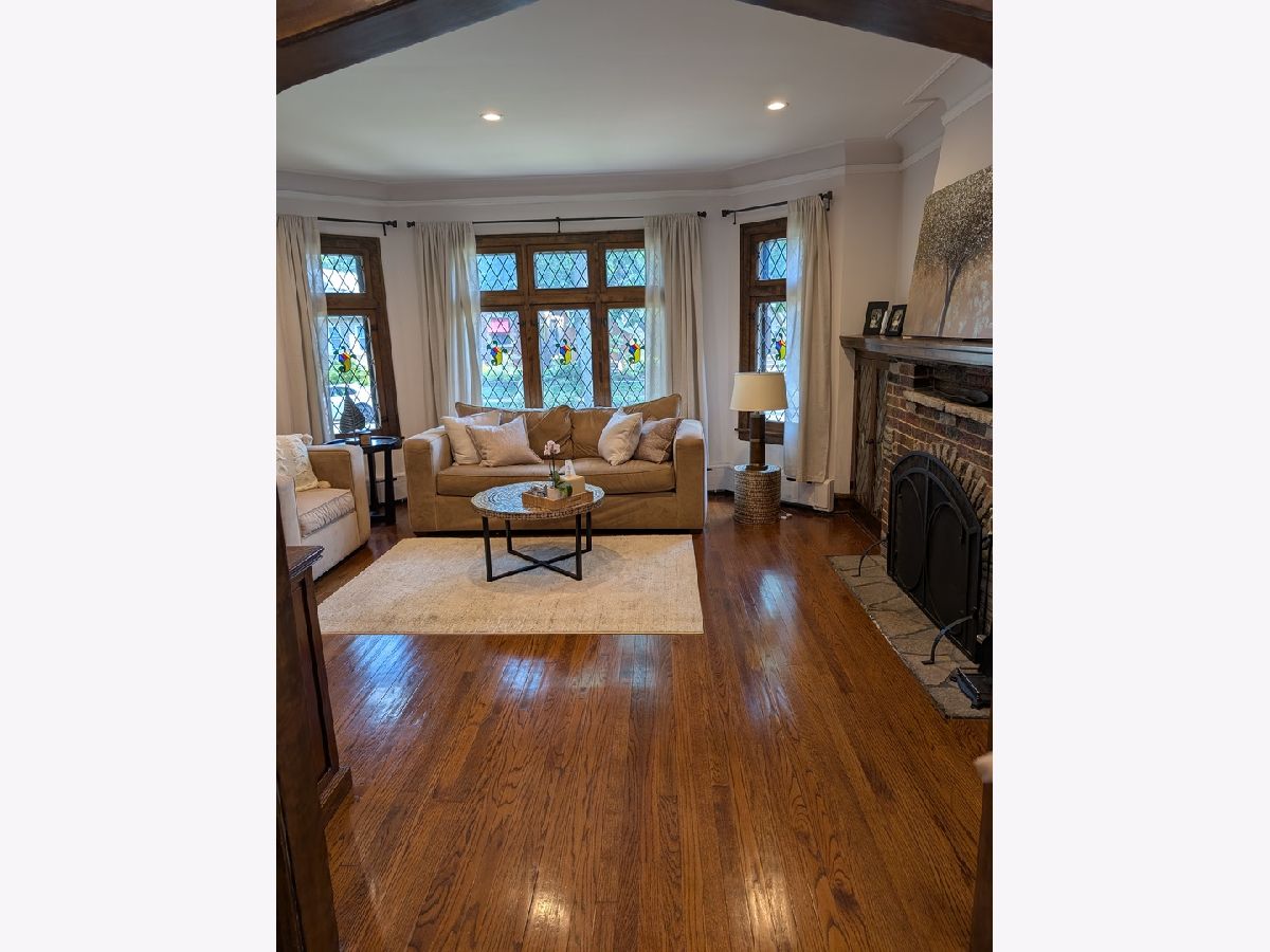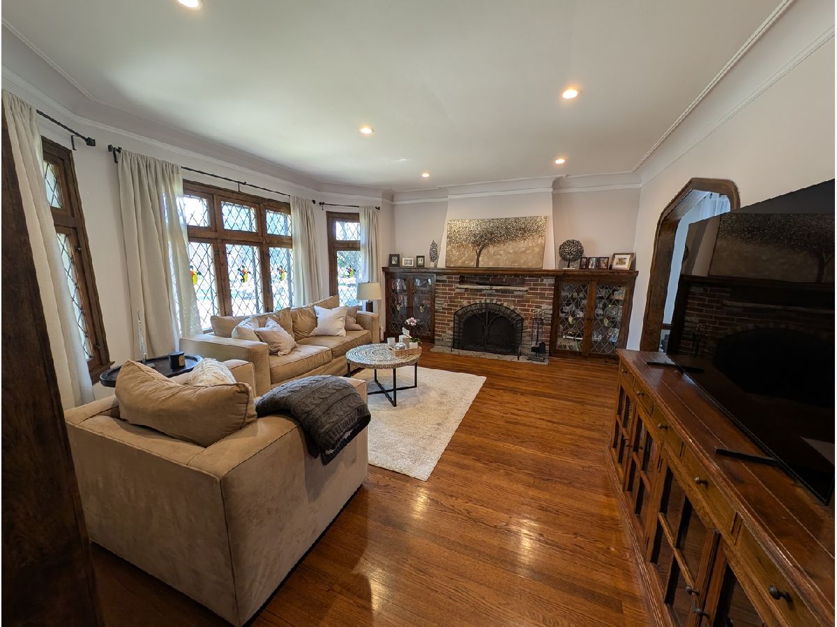Impressive Brick English Tudor with traditional elegance and modern amenities, located on the far Northwest side, in the tranquil Indian Woods / South Edgebrook neighborhood. The inviting living room with its leaded stained-glass windows and wood burning fireplace leads you into the separate dining room awaiting your large family/friend events. Host any size gathering in the bright and spacious maple cabinet kitchen with breakfast bar, stainless steel appliances, maintenance free Corian counters and adjoining open eating area with pantry. Second floor boasts the primary bedroom with towering beamed cathedral ceilings, walk-in closet, modern European style bath with spa like walk-in shower, double sink and backlit mirror. Combine the large second floor 4th bedroom as an office, den, dressing room or artist studio to create the ultimate private Primary suite. Updated first floor full bath. Partially finished basement with rec room, laundry room, utility room and room with roughed in plumbing for a 3rd bath. Plenty of space in the lower level to easily accommodate an additional bedroom. Coved ceilings, natural wood molding and beautiful hardwood floors throughout. The 2 Car garage with party door opens to your garden oasis. 2 zoned boiler, newer windows and tear off roof. Short walk to Caldwell Woods, the North Branch Trail and Indian Road Park. Nearby restaurants, shopping, Metra, expressways, and O'Hare.