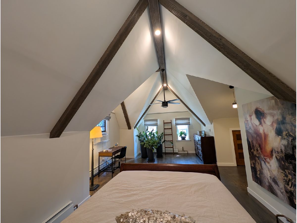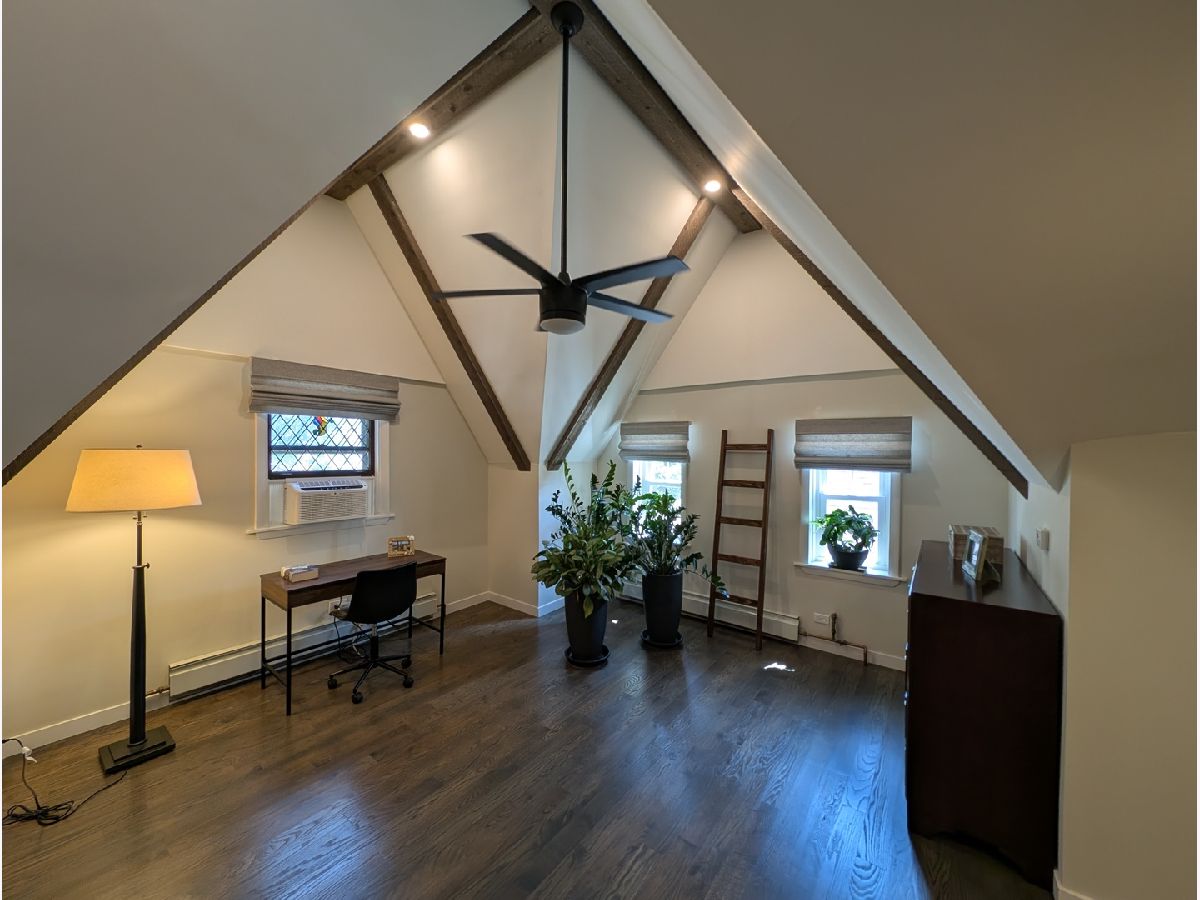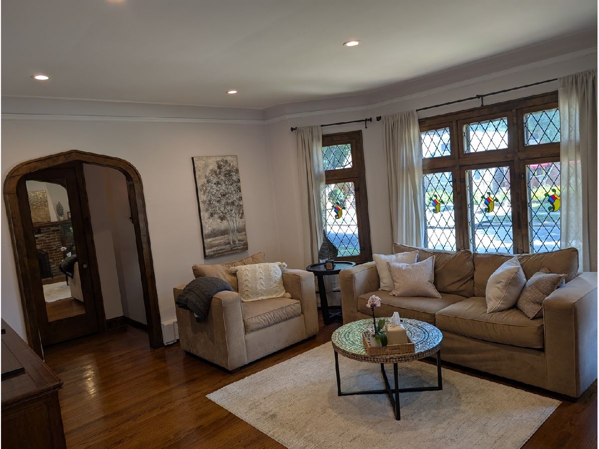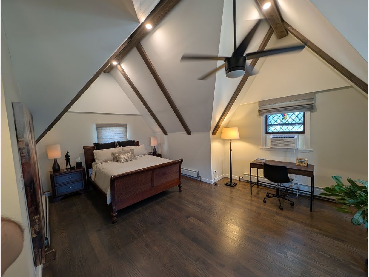 Impressive Brick English Tudor with traditional elegance and modern amenities, located on the far Northwest side, in the tranquil Indian Woods / South Edgebrook neighborhood. The inviting living room with its leaded stained-glass windows and wood burning fireplace leads you into the separate dining room awaiting your large family/friend events. Host any size gathering in the bright and spacious maple cabinet kitchen with breakfast bar, stainless steel appliances, maintenance free Corian counters and adjoining open eating area with pantry. Second floor boasts the primary bedroom with towering beamed cathedral ceilings, walk-in closet, modern European style bath with spa like walk-in shower, double sink and backlit mirror. Combine the large second floor 4th bedroom as an office, den, dressing room or artist studio to create the ultimate private Primary suite. Updated first floor full bath. Partially finished basement with rec room, laundry room, utility room and room with roughed in plumbing for a 3rd bath. Plenty of space in the lower level to easily accommodate an additional bedroom. Coved ceilings, natural wood molding and beautiful hardwood floors throughout. The 2 Car garage with party door opens to your garden oasis. 2 zoned boiler, newer windows and tear off roof. Short walk to Caldwell Woods, the North Branch Trail and Indian Road Park. Nearby restaurants, shopping, Metra, expressways, and O'Hare.
