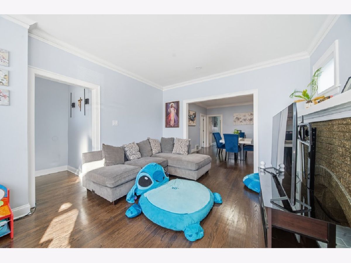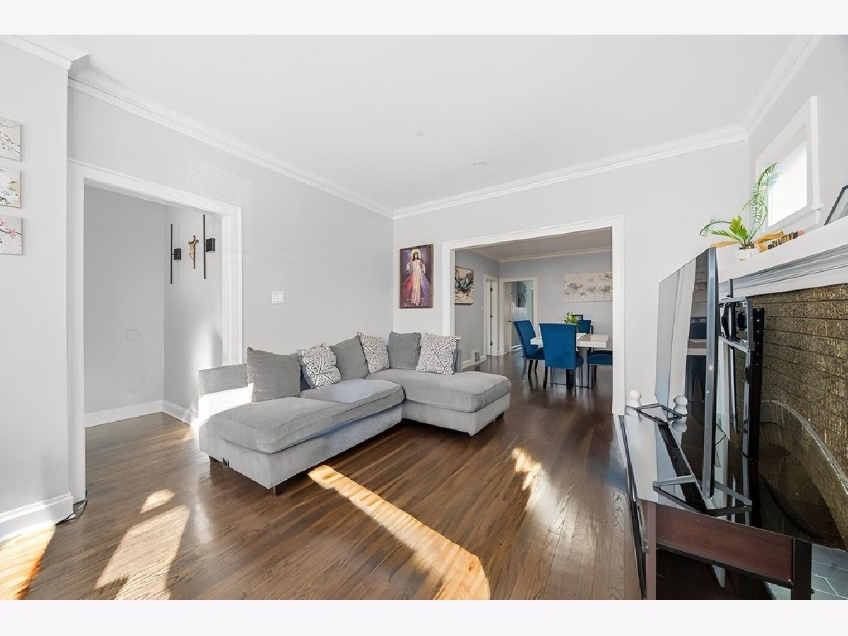 Welcome home to this beautifully recently rehabbed 3-bedroom, 2 full-bath bungalow offering timeless charm and modern updates. The classic brick exterior sits on a fully fenced, level yard with a convenient two-car parking pad-perfect for everyday living and entertaining. Inside, the main level features beautiful hardwood floors and crown molding throughout, with a bright, inviting layout that offers separate living, dining, and kitchen areas-perfect for everyday living and entertaining. The updated kitchen shines with new white cabinetry, quartz countertops, recessed lighting, a crisp white tiled backsplash, & stainless steel appliances: fridge, microwave, dishwasher. Three comfortable bedrooms, a full bathroom, and a dedicated laundry room complete the main level for easy, one-level living. The full, partially finished basement offers incredible flexibility and space, including 3 additional possible bedrooms, a full finished new bathroom, & a second kitchen area including another fridge & stove-ideal for extended living arrangements, a recreation room, or future customization. Adding even more value is the large attic space, providing ample storage or potential for future use. This move-in ready bungalow blends character, updates, and opportunity-don't miss it!
