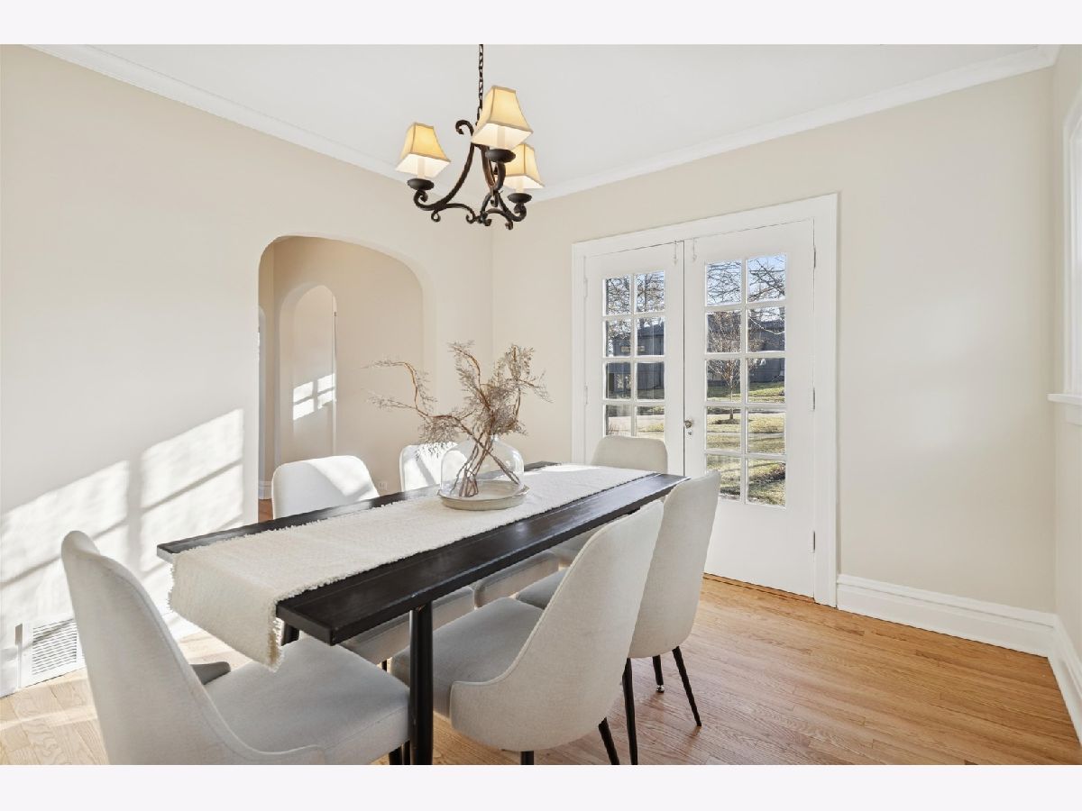 Don't miss this enchanting vintage cottage nestled in the highly sought-after Lake Ellyn neighborhood, just a short stroll from Forest Glen Elementary, Lake Ellyn Park, Glenbard West High School and downtown Glen Ellyn. Step inside, and you'll be greeted by a welcoming foyer that leads to a spacious living room featuring a wood-burning fireplace and French doors that open to a charming front patio. The formal dining room with its similar French doors, flood the space with natural light, creating a warm and inviting atmosphere. The main floor also features an eat-in kitchen with its original cabinetry, a generous pantry, and access to an enclosed porch-perfect for sipping lemonade on summer afternoons while enjoying views of your private, fenced backyard as well as a powder room off the front foyer. Upstairs, you'll find two oversized bedrooms and an updated full bath. The finished basement adds even more functional space, with a recreation room, laundry room, finished bonus room, and ample storage. This home is brimming with character, offering abundant natural light, freshly refinished hardwood floors, fresh paint throughout, charming arched doorways, and all the unique details that make vintage homes so special. Additional perks include a one-car garage with extra storage and plenty of those irresistible nooks and crannies that define this era of craftsmanship.
