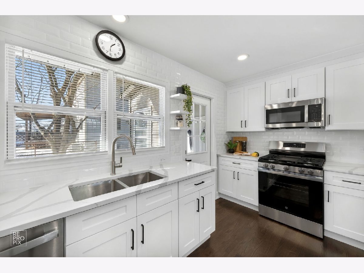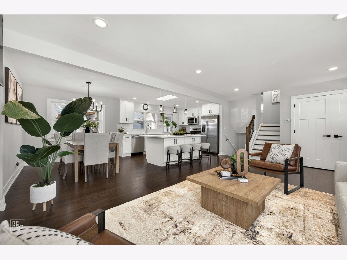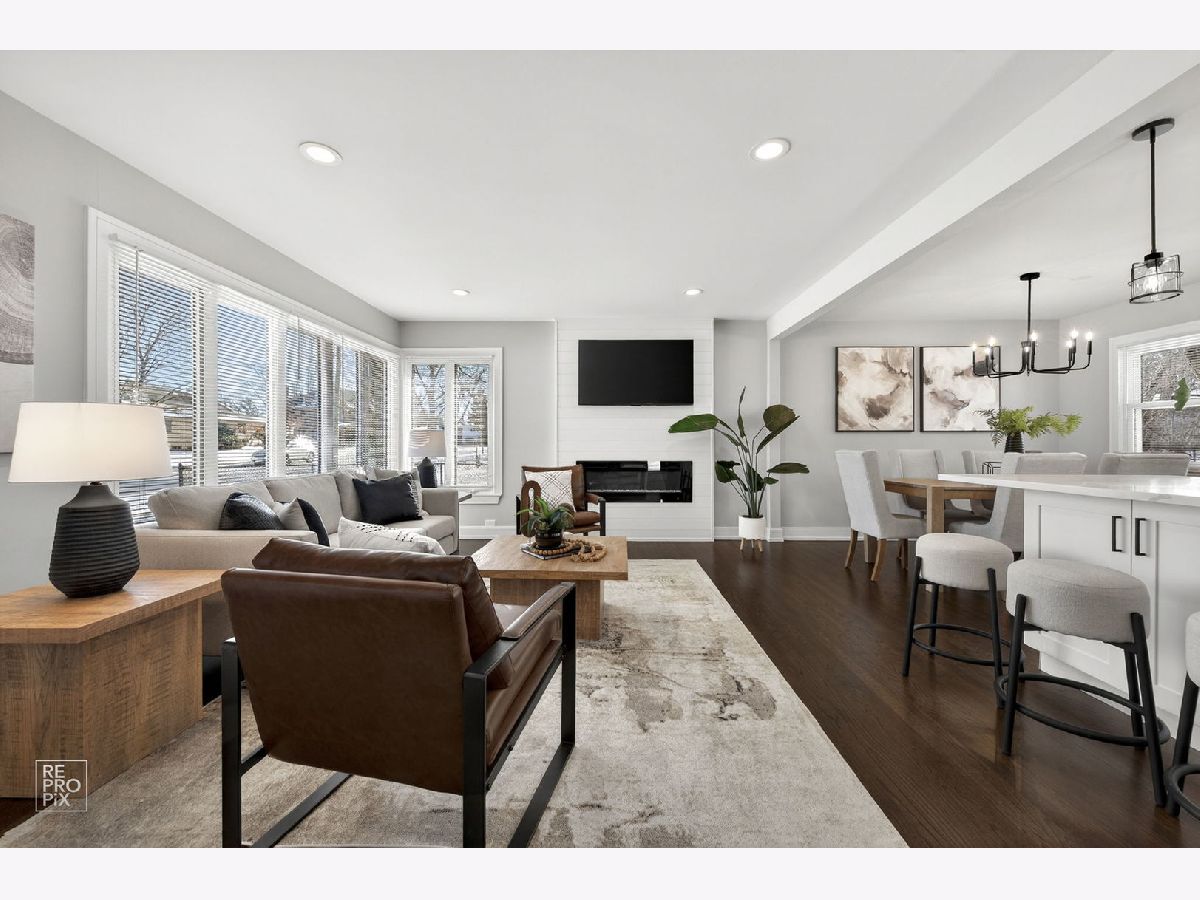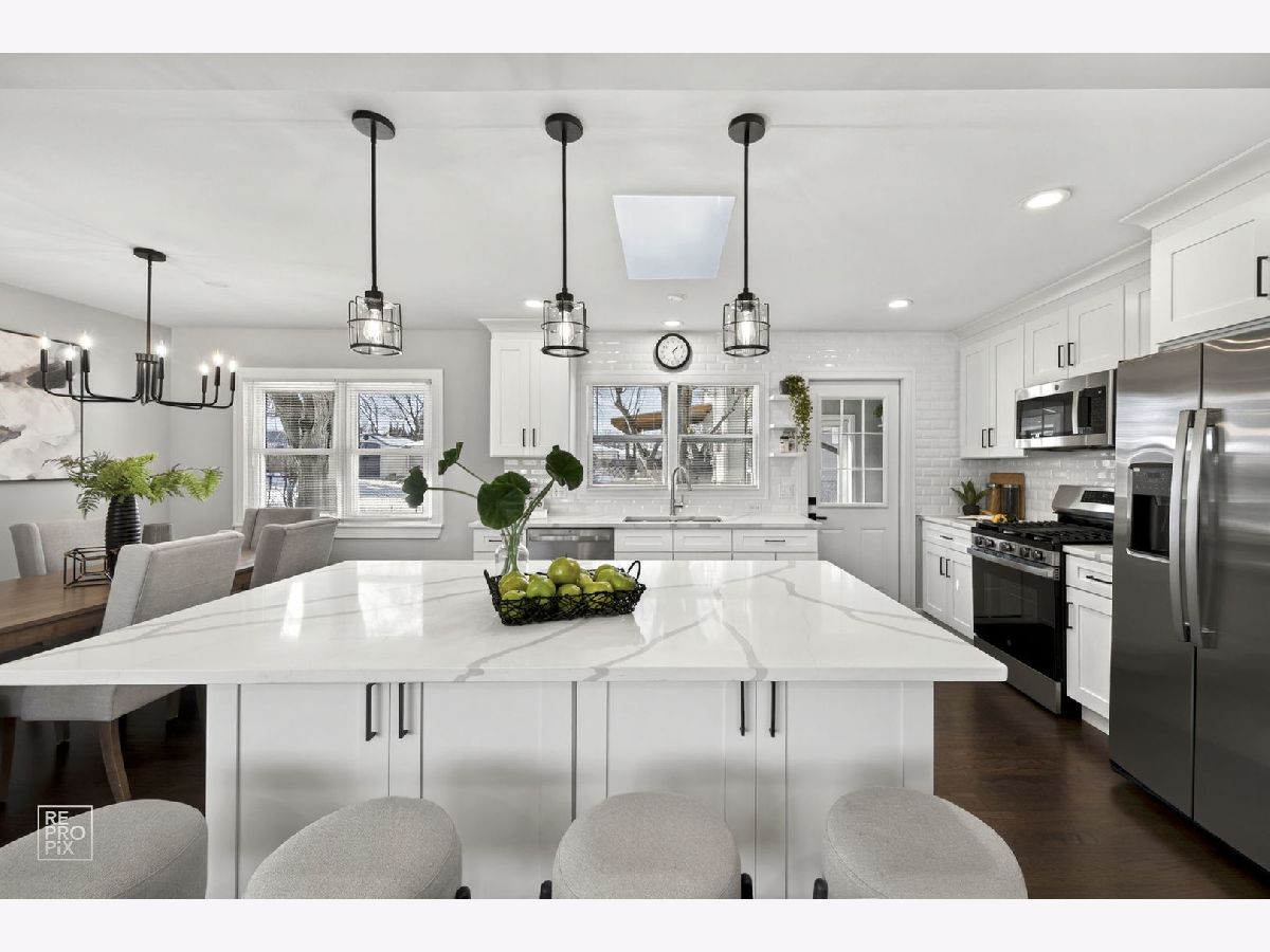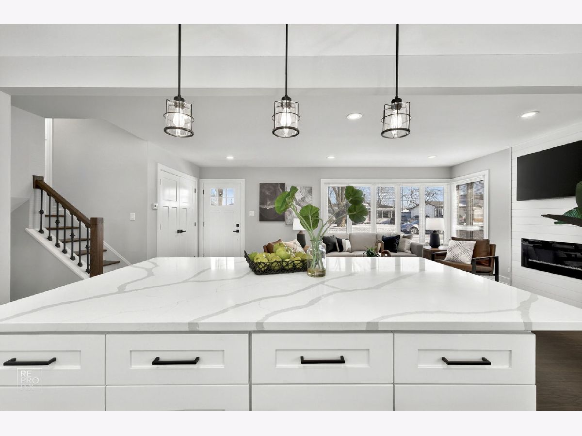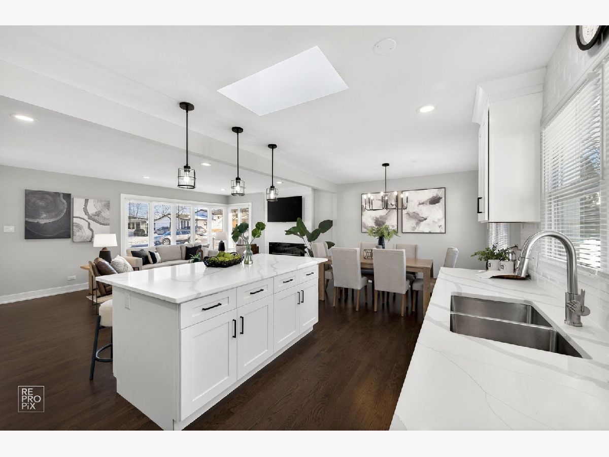 Rarely available absolutely stunning and fully remodeled split-level home with 3 bedrooms and 2 updated bathrooms, located in a prime Mount Prospect subdivision! Step into a bright and open floor plan filled with natural light, featuring a spacious living room with recessed lighting and large windows that flow seamlessly into the dining area and modern kitchen. The kitchen boasts a large island, quartz countertops, brand new stainless steel appliances, and an island cabinet for extra storage. Upstairs you'll find three generous bedrooms and a beautifully updated full bath. The lower level offers a cozy family room with an updated bathroom, and a spacious laundry/utility area. Enjoy outdoor living in the fully fenced backyard offering privacy. Additional highlights include brand new roof, LED lights, hardwood floors throughout the home, a 2-car garage, and a separate driveway on the other side of the house provides two additional parking spaces. TV and fireplace stay with the house. Award winning school districts and John Hersey High School. Near shopping, restaurants and entertainment. Awesome LOCATION! Motivated seller.