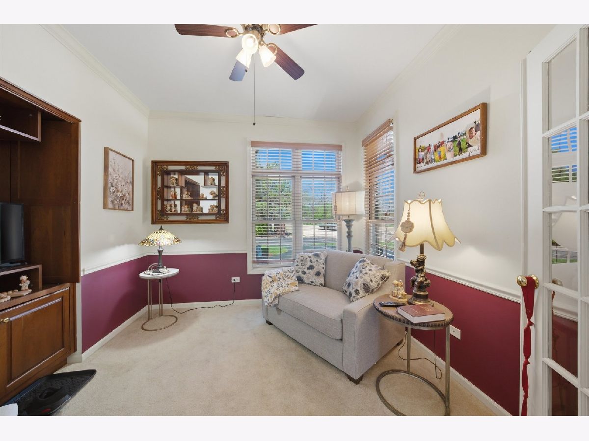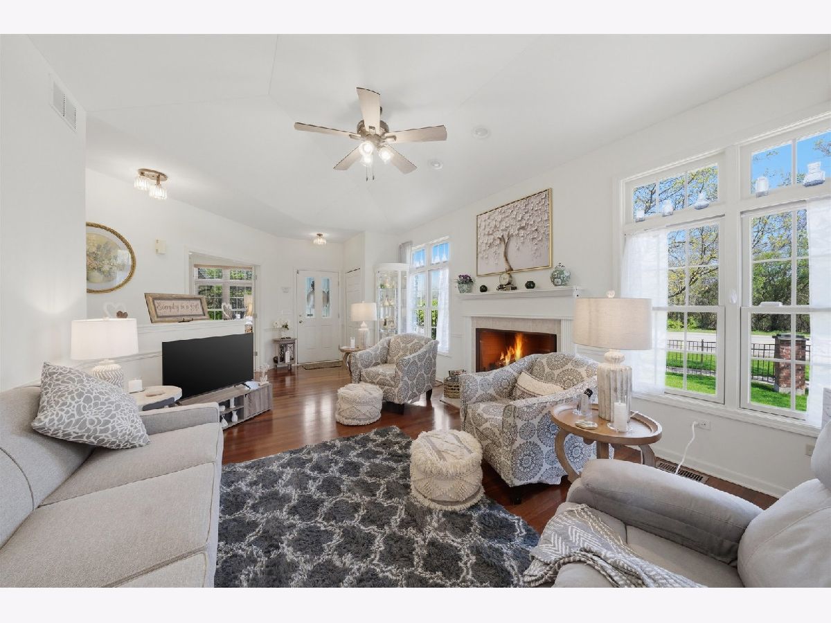 The Hampton's of Palos, features this exquisite 3 bedroom, 3 bath, former builder's model ranch townhome, built on a premium lot, showcasing refined upgrades and effortless single-level living. With 1,686 sq ft on the main level, this residence impresses with soaring vaulted ceilings, rich hardwood flooring, and elegant custom architectural details throughout. Step into the inviting foyer and into a light-filled living room featuring dramatic ceilings, decorative custom columns, recessed lighting and a cozy fireplace with gas logs. The adjacent dining room continues the open, airy feel-perfect for everyday living. The kitchen offers a seamless blend of style and function with peninsula seating for three, pantry, full stainless steel appliance package, upgraded kitchen cabinets along with a charming breakfast area for table and chair seating. The serene primary suite features vaulted ceilings, dual walk-in closets, and a spa-inspired glamour bath with whirlpool tub, separate shower and linen closet. A versatile second bedroom with French doors offers flexibility for guests, a home office, and is currently used as a den. In addition, the main level features a laundry room with washer, dryer, closet and utility sink. The finished carpeted basement, has above grade windows that offer brightness as well as, an additional view of the pond, and expands your living space with a huge family room, third bedroom, full bath, and an incredible wraparound storage area-perfect for keeping everything organized. Enjoy peaceful mornings or relaxing evenings grilling on the private deck overlooking a serene pond view. Additional highlights include soundproof windows, water purification system, new central air and furnace (2023), New roof (2022), main-level laundry, and a 2-car attached and finished garage with convenient side driveway access. Pet-friendly community (rentals not permitted). Taxes reflect homeowner and senior exemptions. Fixtures/personal property that do not stay with sale of home: Basement bar with all bar chairs; light fixture in dining room, gas grill on deck, miniature curio cabinet on wall in dining room, & freezer in garage. Taxes reflect Homeowners exemption and Senior exemptions - non-senior citizen owner's taxes will be approximately $9,875. This special home blends comfort, space, and thoughtful upgrades-truly a must-see!