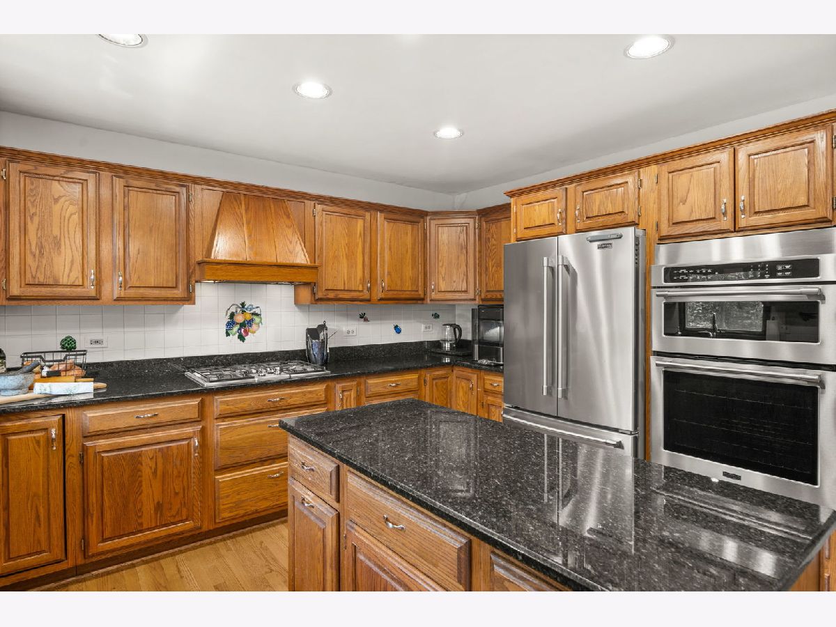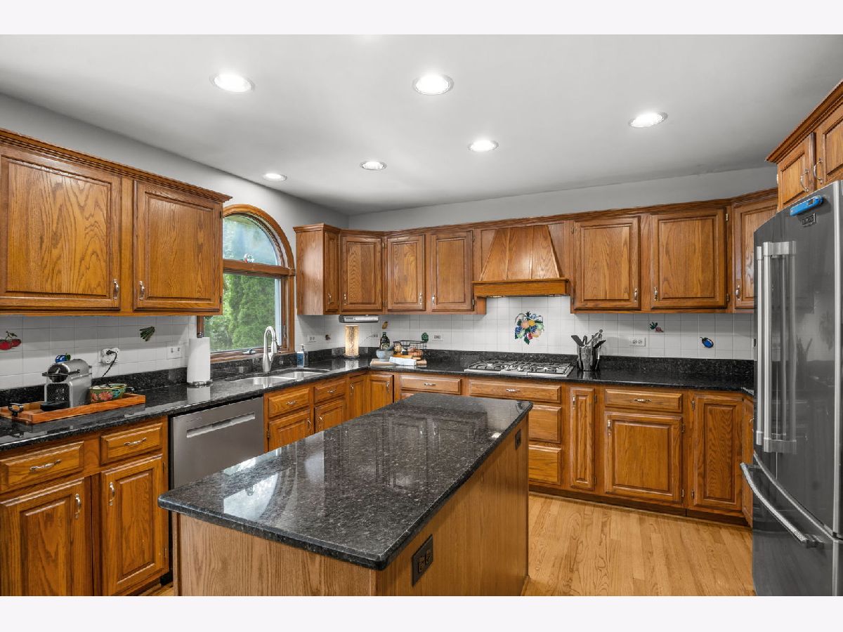 Welcome to Wild Meadows in Batavia, where timeless design meets modern comfort. This brick-front home makes a statement with a soaring two-story entry, vaulted living room, tray ceilings, bay windows, and a formal dining room perfect for gatherings. The eat-in kitchen is a chef's delight with recessed lighting, an island, tile backsplash, stainless steel appliances, and sleek quartz countertops, opening to the family room with its striking floor-to-ceiling masonry fireplace. The first-floor primary suite is a private retreat with a walk-in closet and remodeled luxury bath featuring a double vanity, whirlpool tub, separate shower, and skylight. Upstairs, three spacious bedrooms share a full bath, while the partially finished basement provides a versatile rec room and abundant storage. Updates include a new garage door and opener, remodeled primary bath and powder room, and updated lighting throughout the home. Backing to the Illinois Prairie Path and within walking distance to the middle school in the acclaimed Batavia District, this home offers both convenience and natural beauty, with easy access to I-88 for commuters.