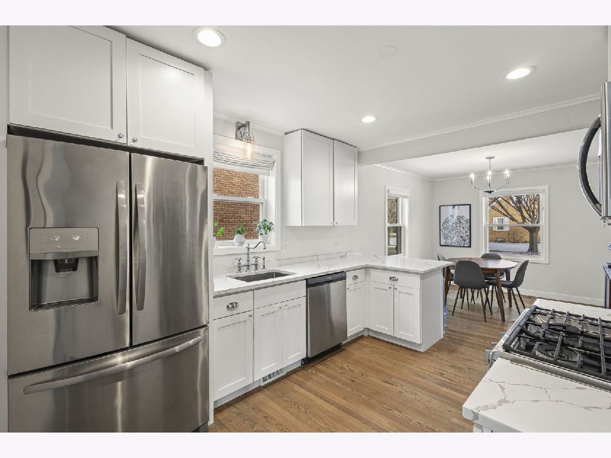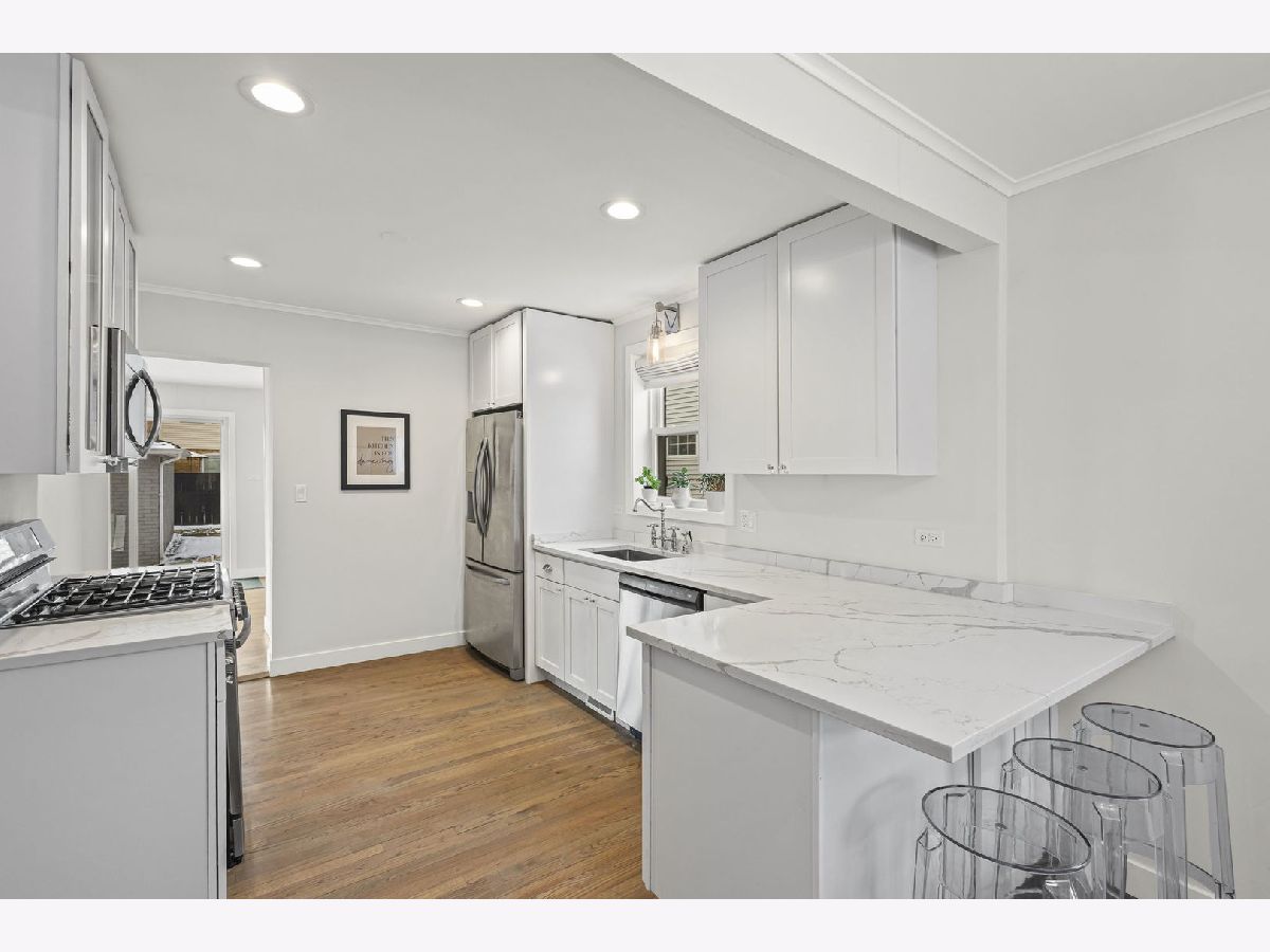 Stunning Cape Cod in Norwood Park, set on an oversized corner lot and finished with exceptional attention to detail throughout. The main level features a bright and inviting living room, formal dining room, first-floor bedroom, full bath, and a beautifully updated kitchen with stainless steel appliances, quartz countertops, and a large peninsula. A cozy family room with fireplace and breakfast nook completes the space. Upstairs offers two generously sized bedrooms and a powder room. The elegantly finished lower level includes a second family room, fourth bedroom, full bath, and dry bar. Enjoy a private backyard ideal for entertaining, along with a 2+ car brick garage. Located in a highly desirable school district with easy access to expressways, public transportation, dining, shopping, Olympia, Norwood, and Oriole Parks.